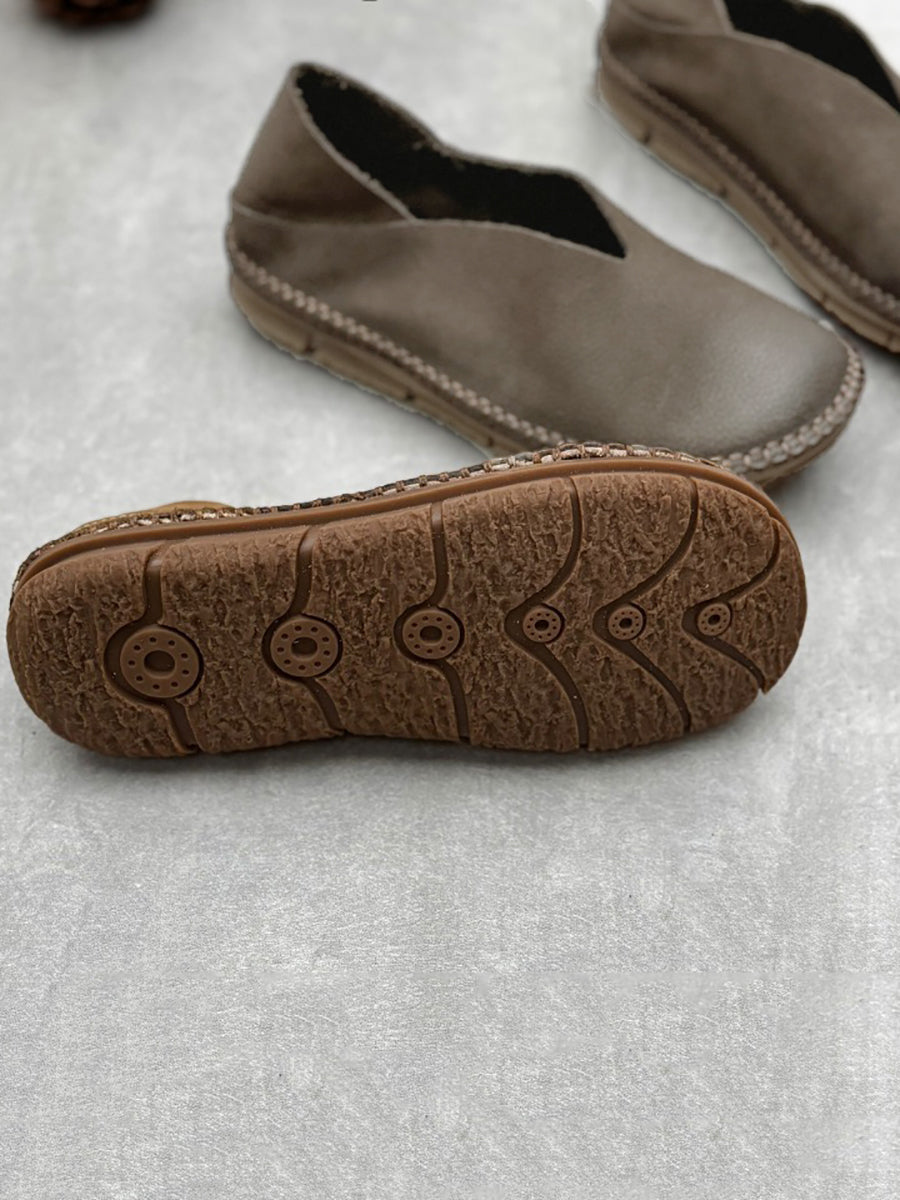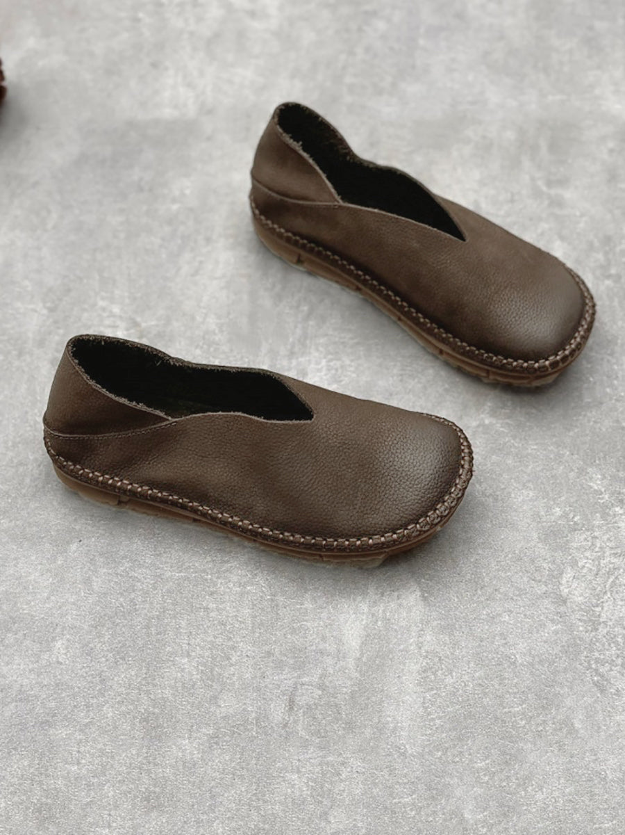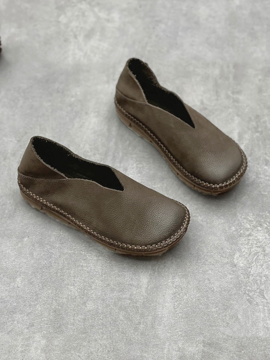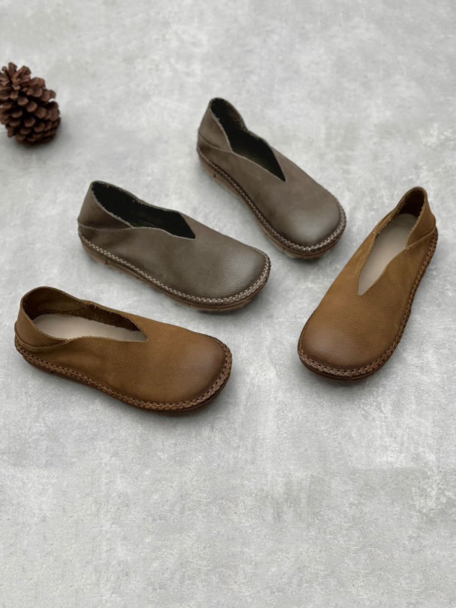 Sapatos femininos de verão vintage de couro sólido macio e plano