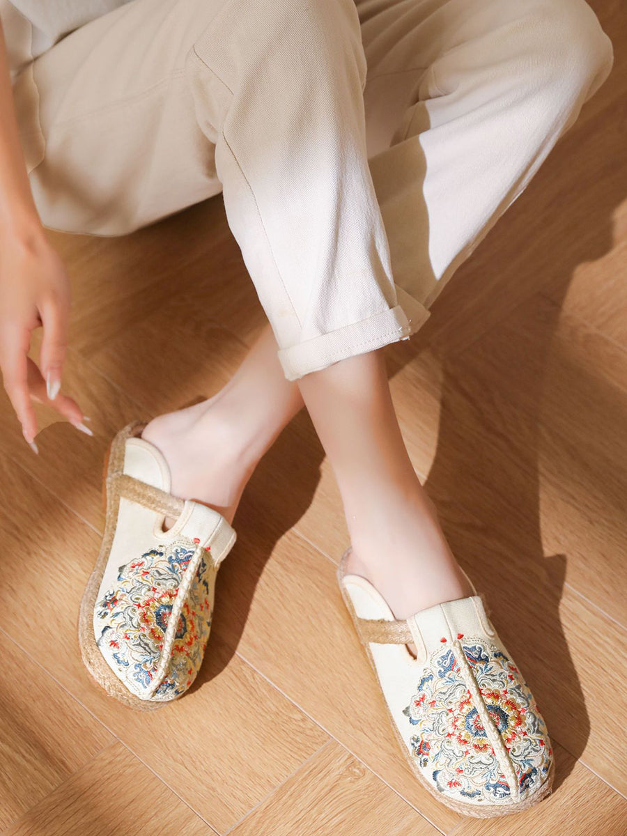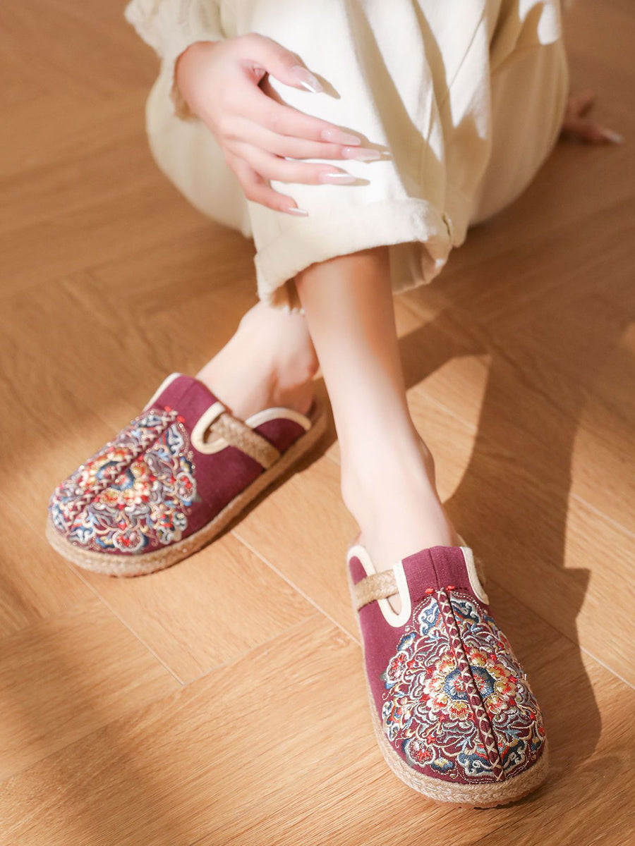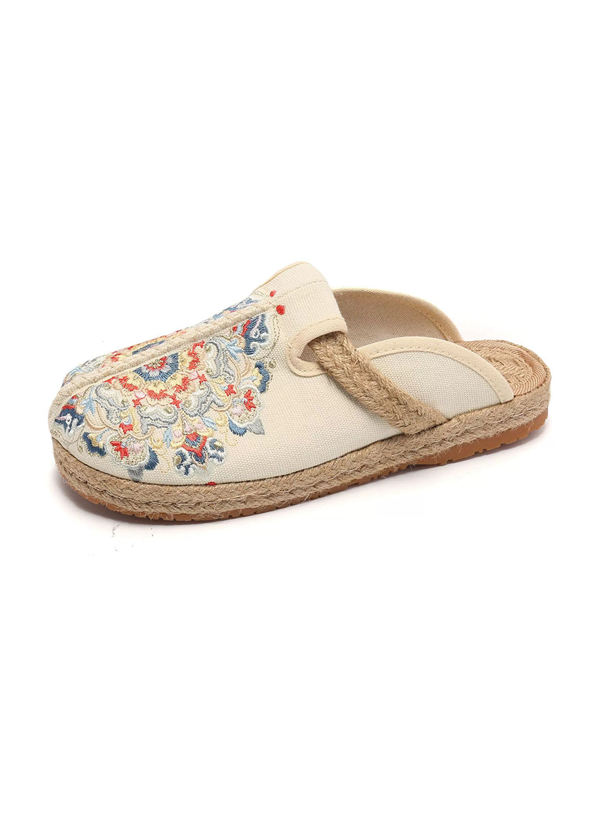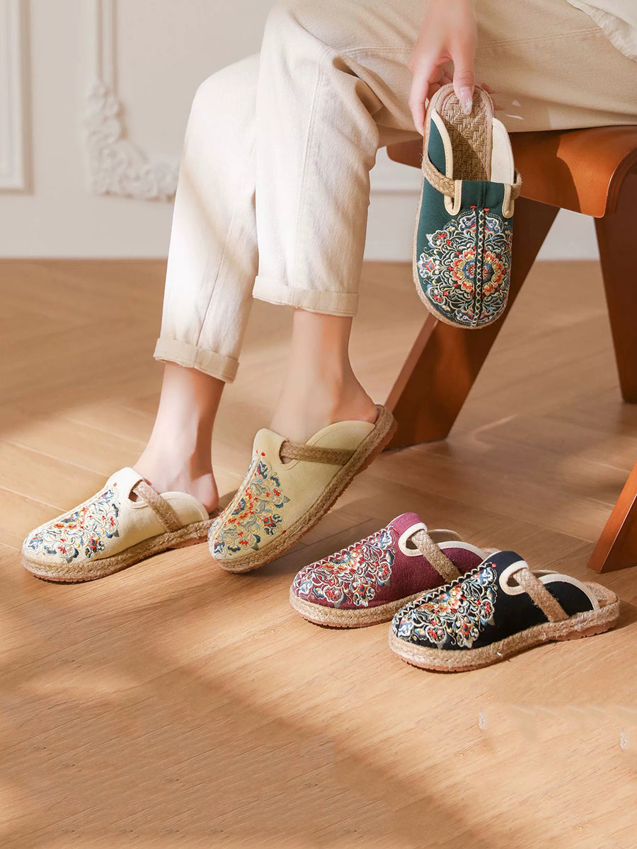 Chinelo feminino de verão em lona bordada