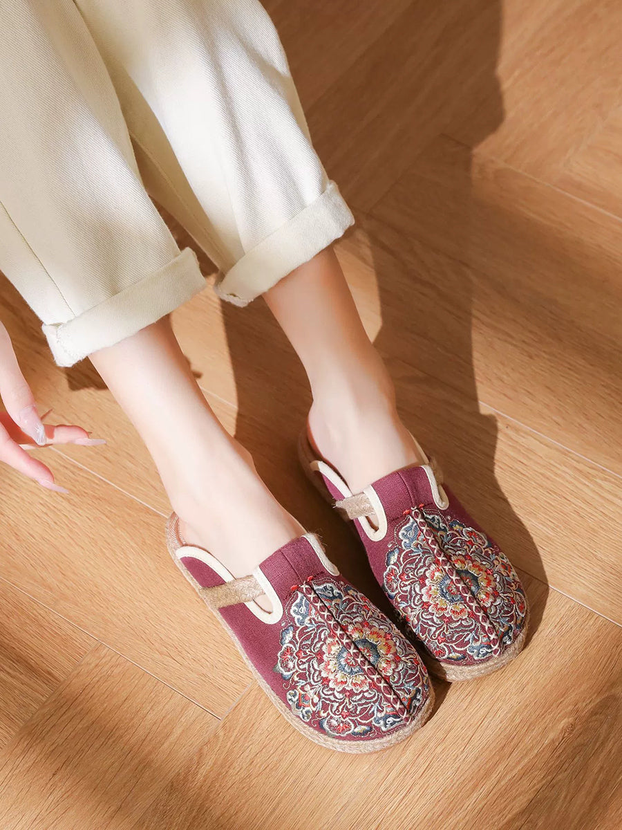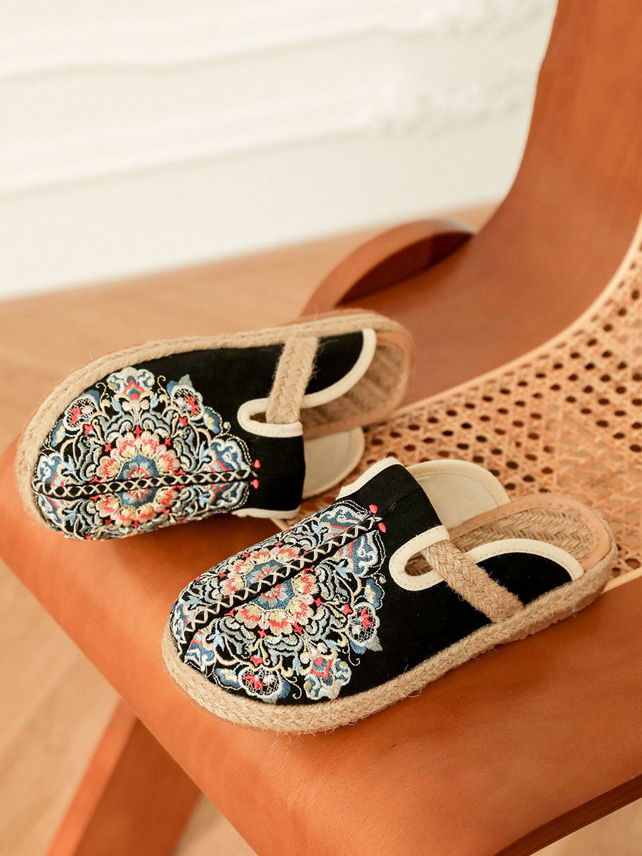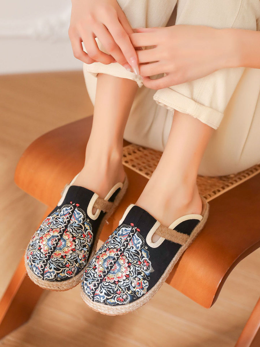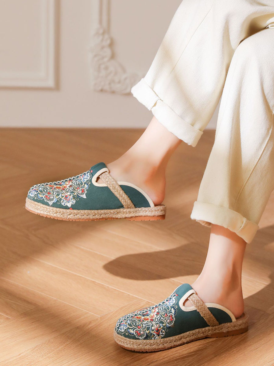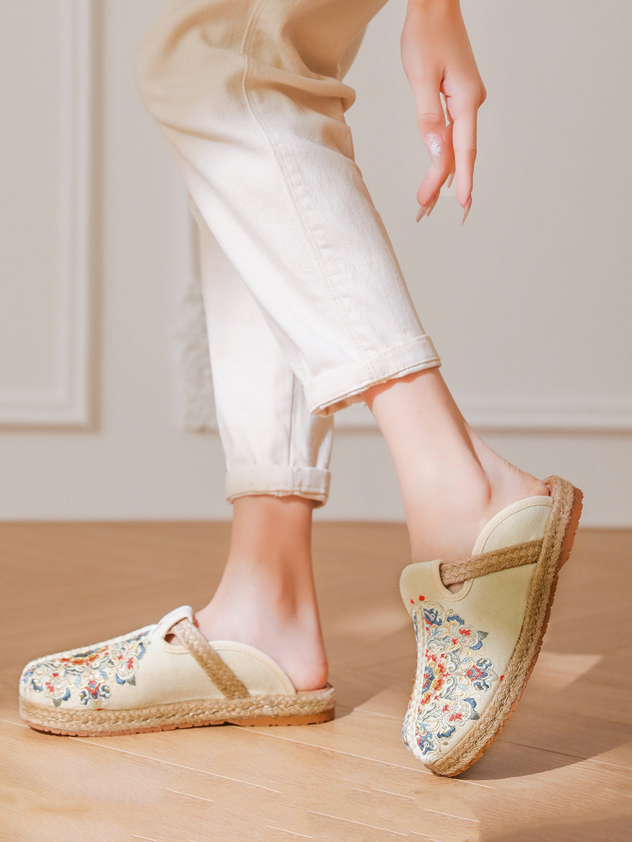 Chinelo feminino de verão em lona bordada