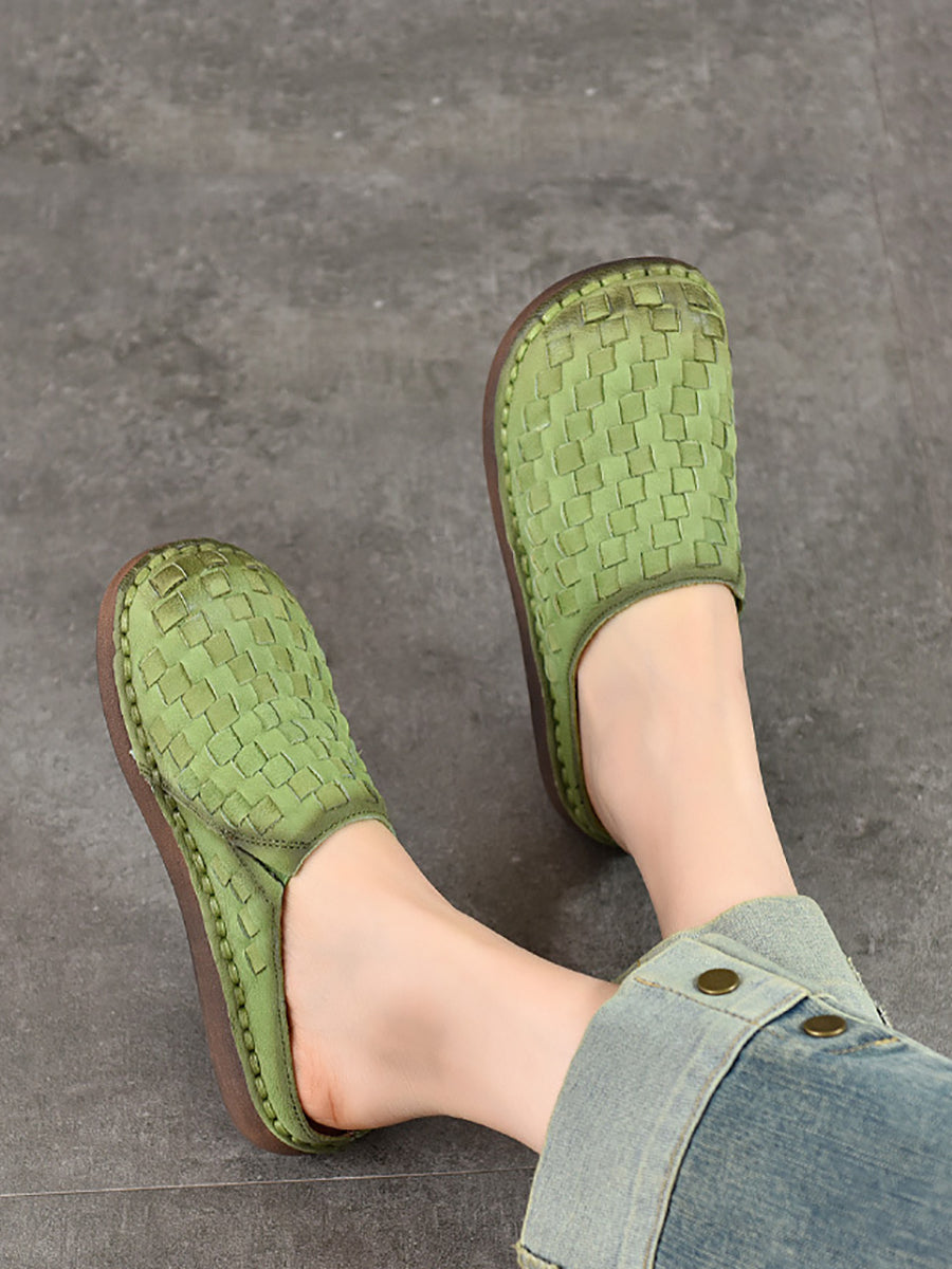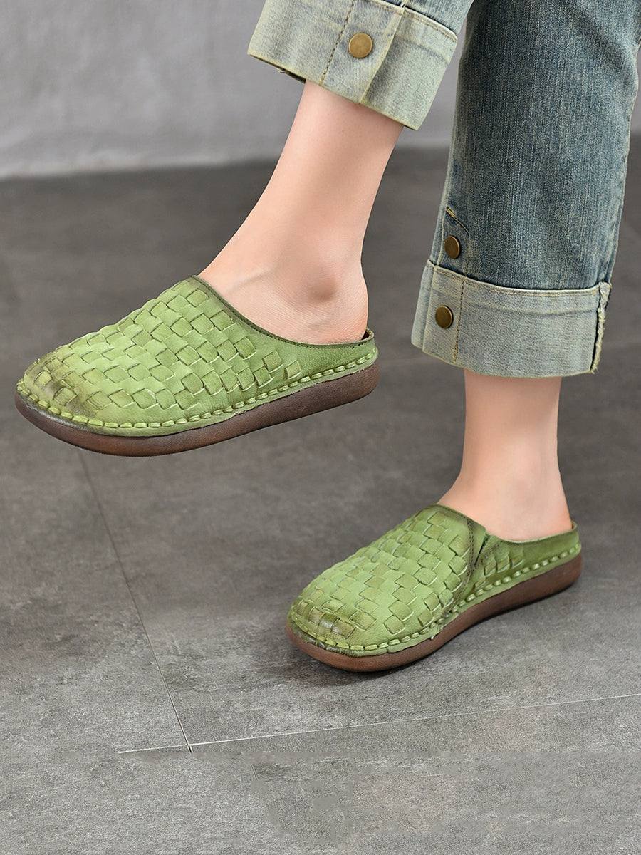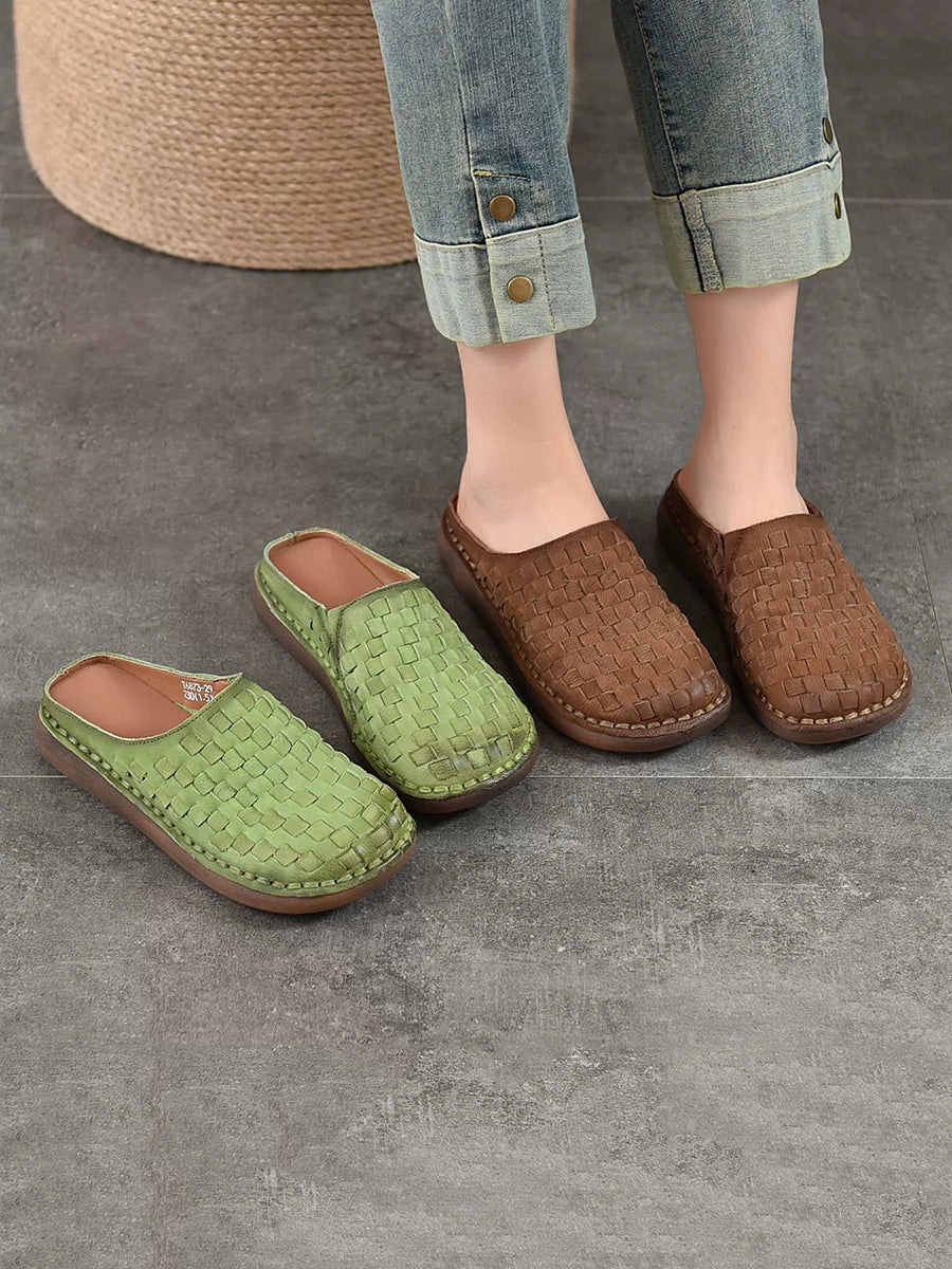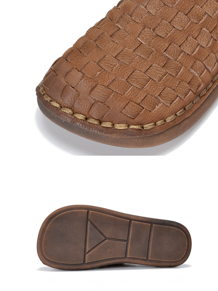 Chinelo feminino de verão vintage em couro trançado