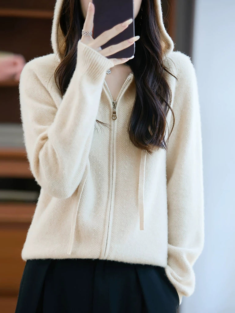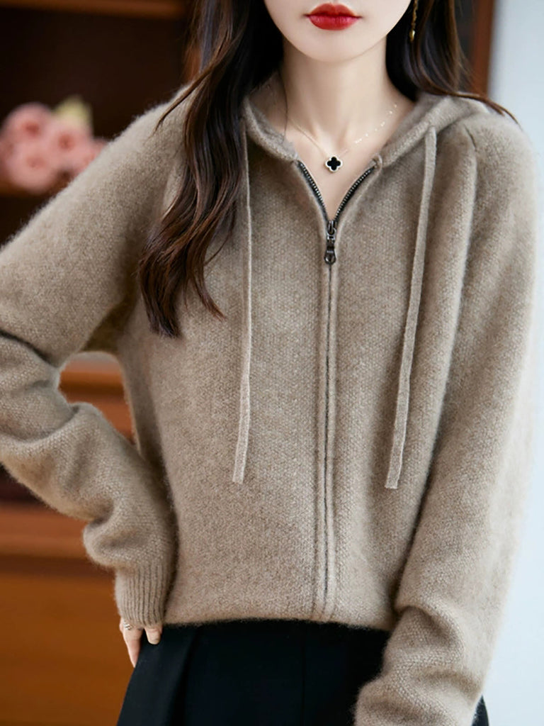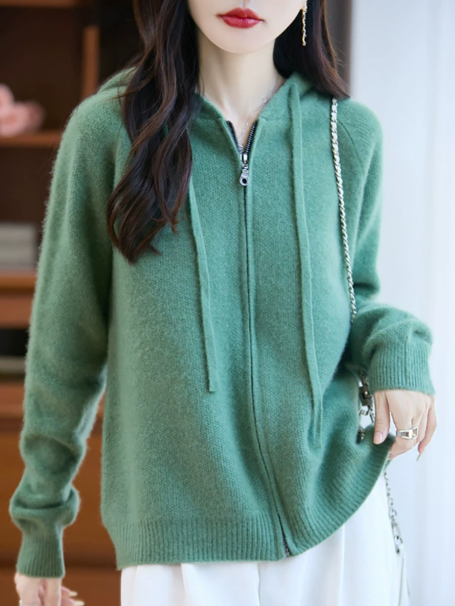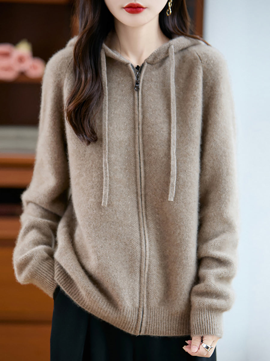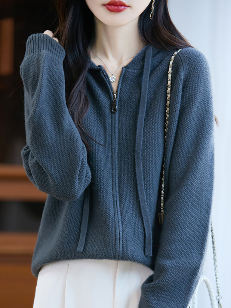 Cardigã feminino de tricô com capuz em cores lisas para o outono.