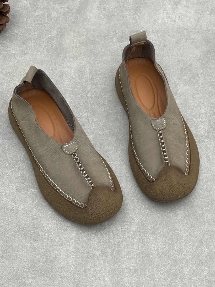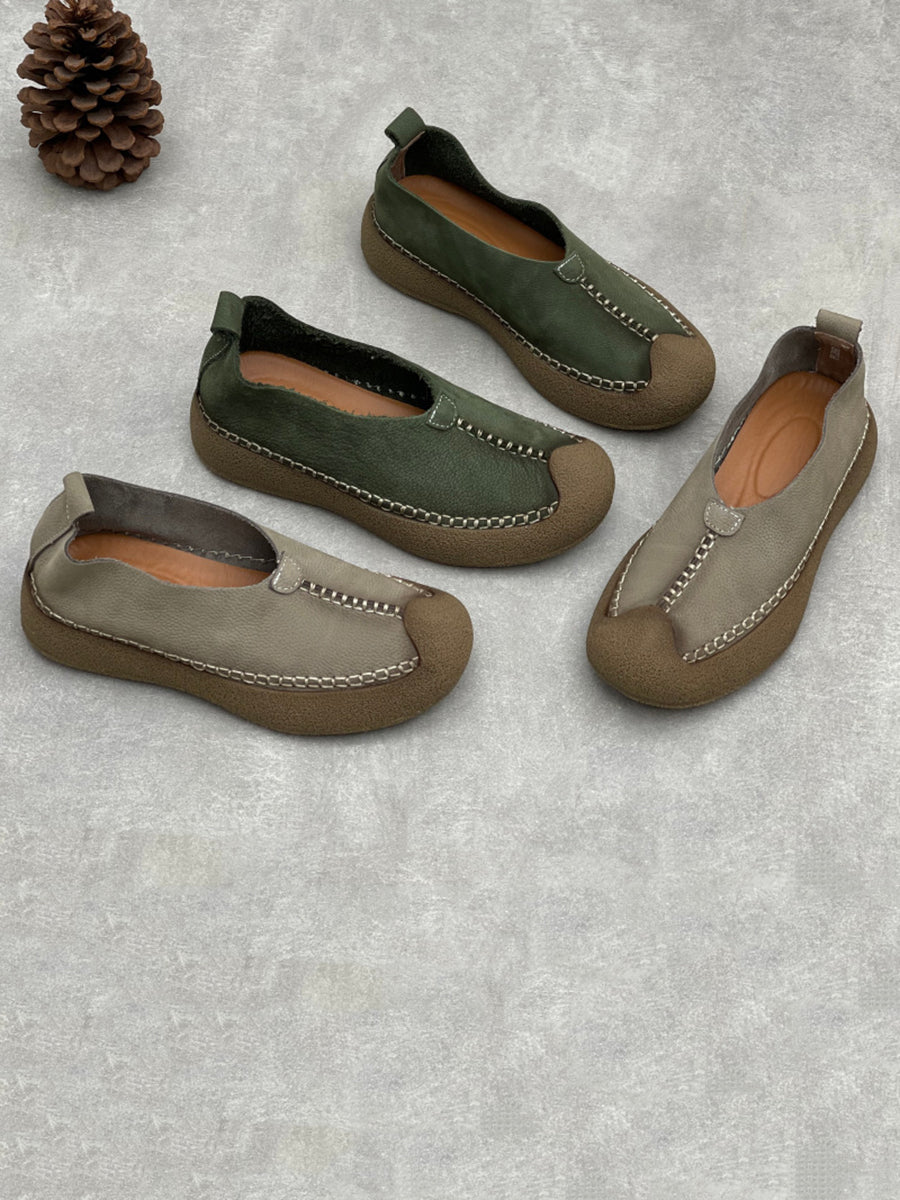 Sapatos femininos vintage de couro genuíno com detalhes em patchwork.