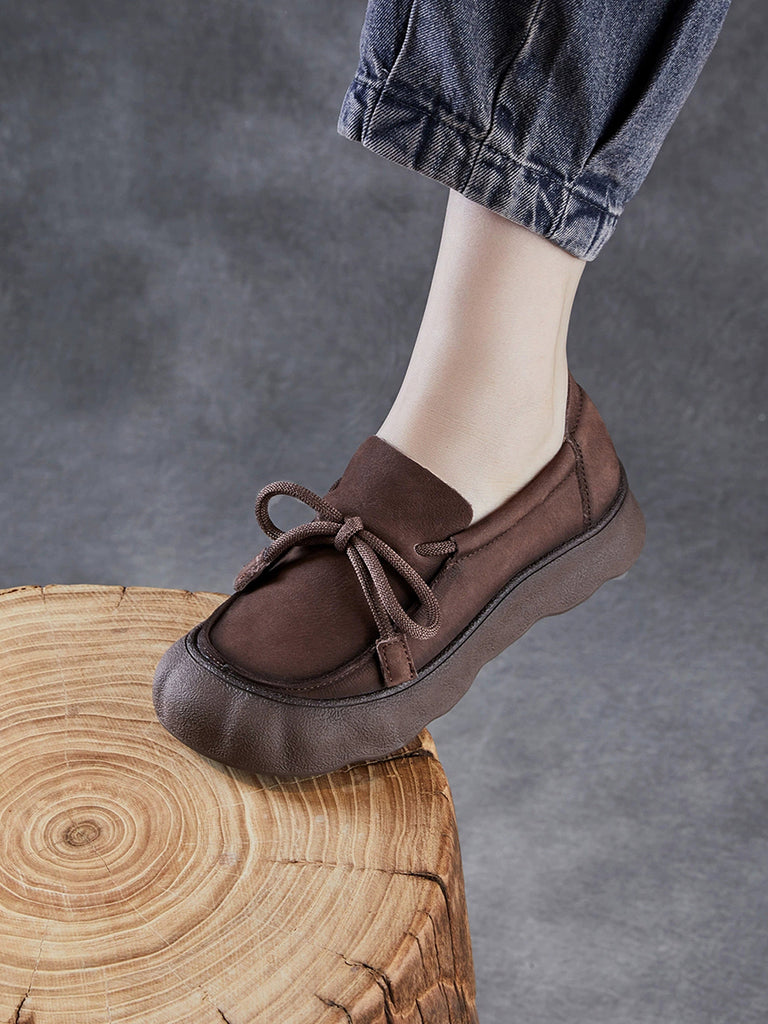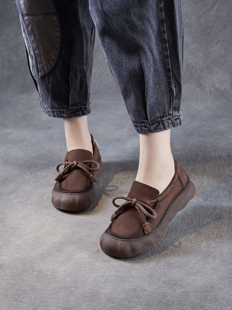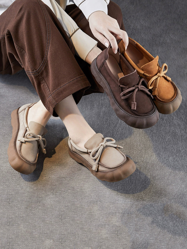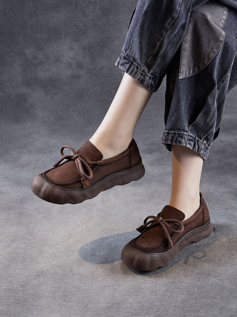 Sapatos baixos vintage de couro legítimo com tiras para mulheres