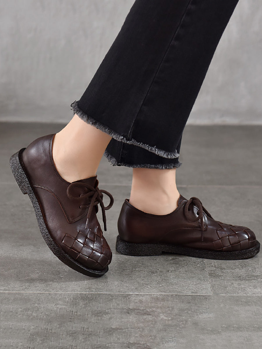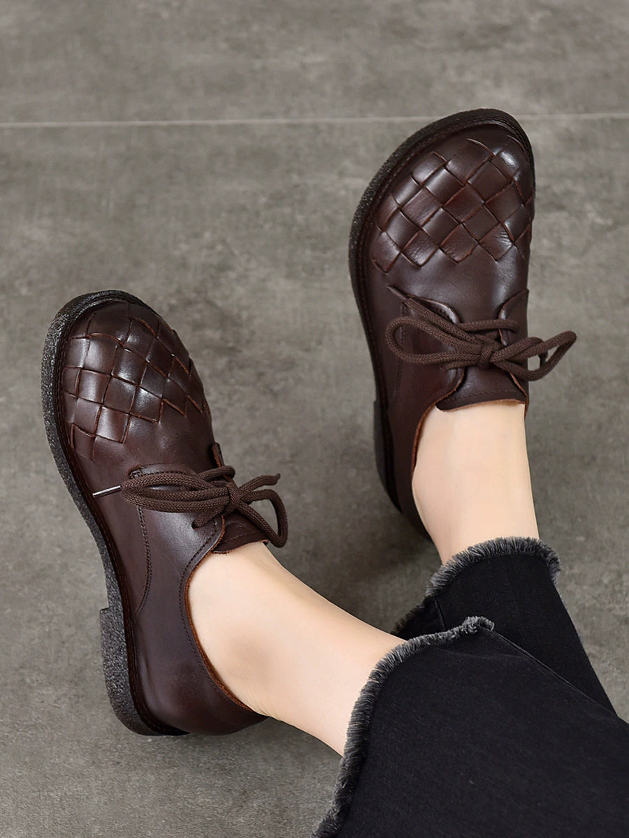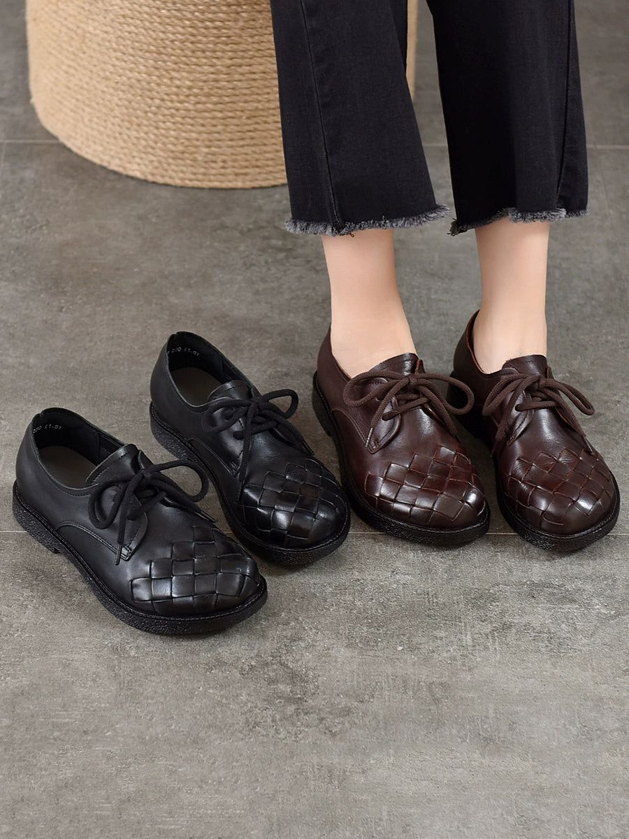 Sapatos femininos vintage de couro legítimo trançado