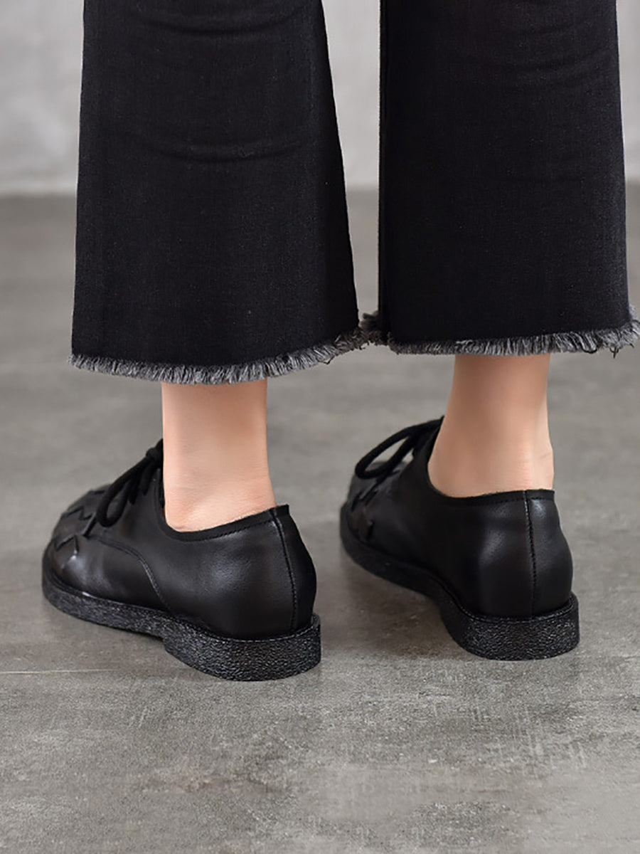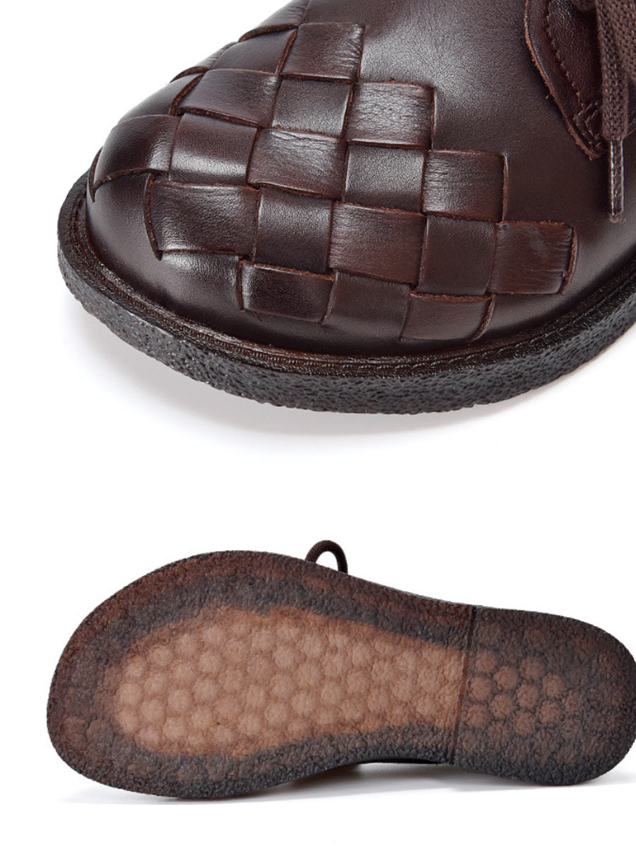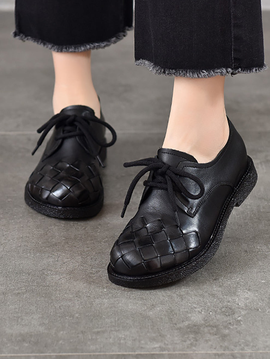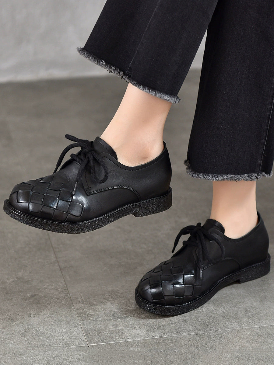Sapatos femininos vintage de couro legítimo trançado