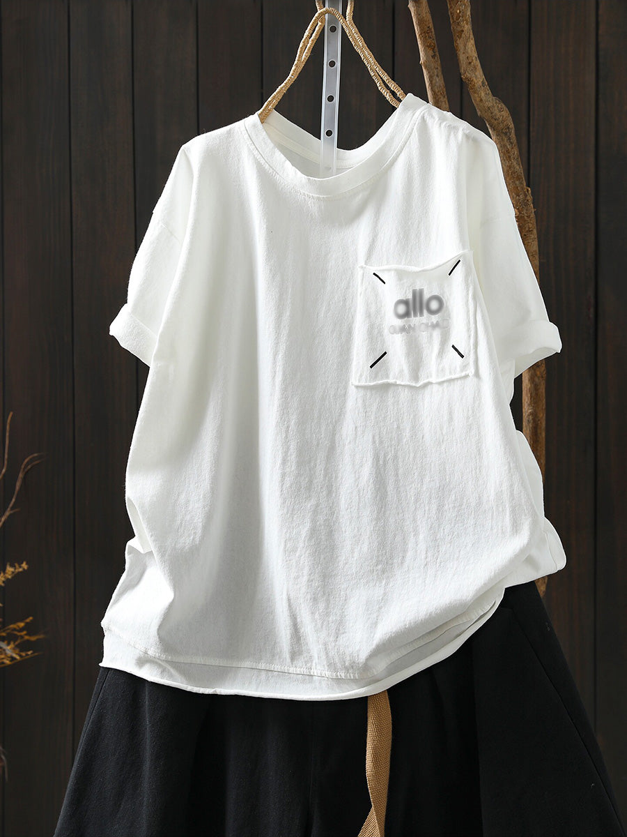 Camiseta feminina de algodão com gola redonda para o verão