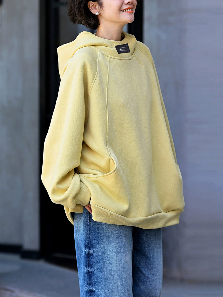 Moletom feminino casual de algodão com capuz e cor pura para outono