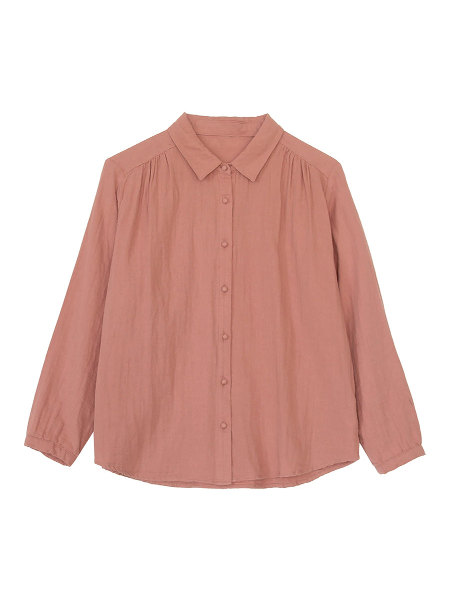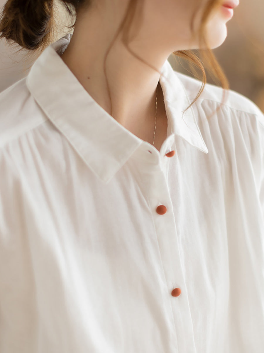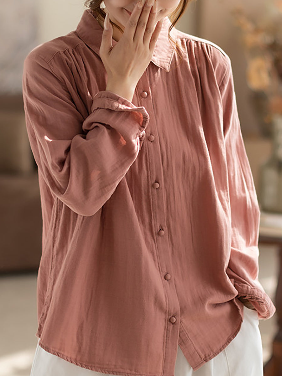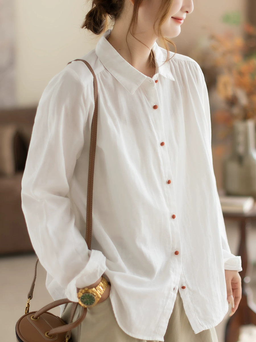 Camisa feminina de primavera com estampa artística, cor lisa, 100% algodão, gola dobrável.
