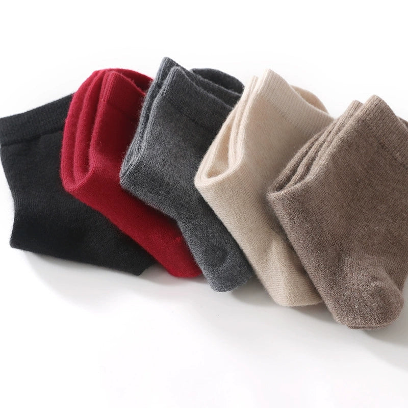 Conjunto de 3 pares de meias femininas de inverno, quentes, em cor lisa, 100% lã.
