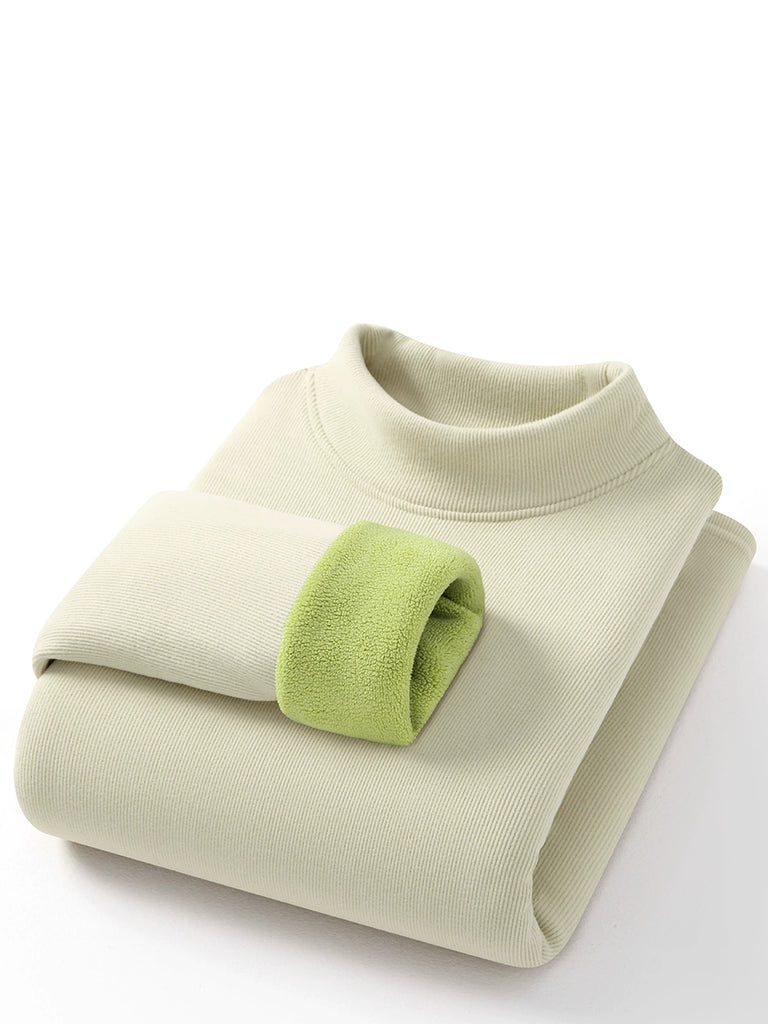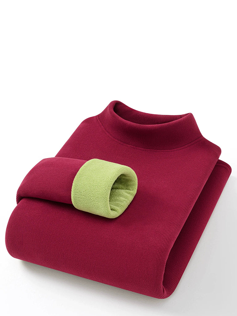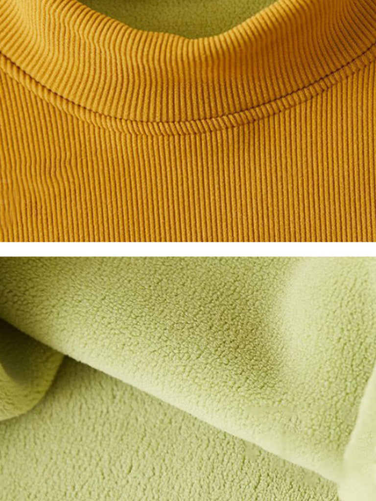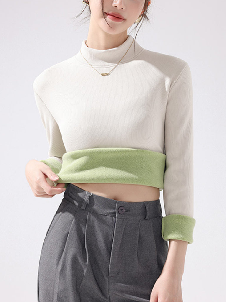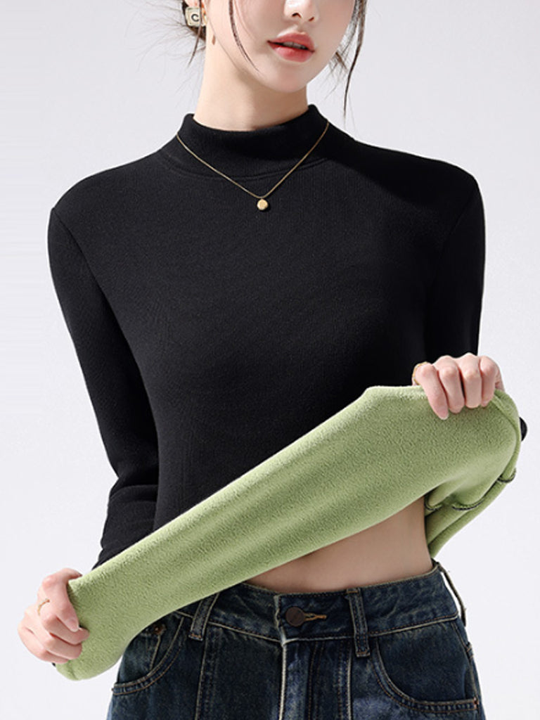 Blusa feminina de gola alta curta com forro de lã, em cores lisas, para o outono.