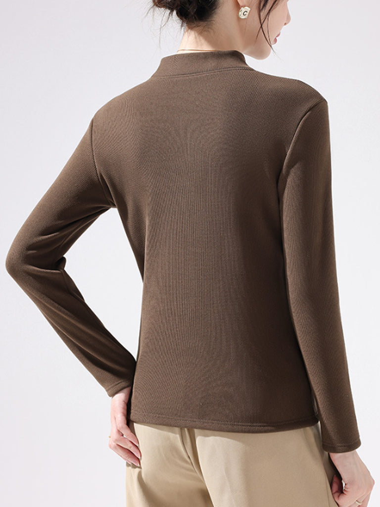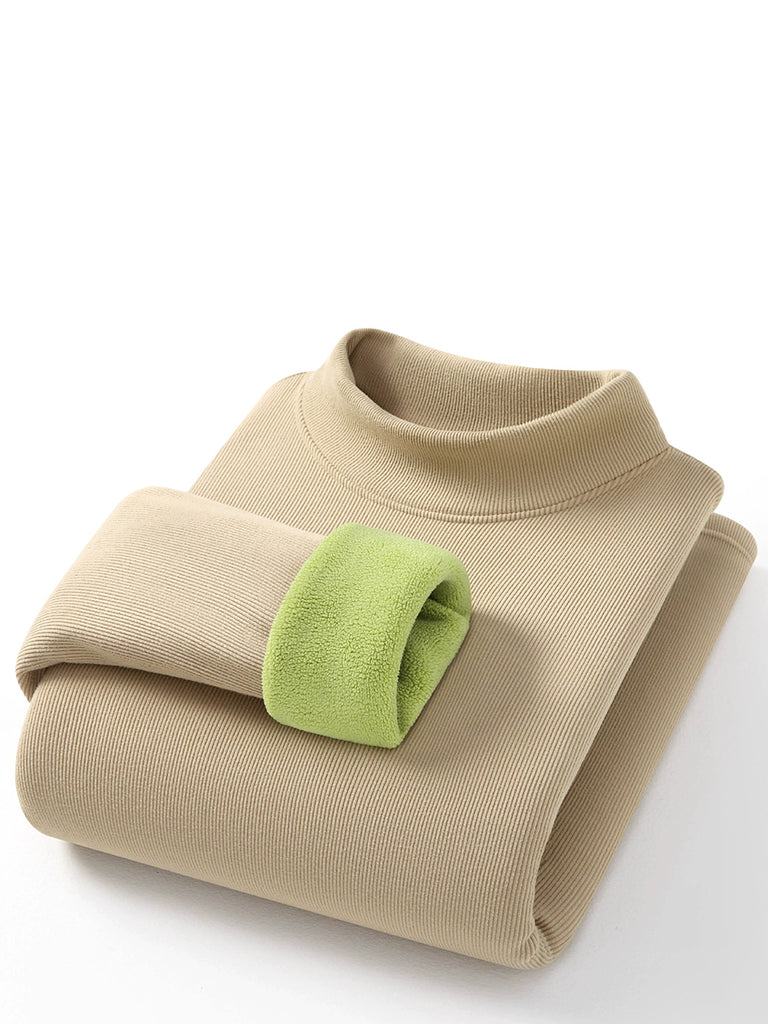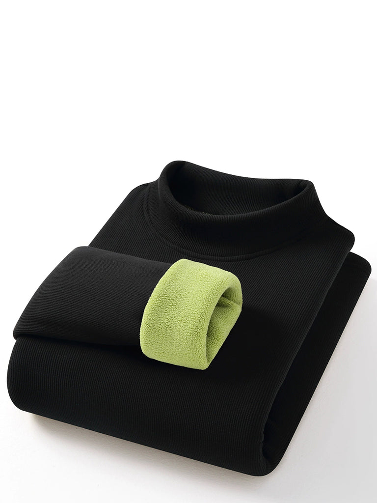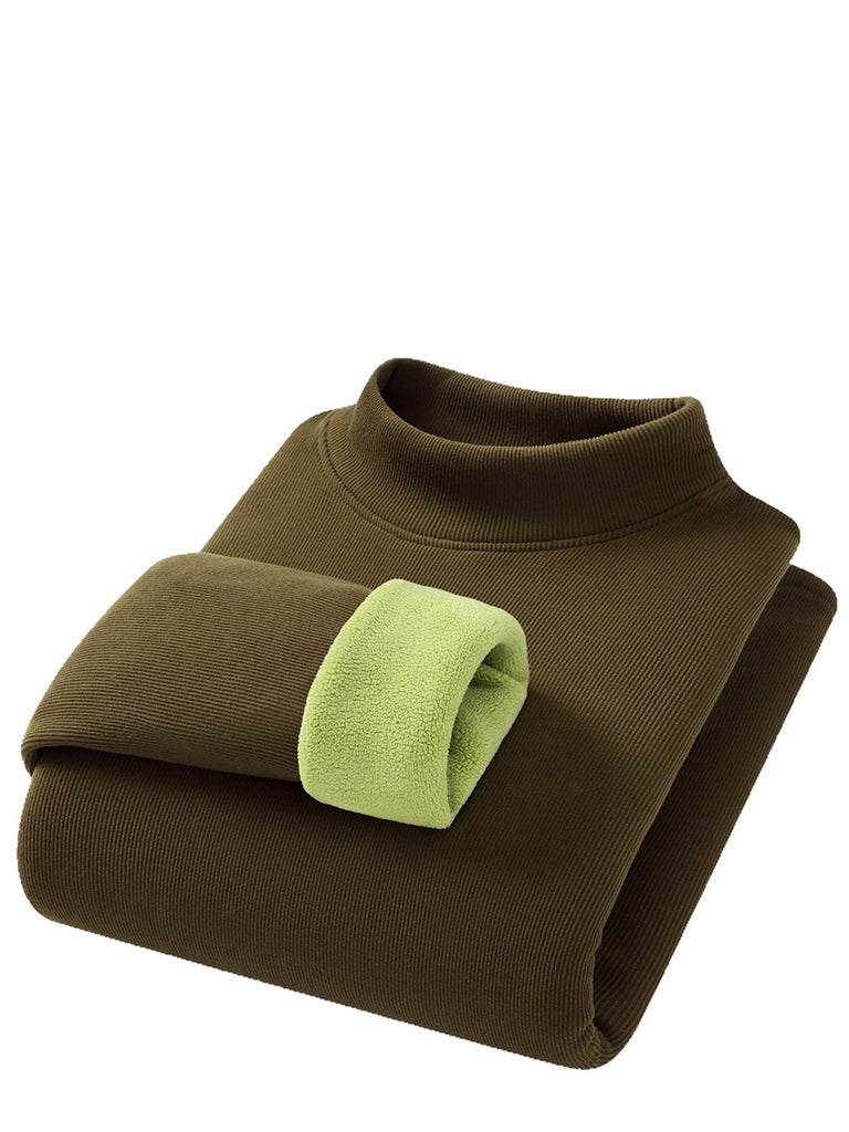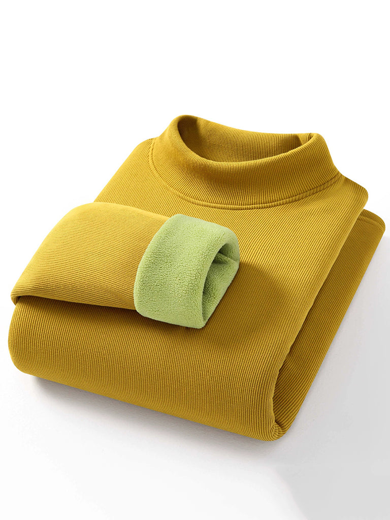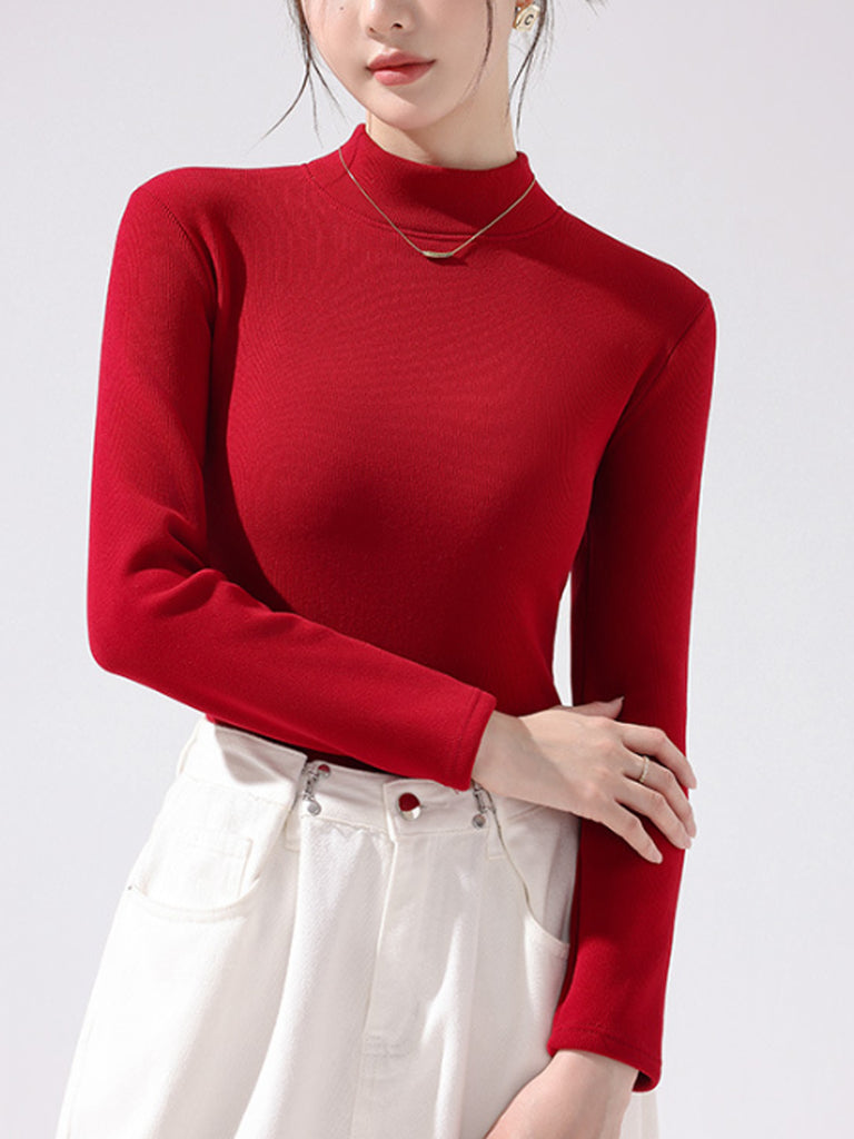 Blusa feminina de gola alta curta com forro de lã, em cores lisas, para o outono.