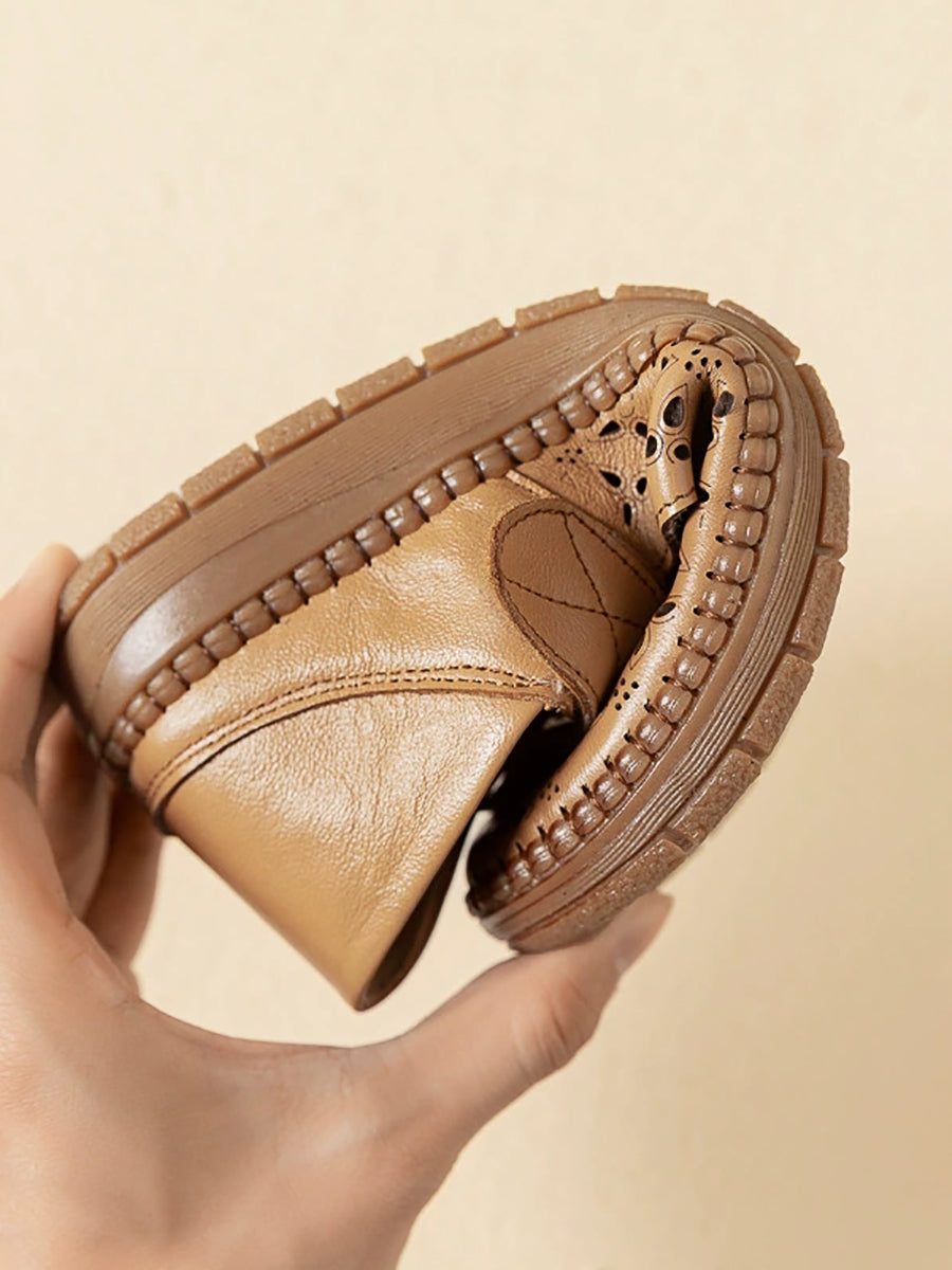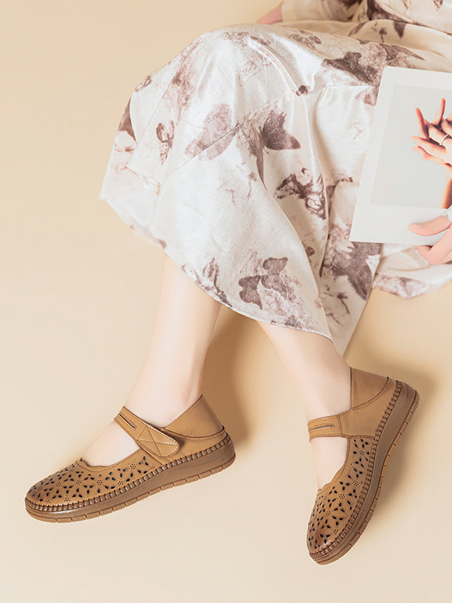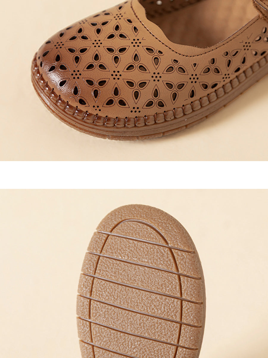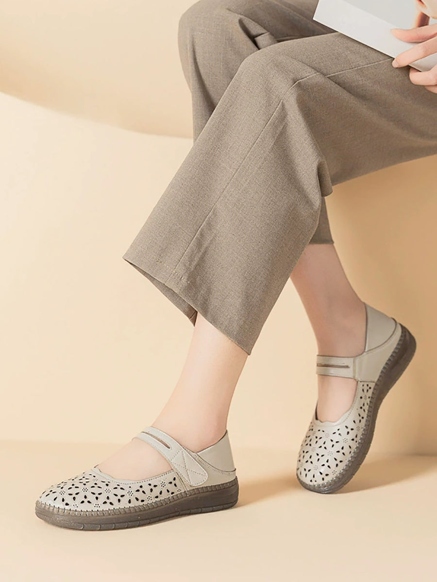 Sapatos femininos vintage de couro genuíno vazados, modelo baixo.