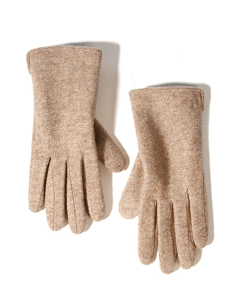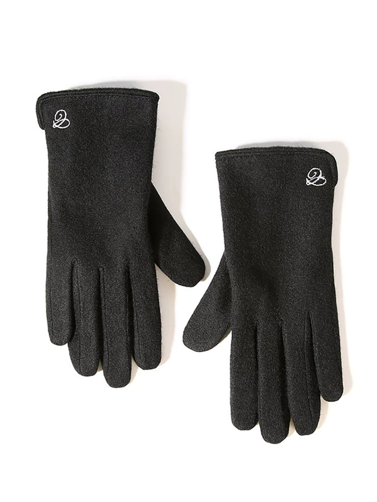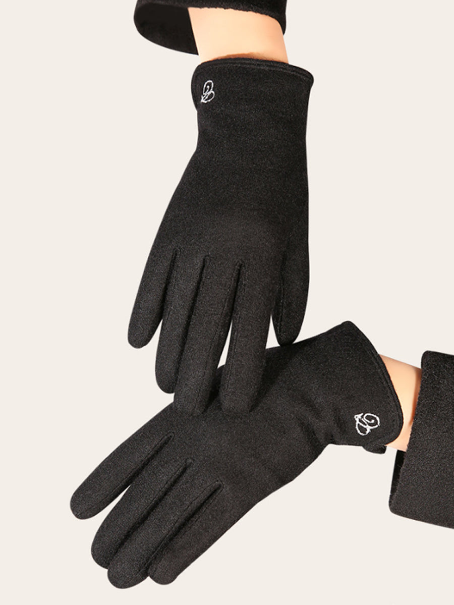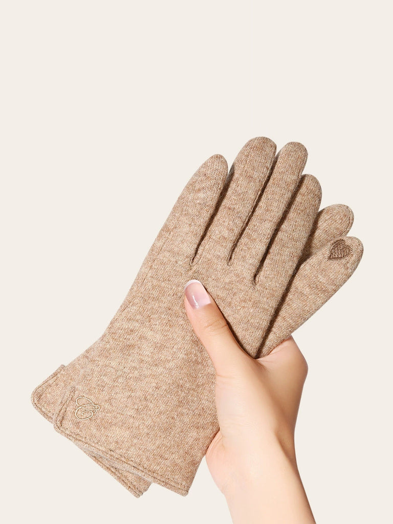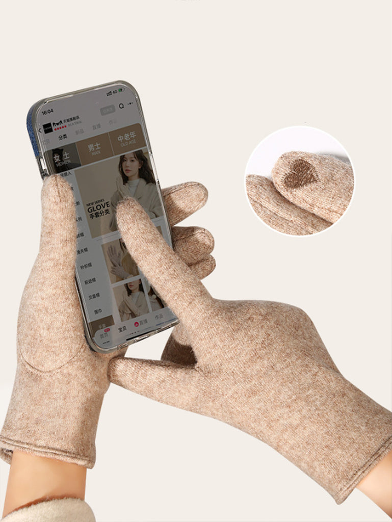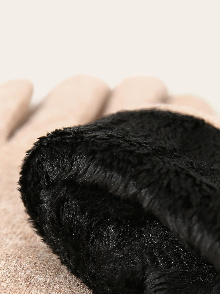 Luvas femininas de inverno em lã lisa, forradas com fleece.