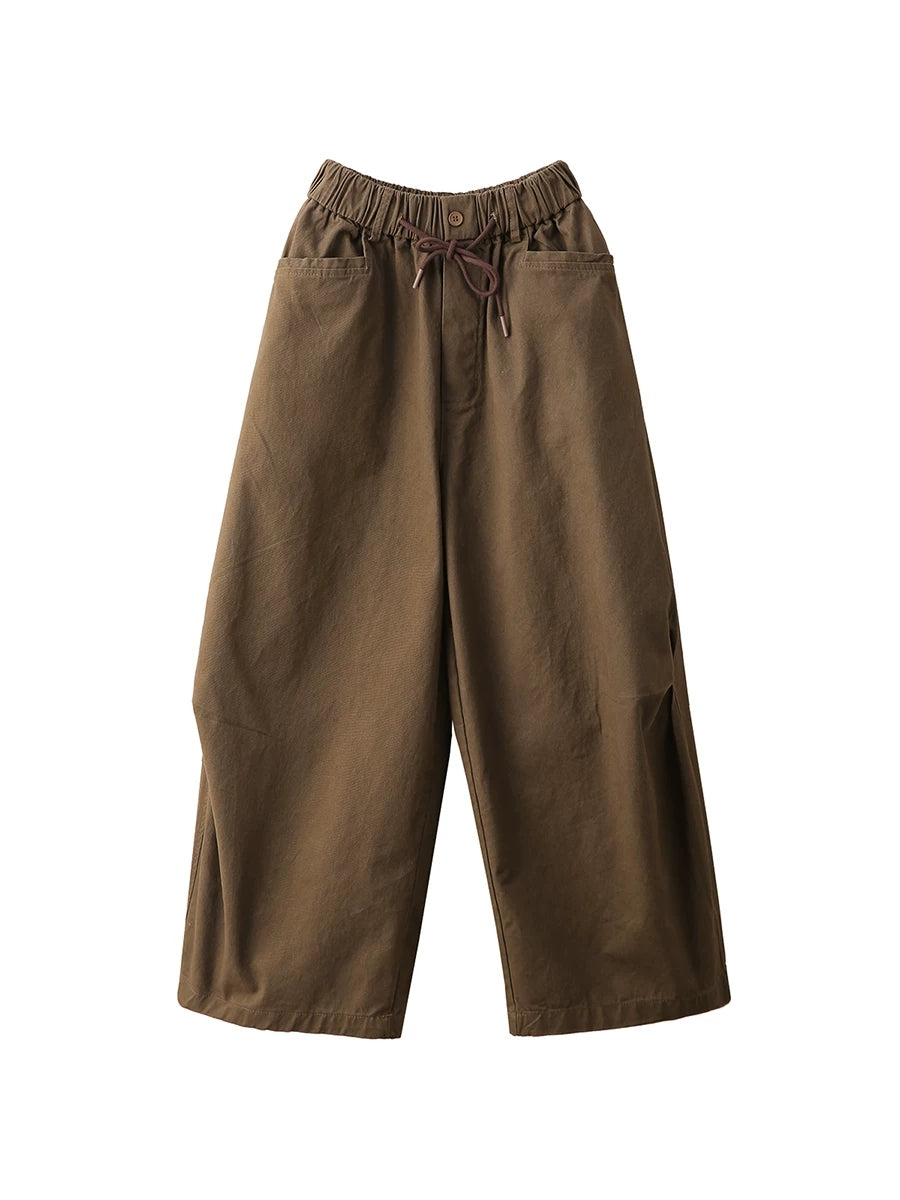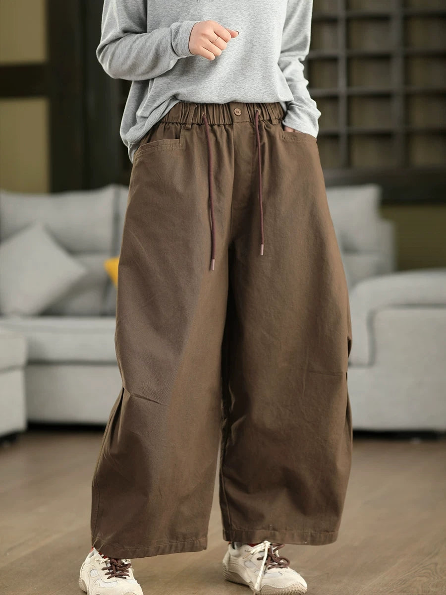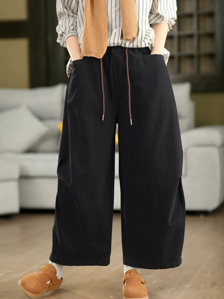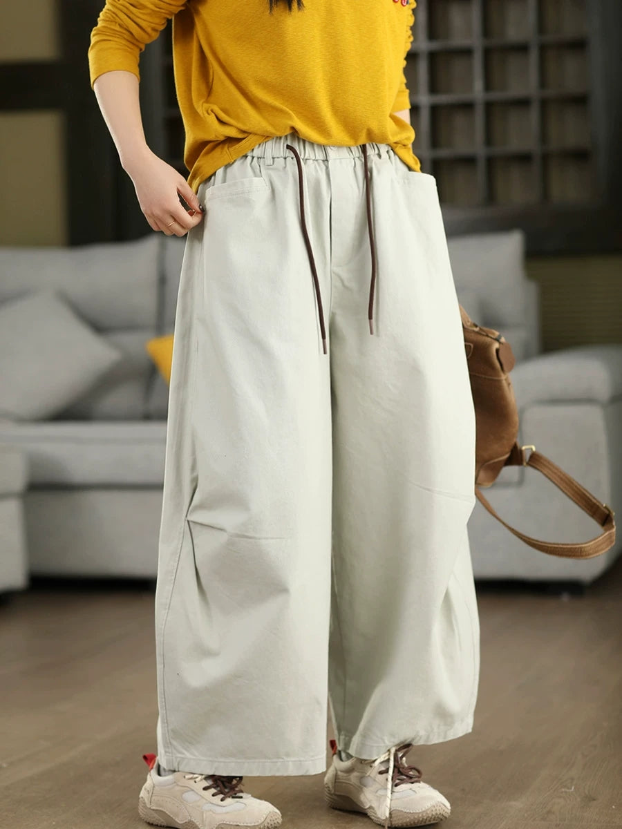 Women Spring Casual Pure Color 100%Cotton Straight Pants