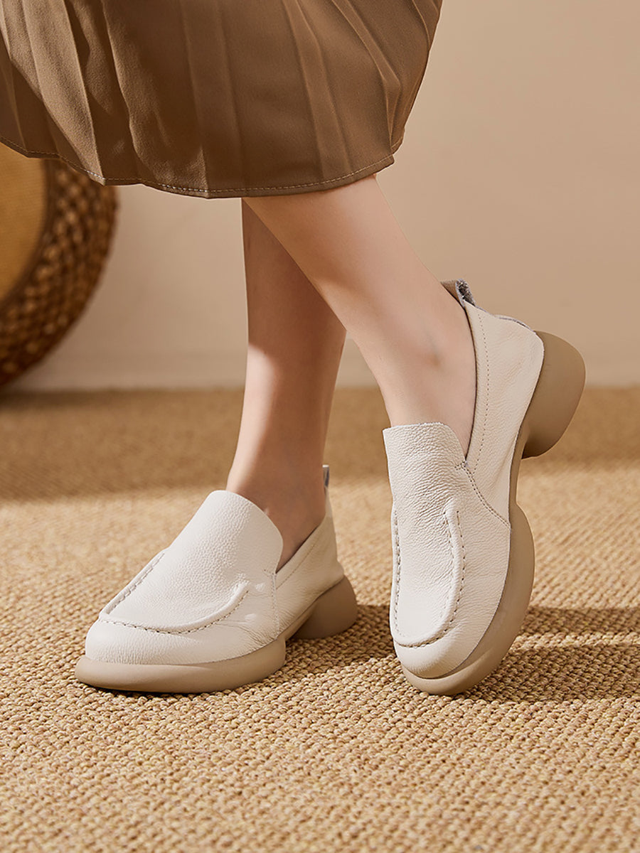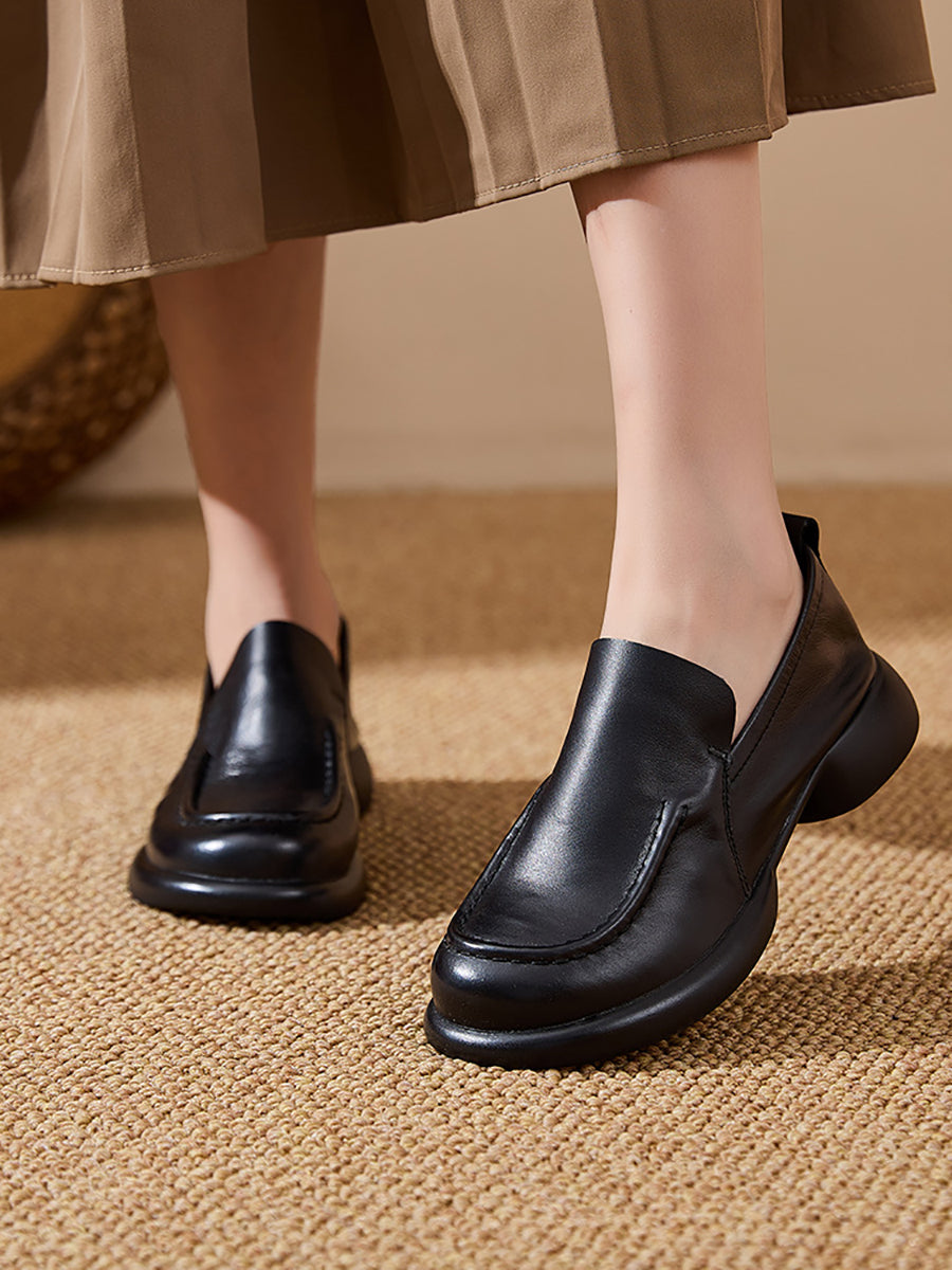 Women Spring Genuine Leather Spliced Low Heel Shoes