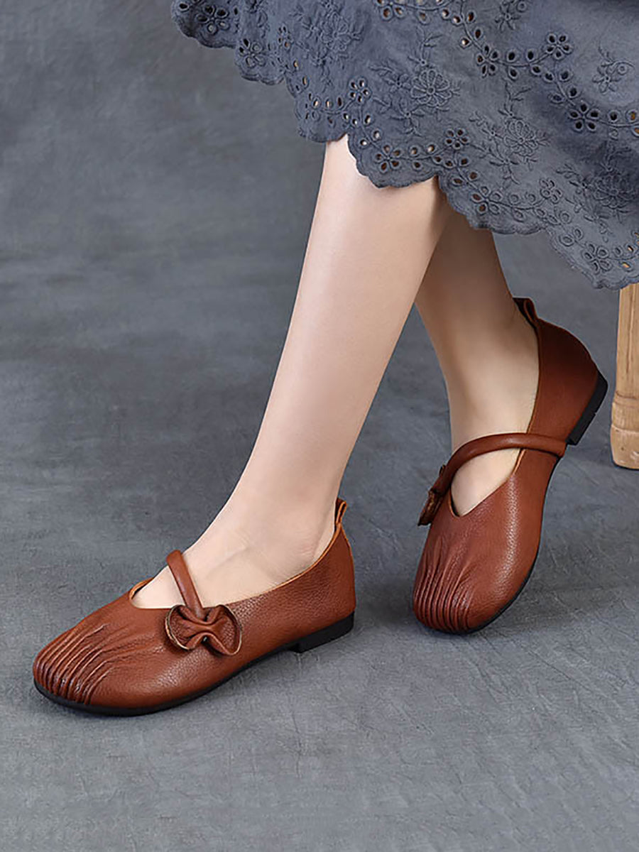 Women Spring Retro Genuine Leather Low Heel Shoes
