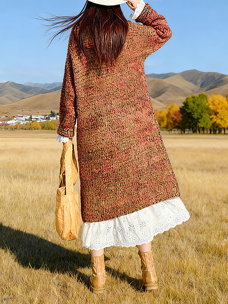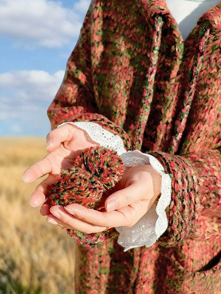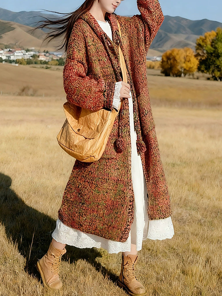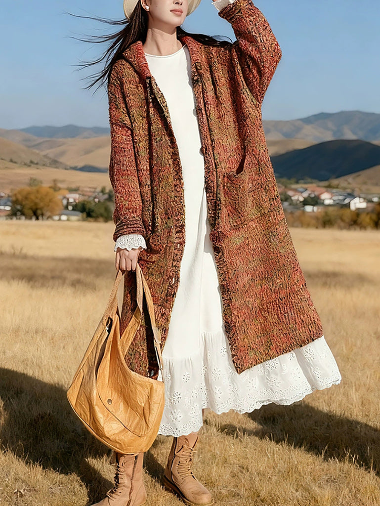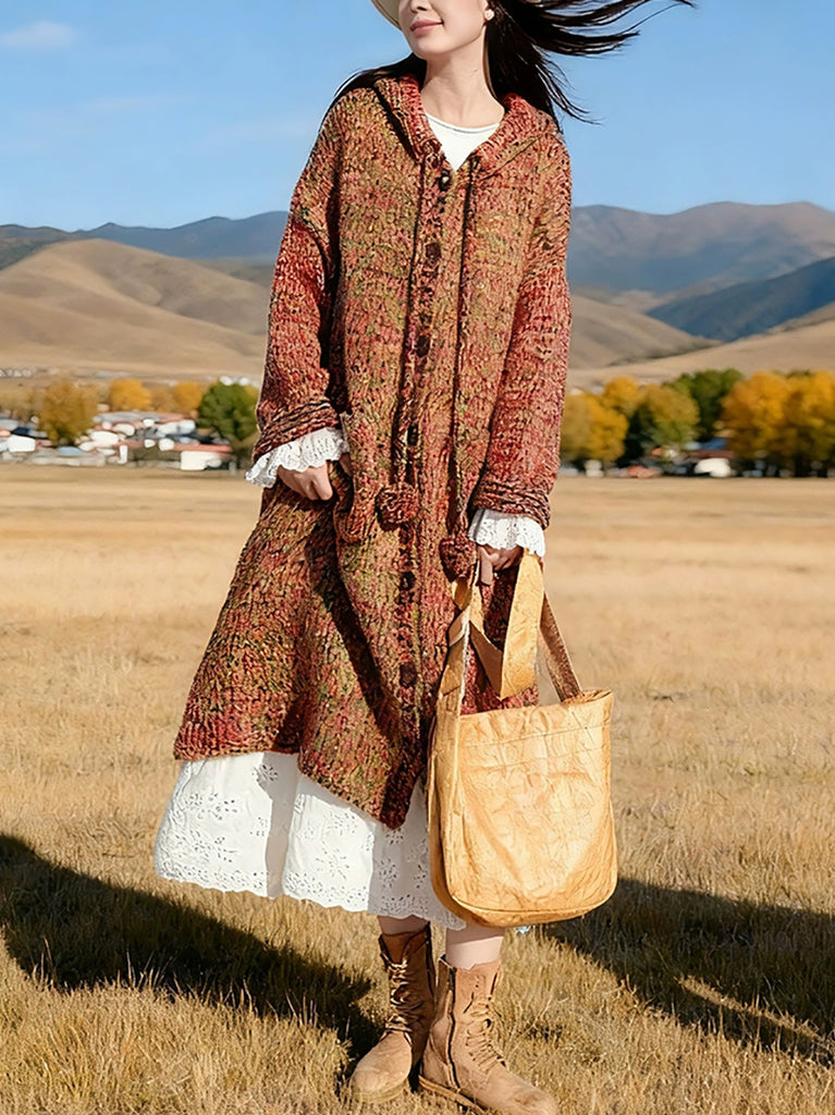 Crafted from a blend of 80% acrylic, 8% wool, 2% spandex, and 10% other fibers, this long coat features a hooded collar and full raglan sleeves with an artsy design. Ideal for autumn and winter, it offers both warmth and style.