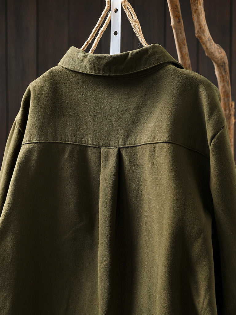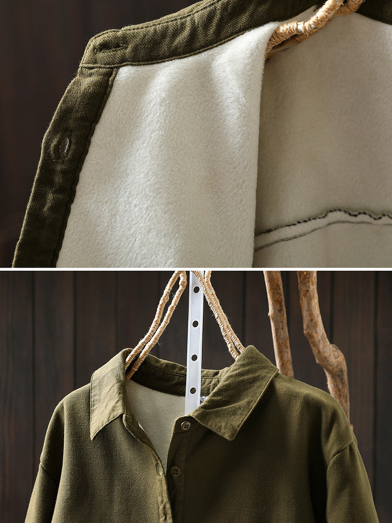Women Autumn Casual Pure Color Fleece-lined Shirt