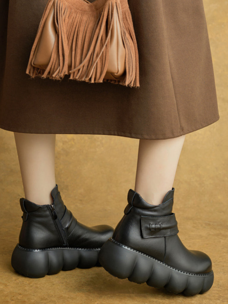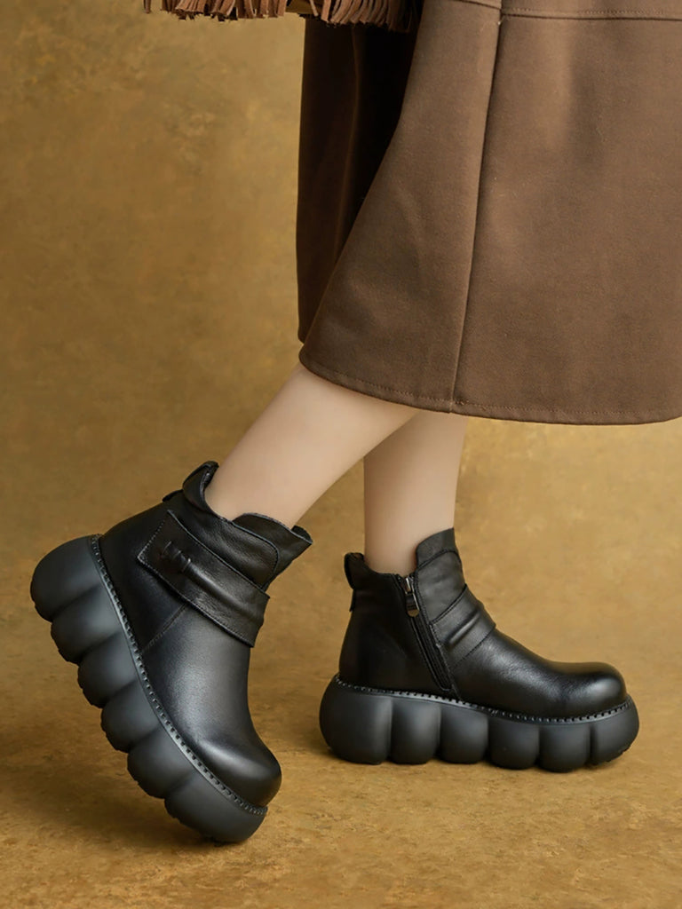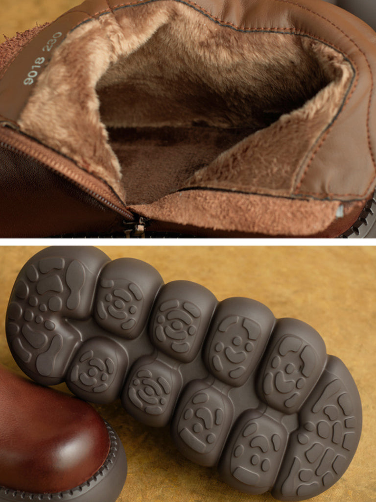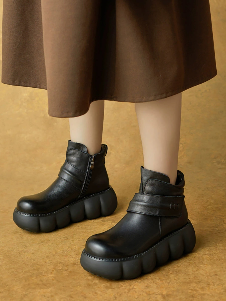 Women Winter Genuine Leather Fleece-lined Platform Boots