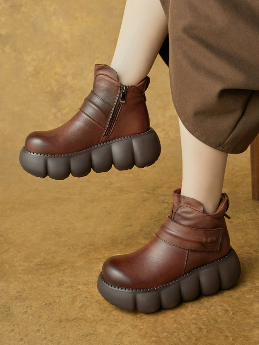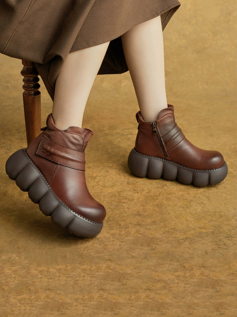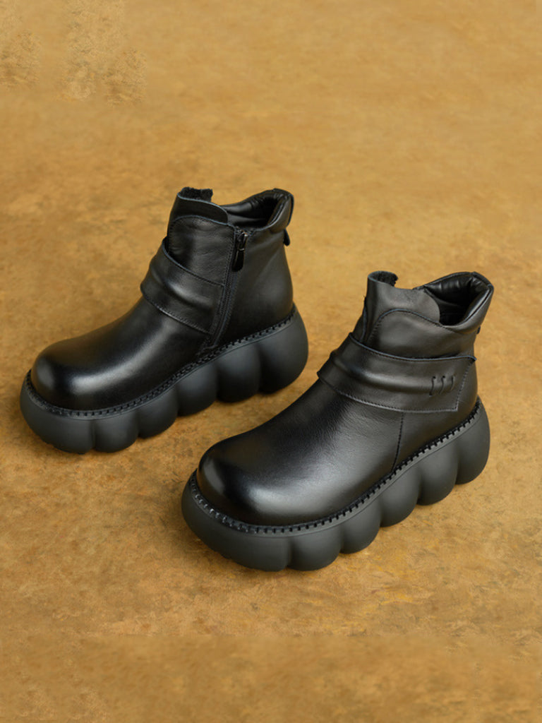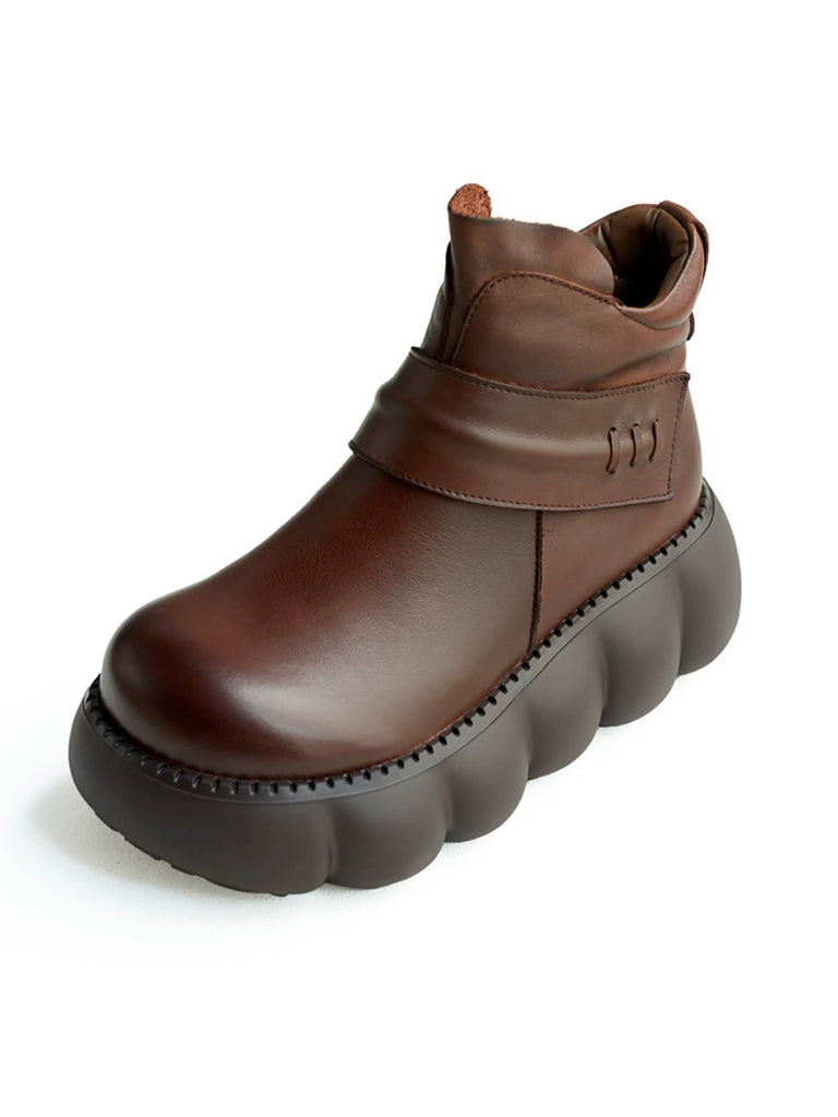 Women Winter Genuine Leather Fleece-lined Platform Boots