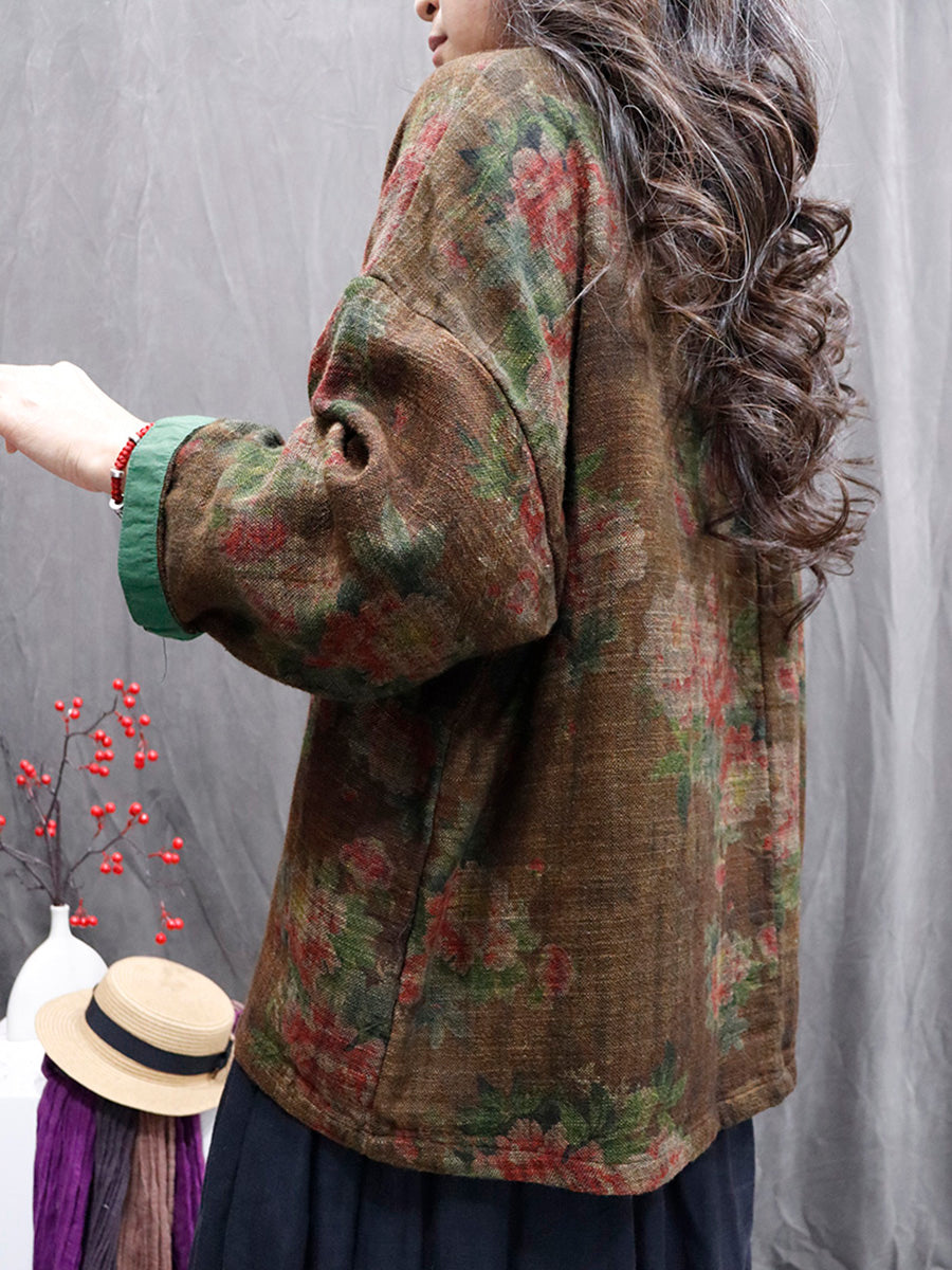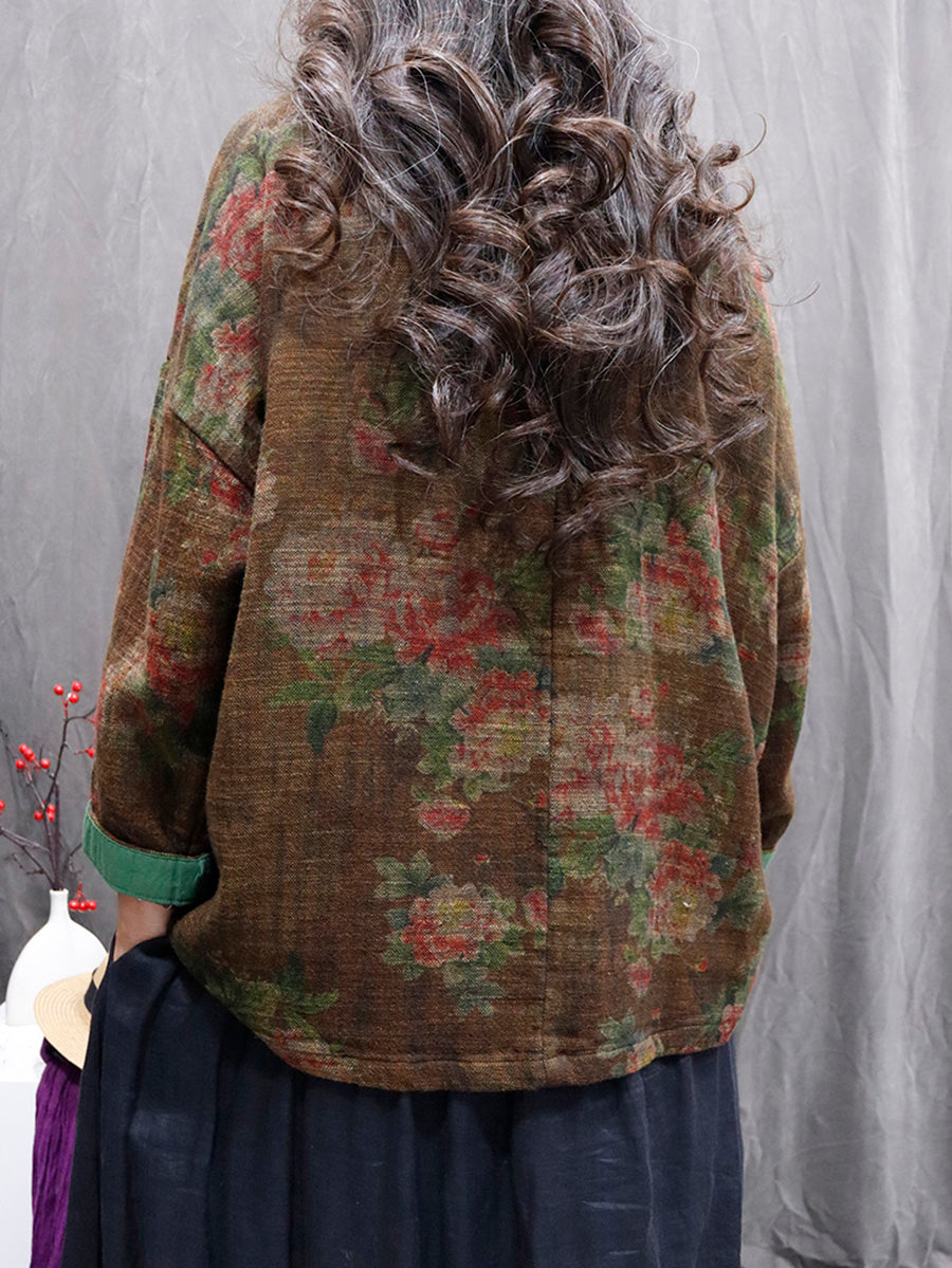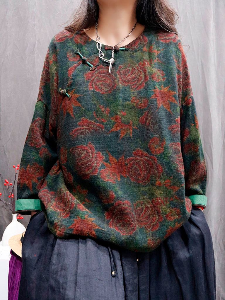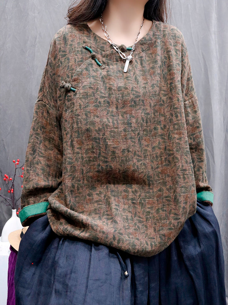 Crafted from breathable linen, this winter blouse showcases an elegant floral pattern with a classic o-neck silhouette. The raglan sleeves provide comfortable movement while maintaining a refined aesthetic, making it an ideal layering piece for cooler seasons. Its ethnic-inspired design bridges traditional craftsmanship with contemporary style, perfect for autumn and winter wardrobes seeking distinctive character and timeless appeal.