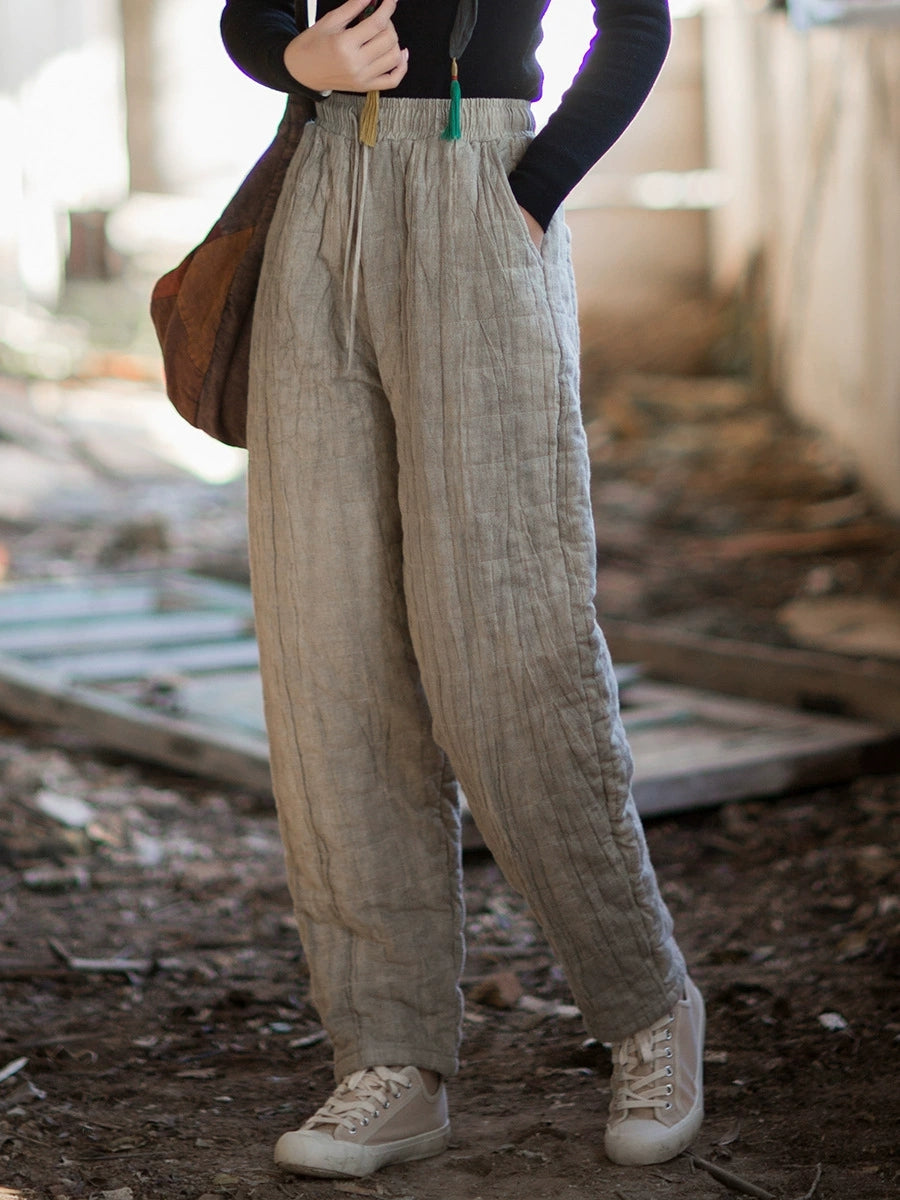 Women Winter Retro Pure Color Padded Harem Pants