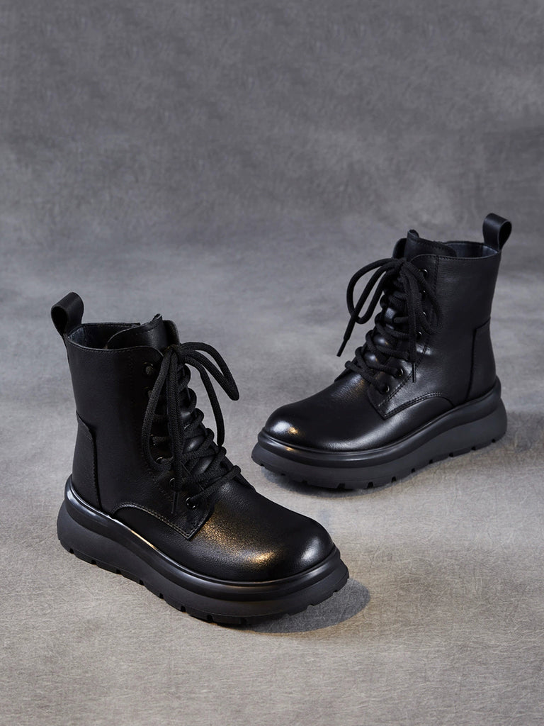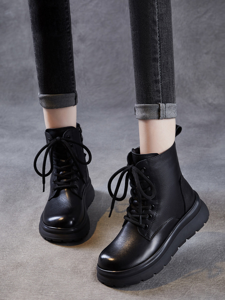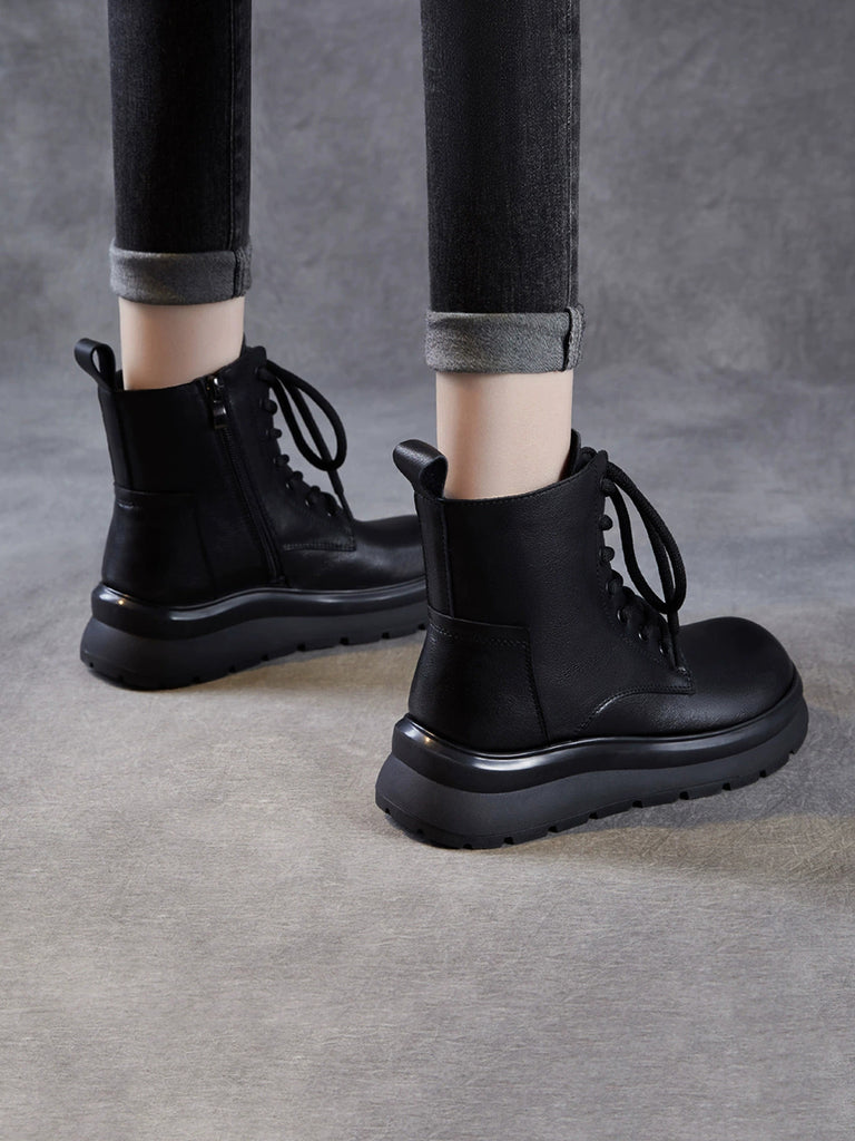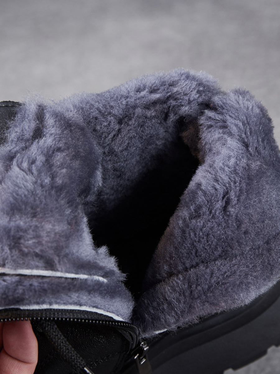 Women Winter Casual Genuine Leather Fleece-lined Boots