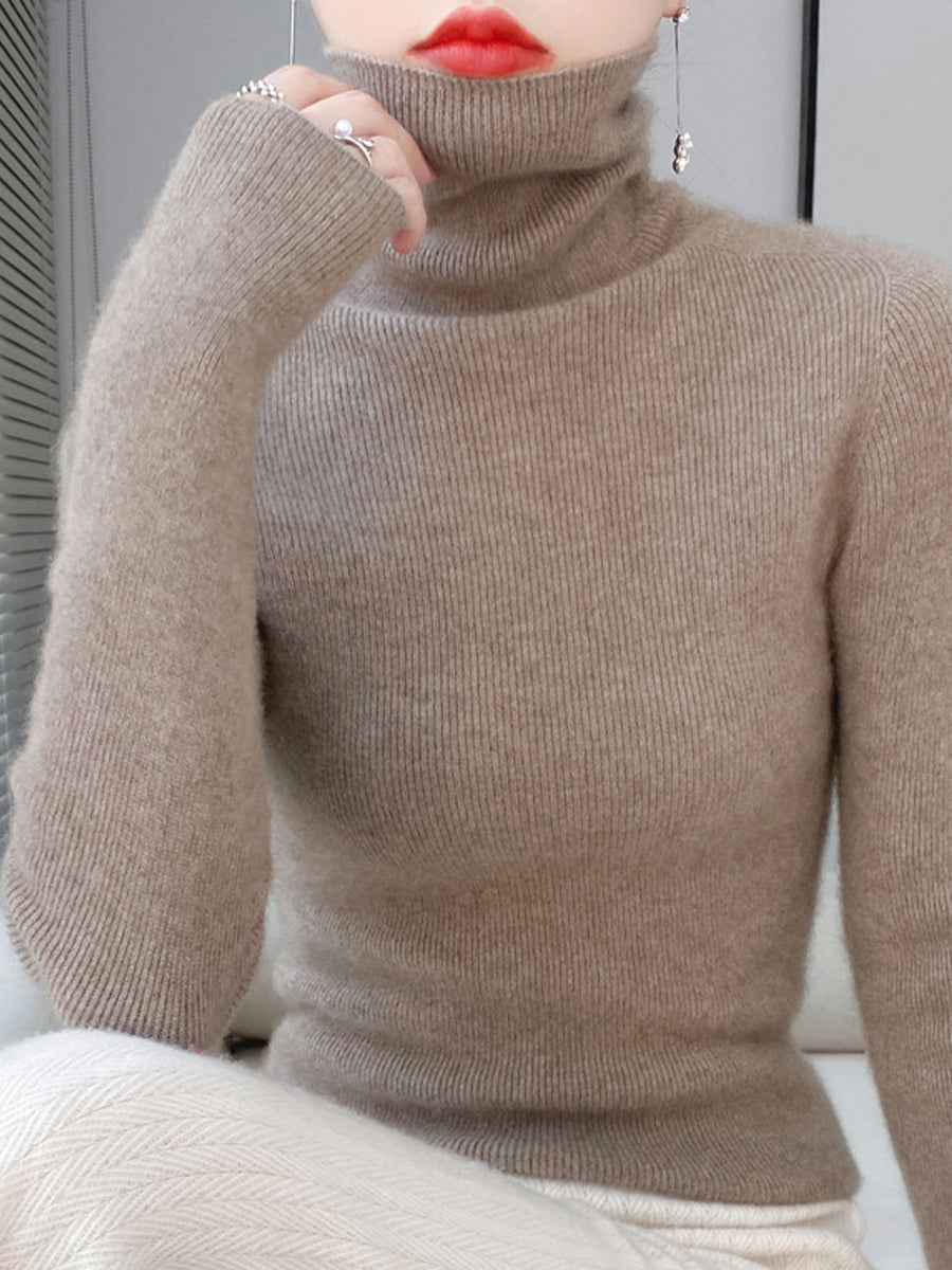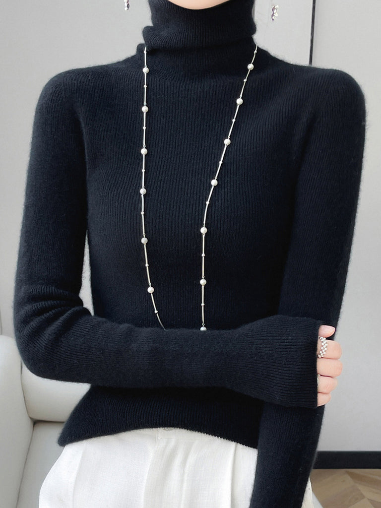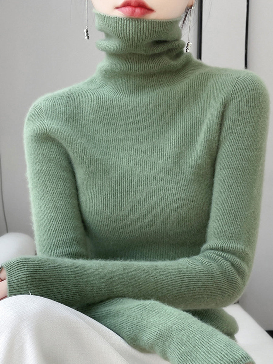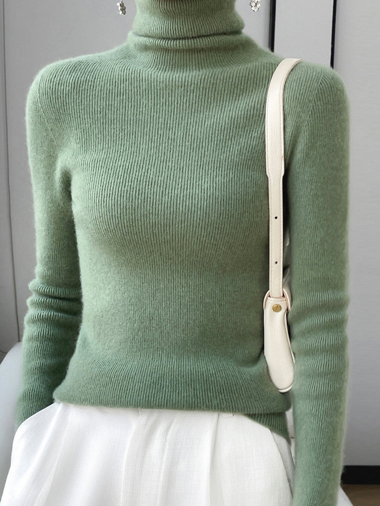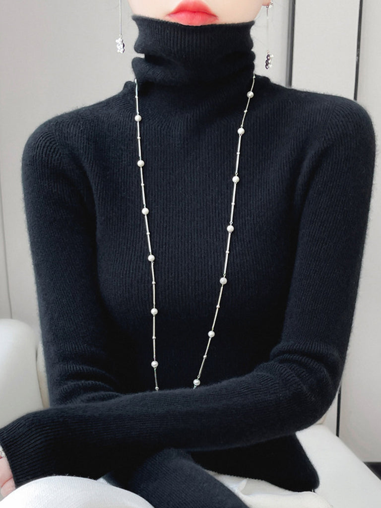 Women Autumn Casual Pure Color Turtleneck Sweater