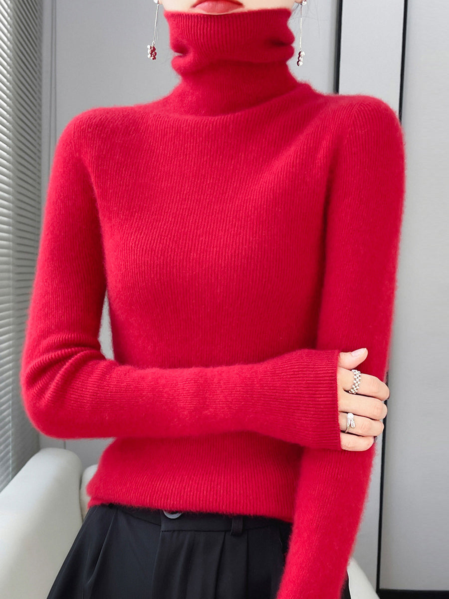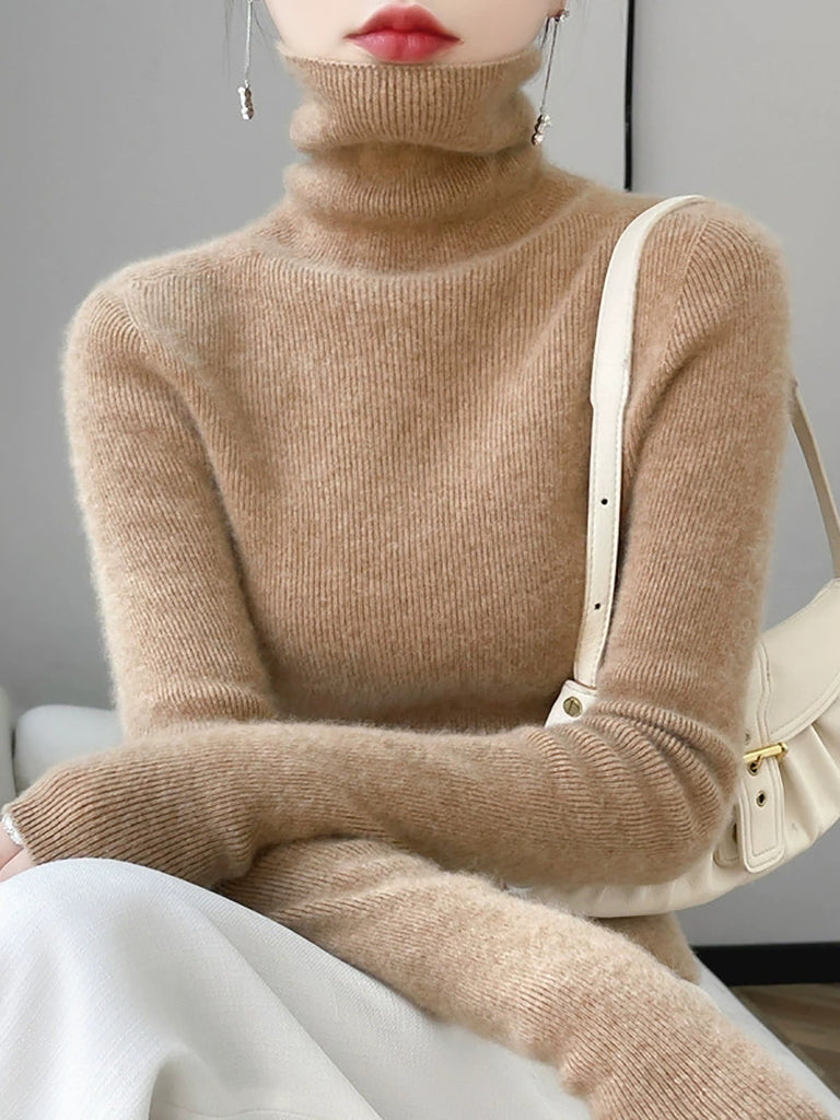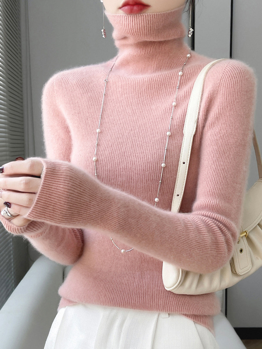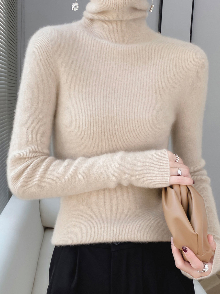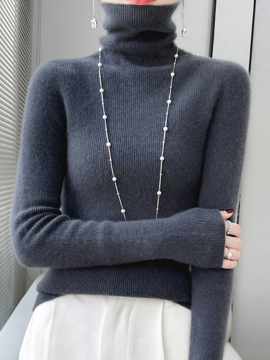 Women Autumn Casual Pure Color Turtleneck Sweater