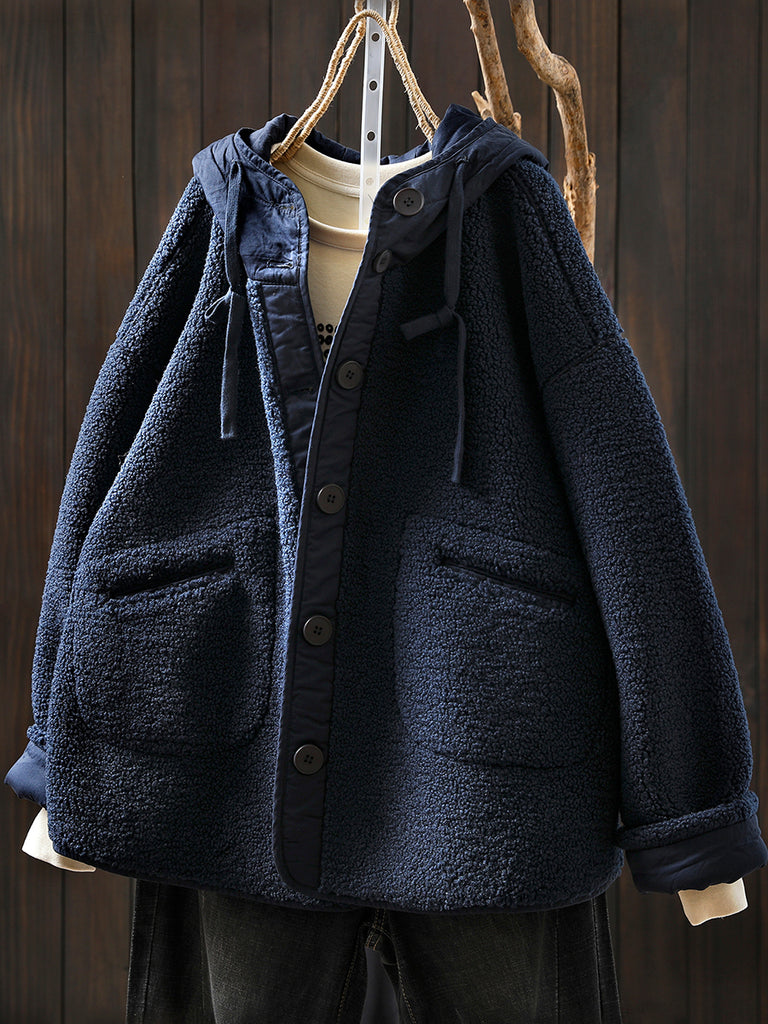 Women Winter Casual Pure Color Fleece Hooded Coat