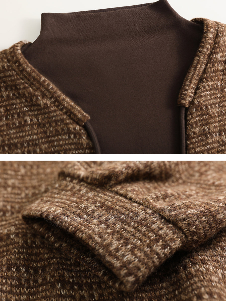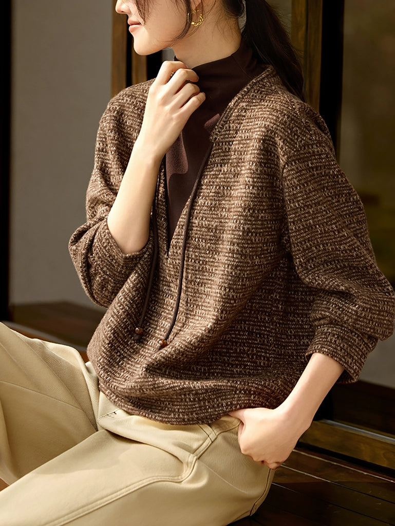 Women Winter Retro Fake Two Spliced Turtleneck Blouse
