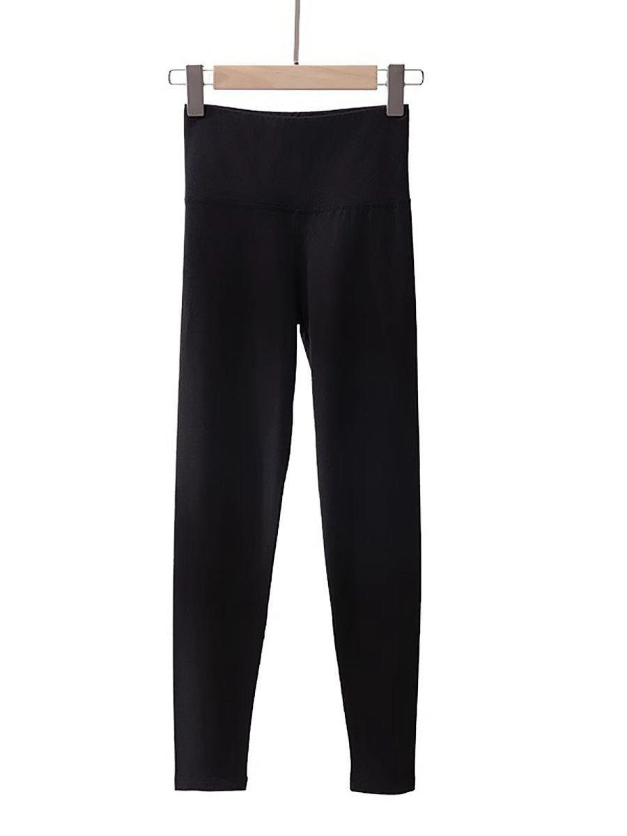 Women Winter Warm Pure Color High Waist Leggings