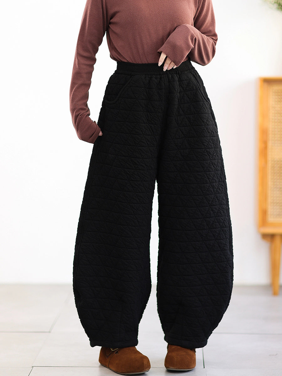 Women Winter Casual Pure Color Padded Harem Pants