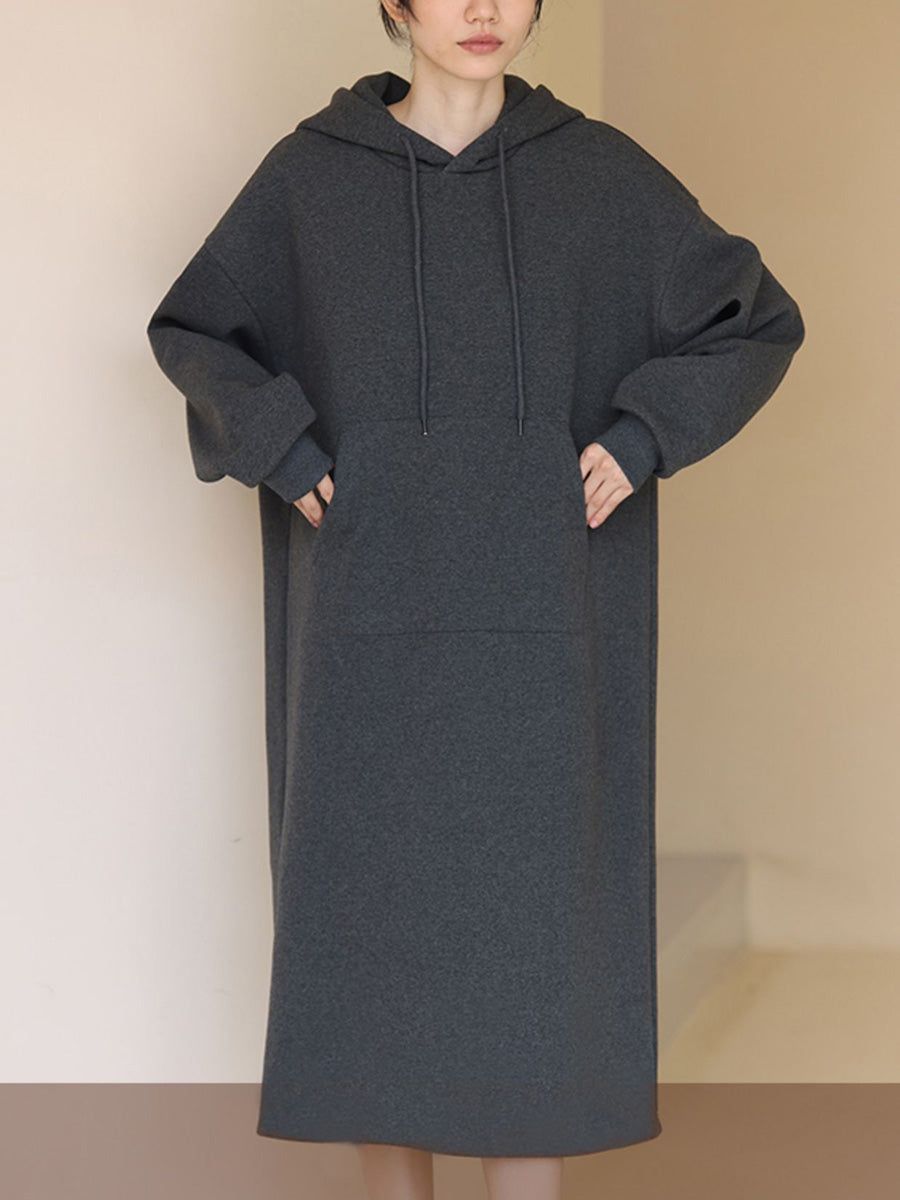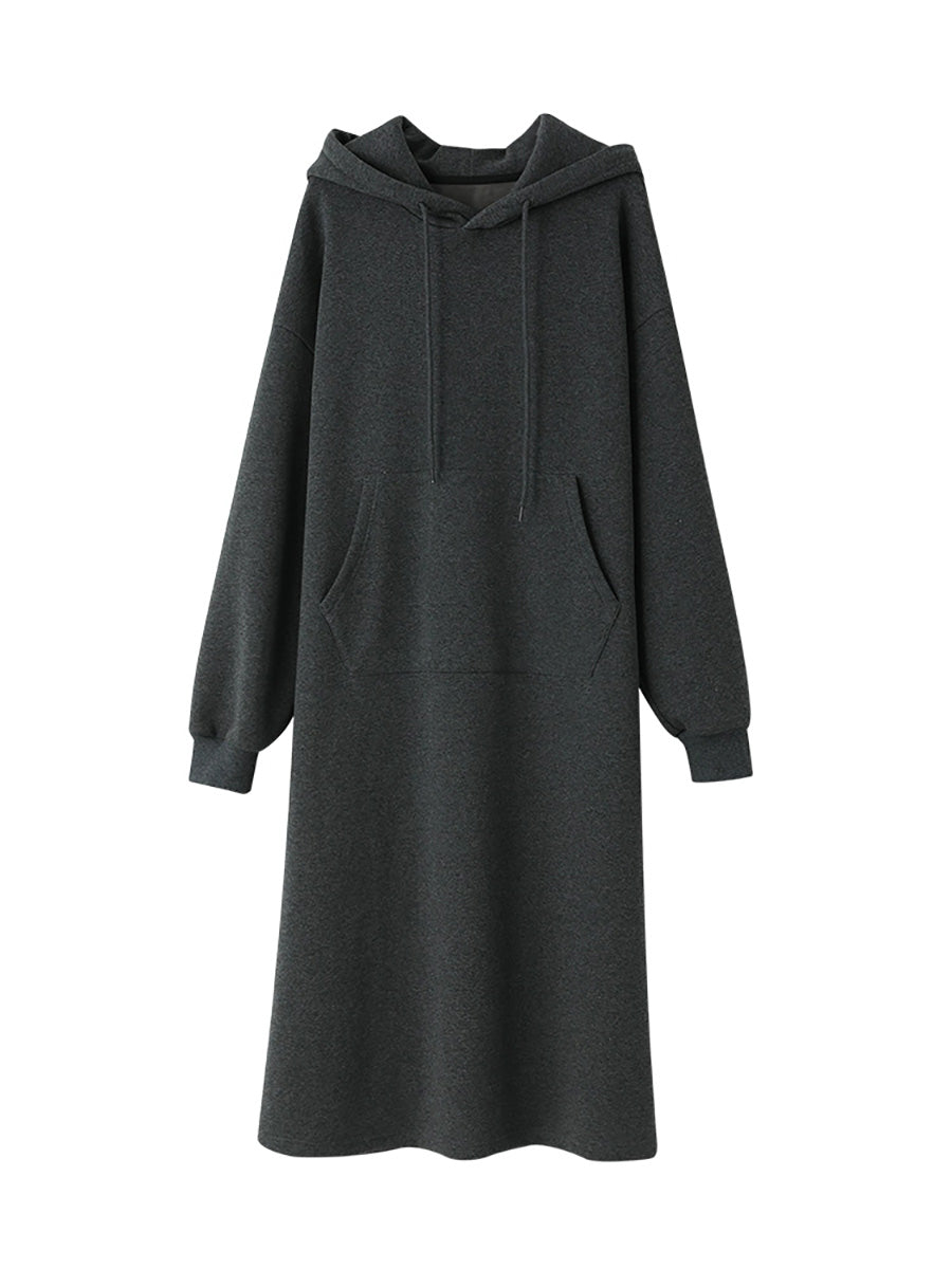 Women Autumn Casual Pure Color Hooded Long Dress