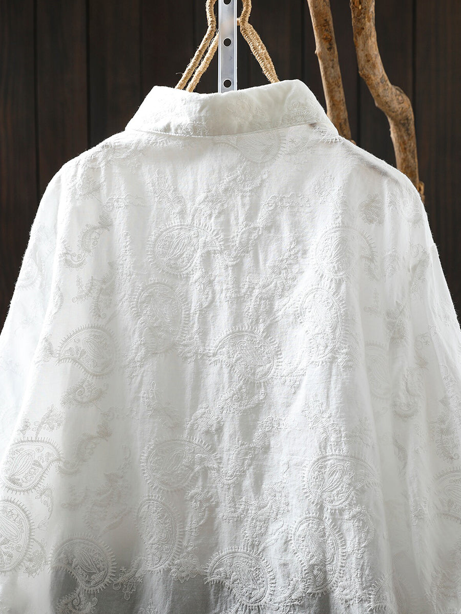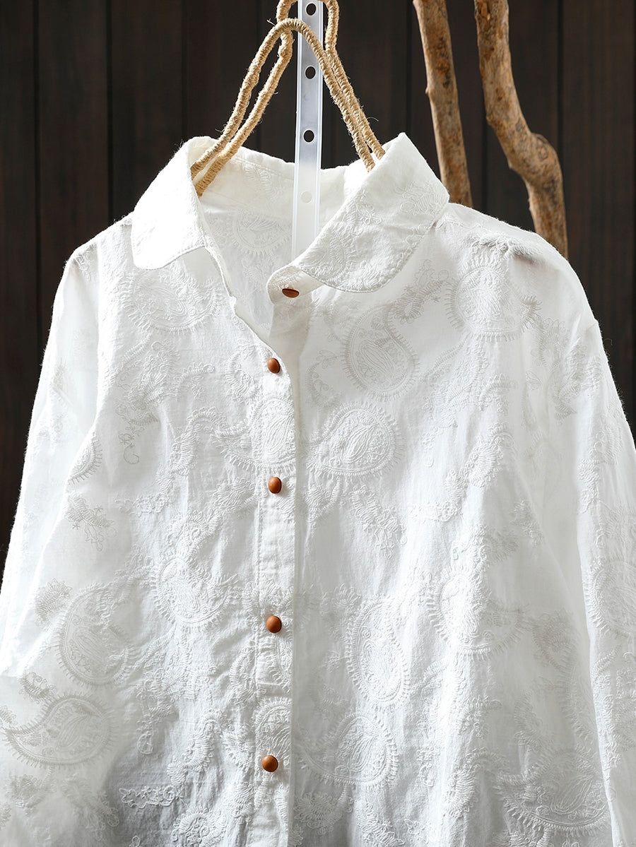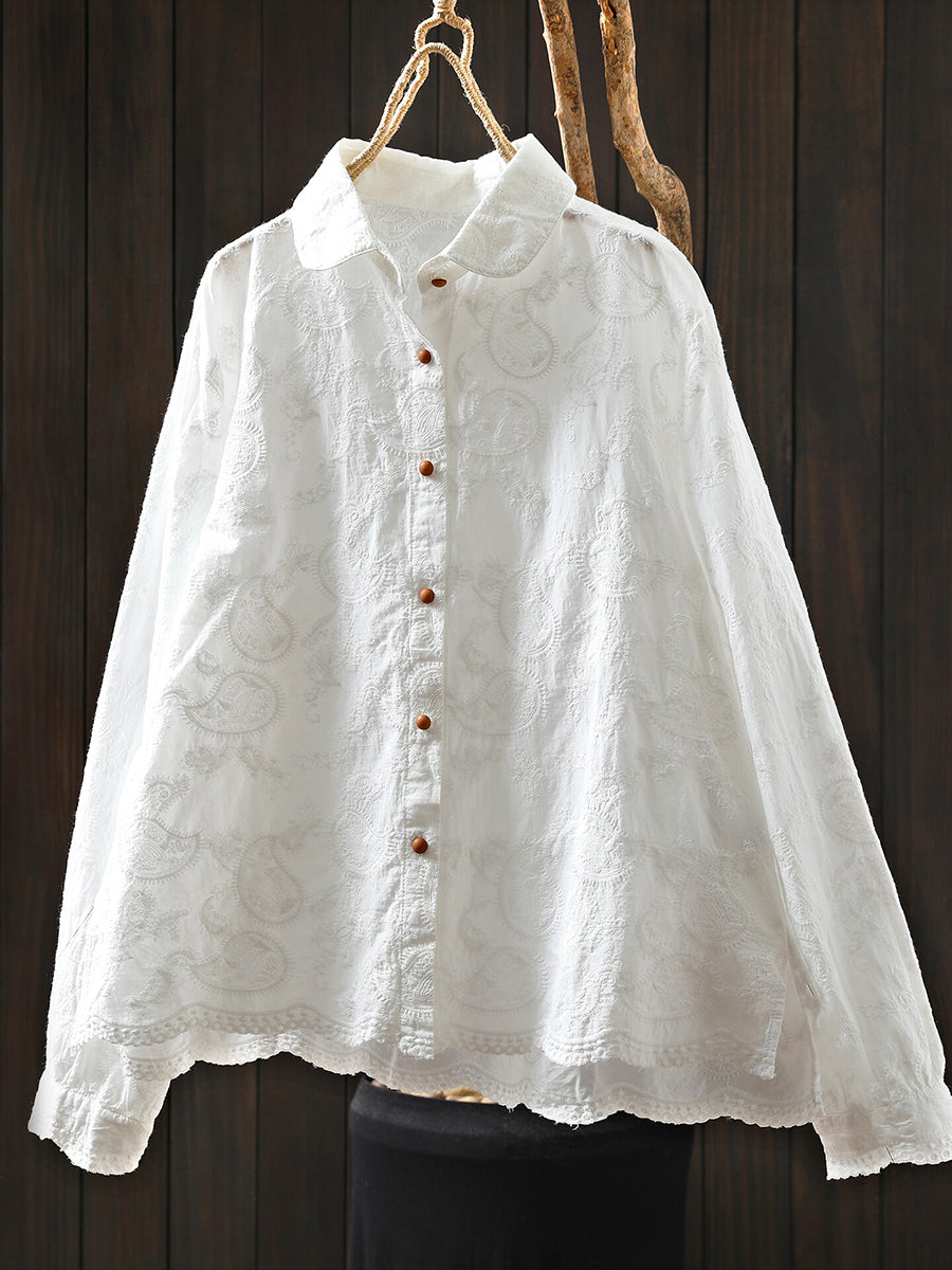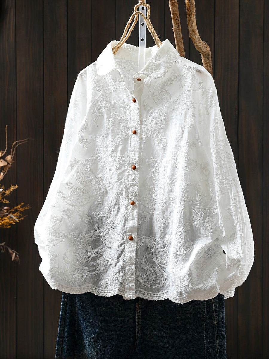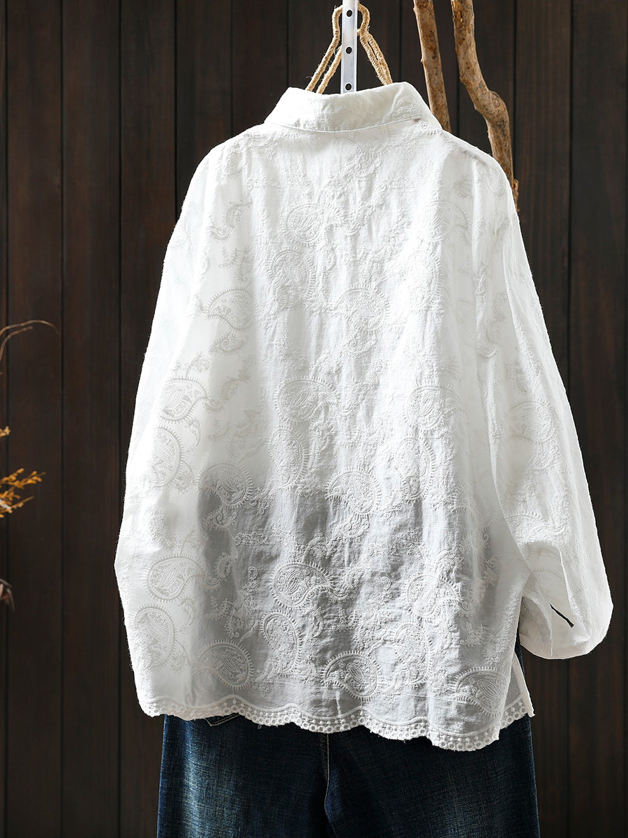 Women Artsy Autumn Embroidery 100%Cotton Shirt