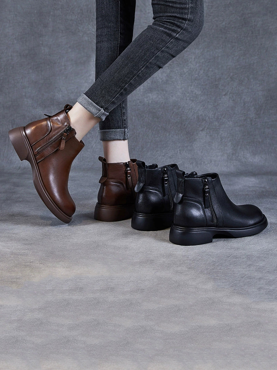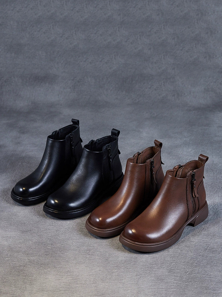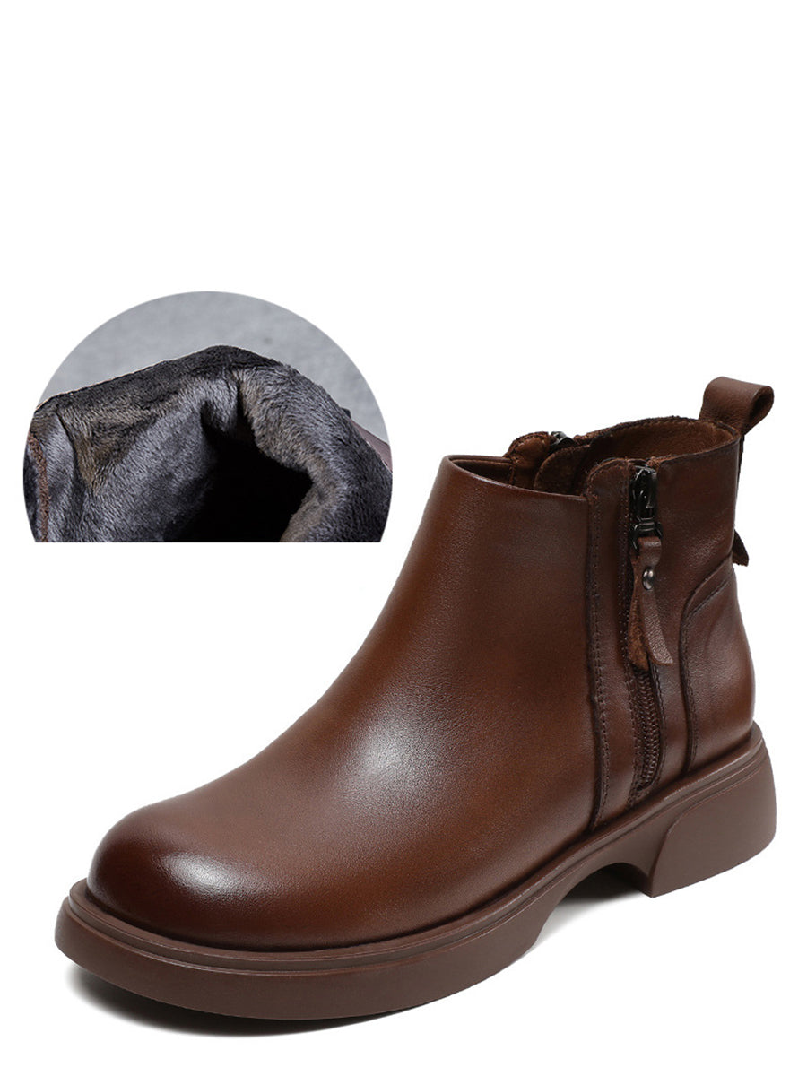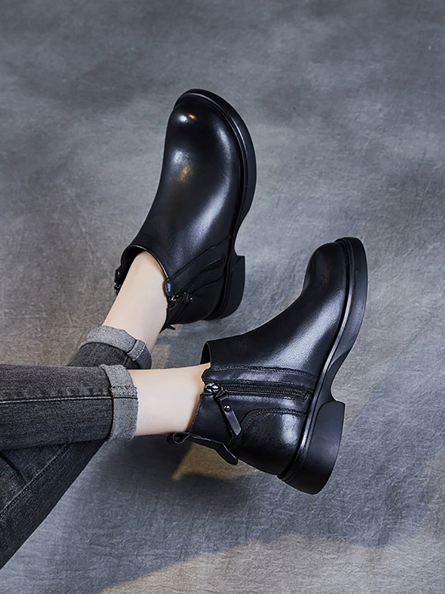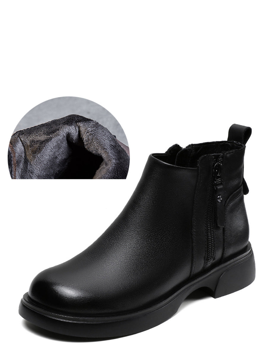 Women Winter Genuine Leather Low Heel Ankle Boots