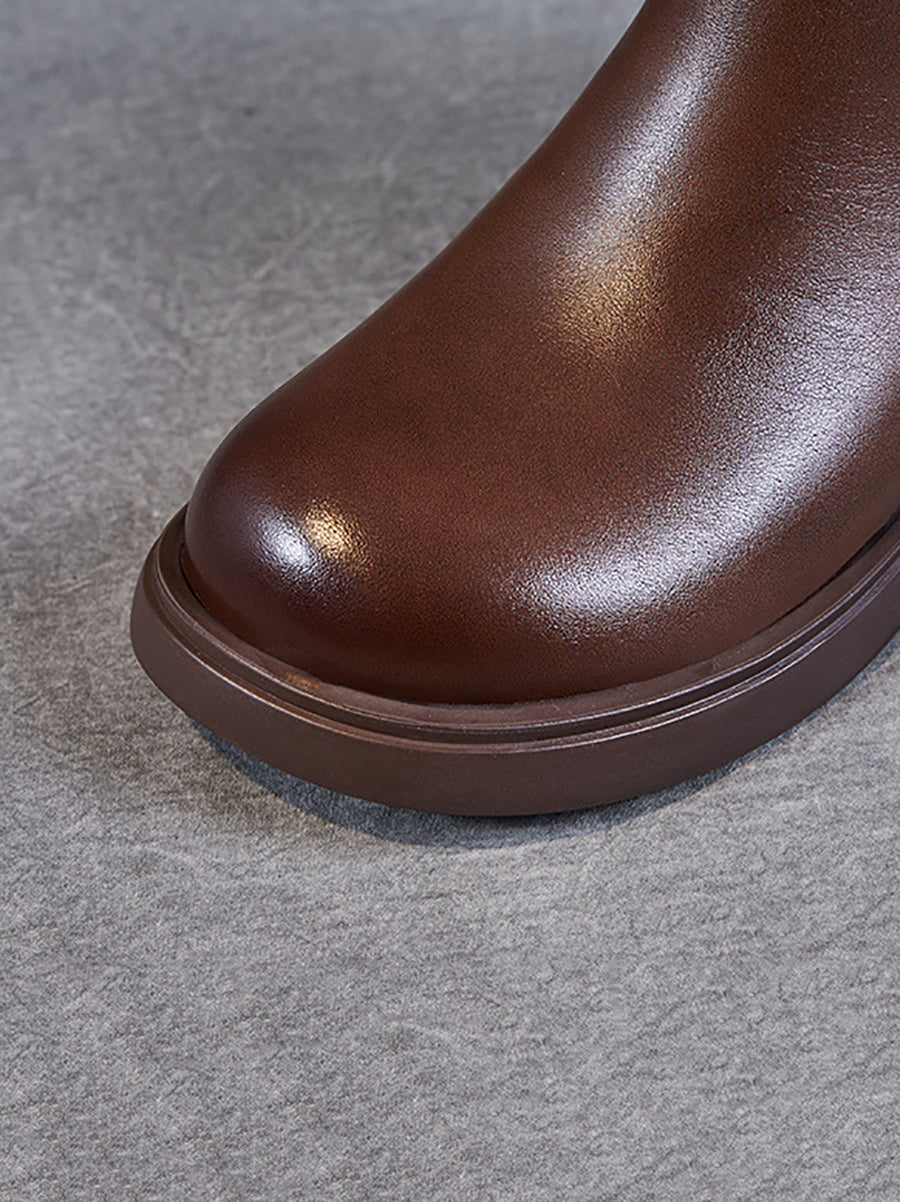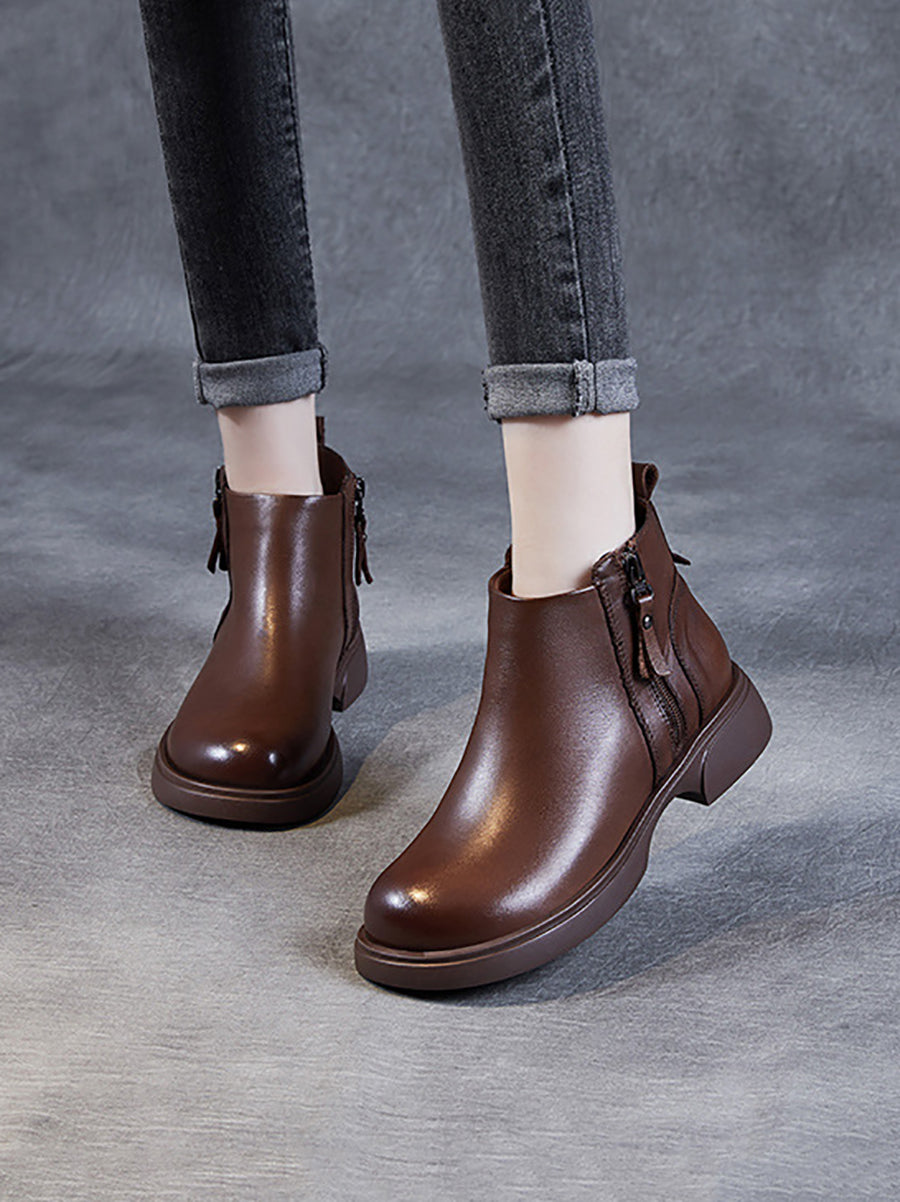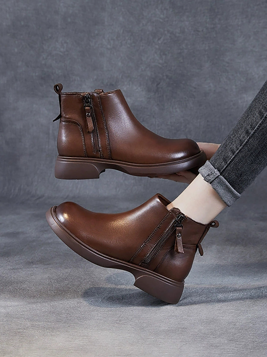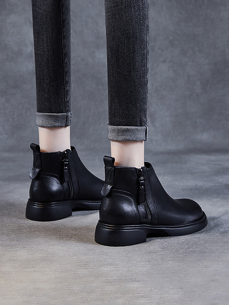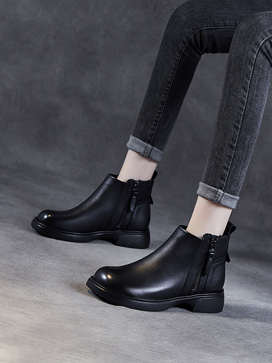 Women Winter Genuine Leather Low Heel Ankle Boots