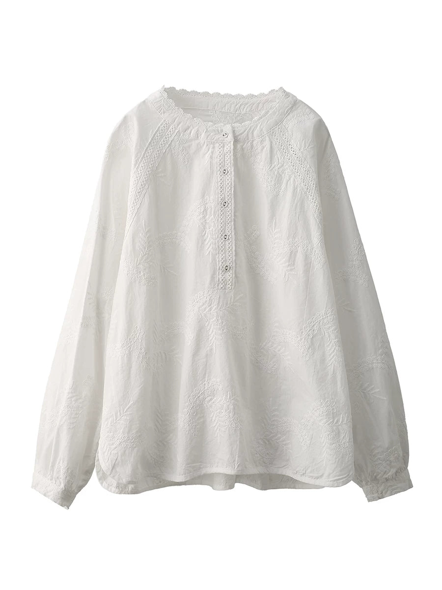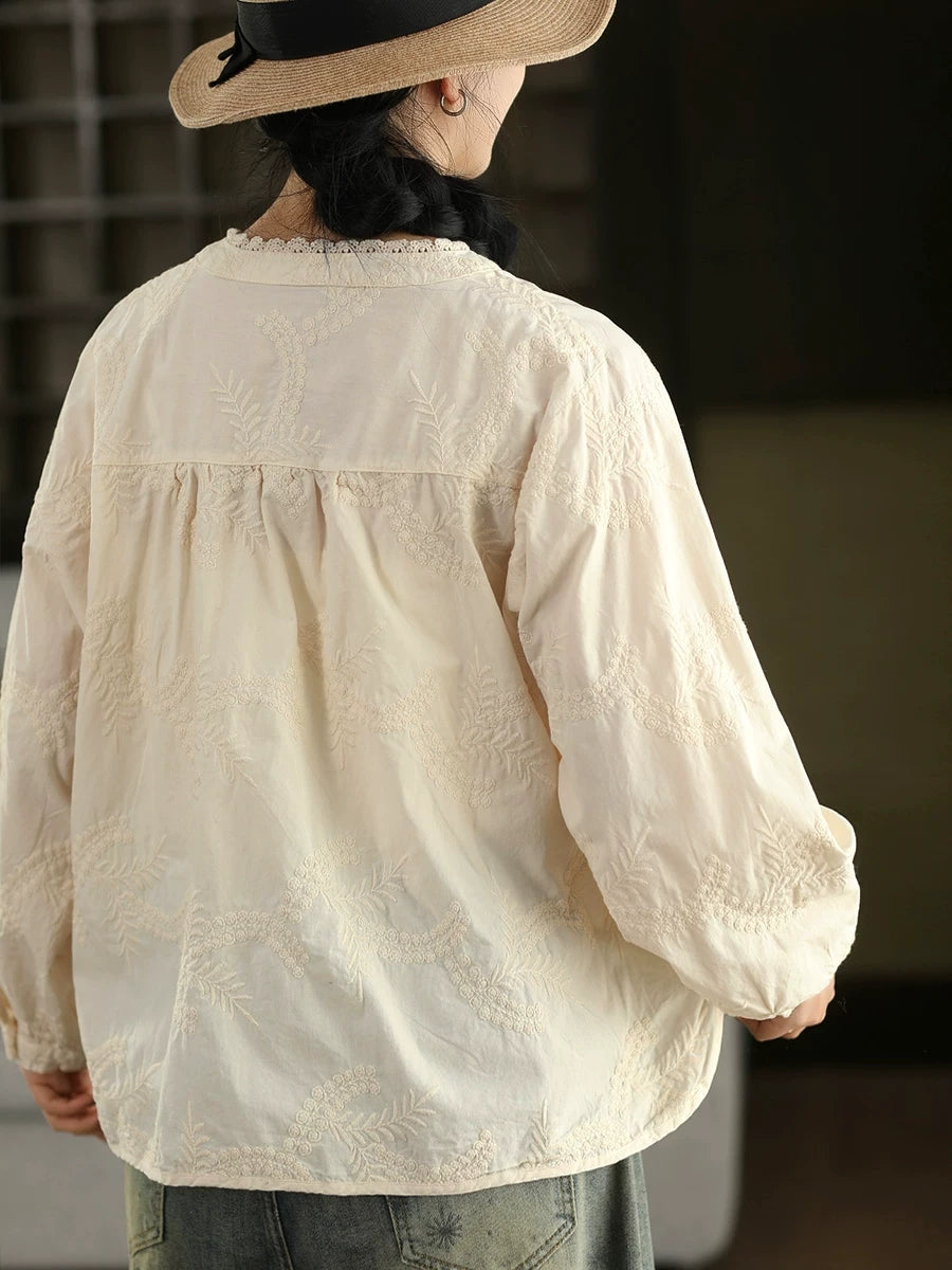 Women Spring Artsy Embroidery 100%Cotton Shirt