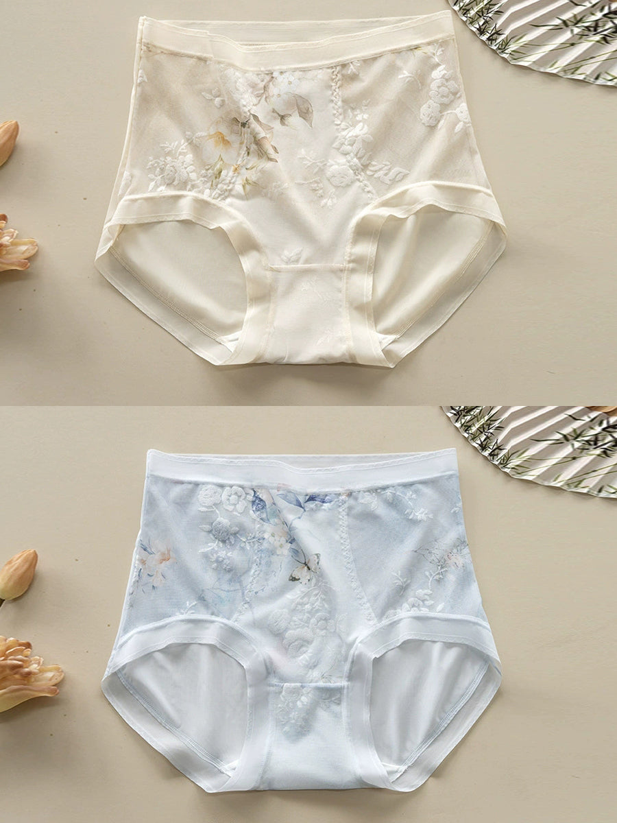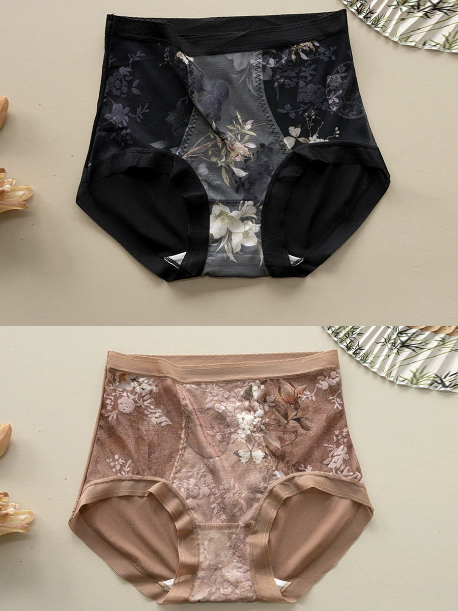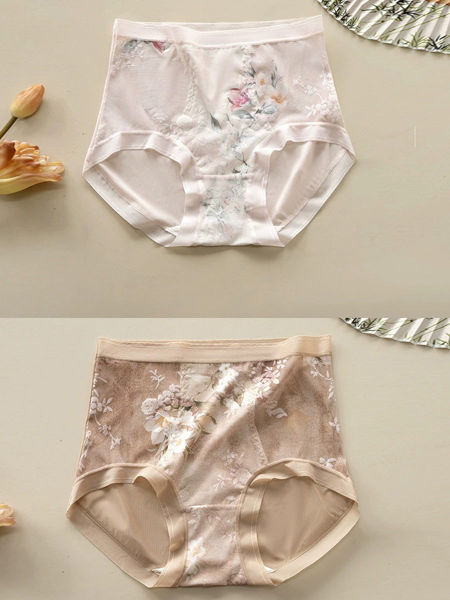 2 Pieces Women Artsy Flower High Waist Underwear