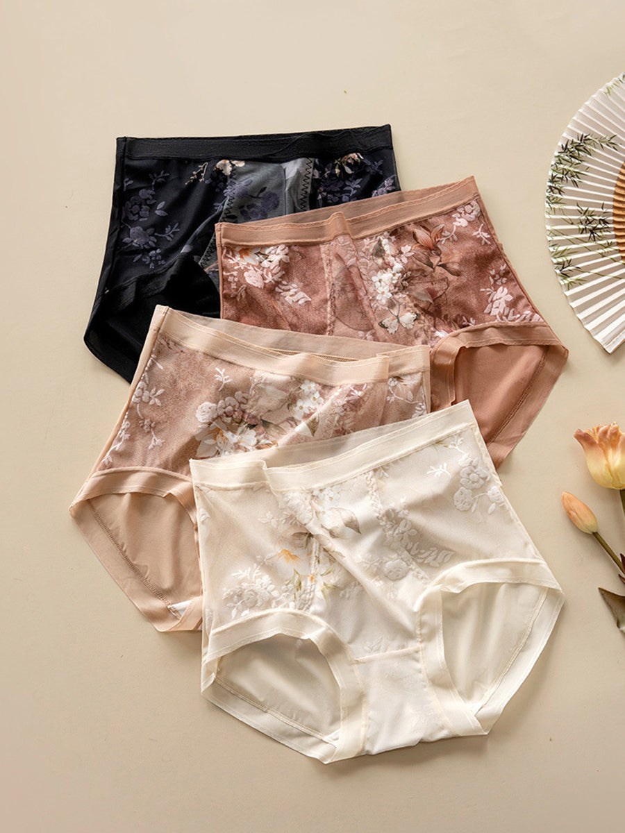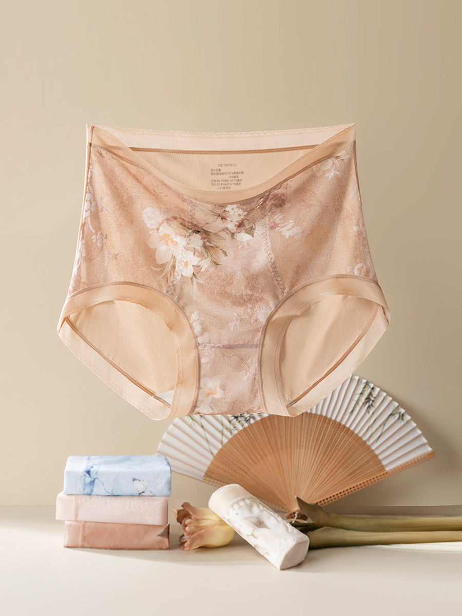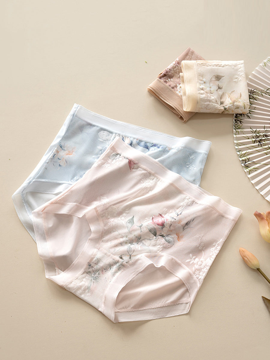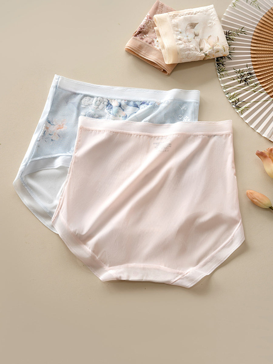 2 Pieces Women Artsy Flower High Waist Underwear