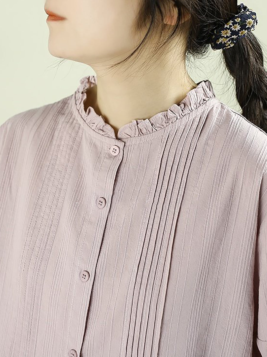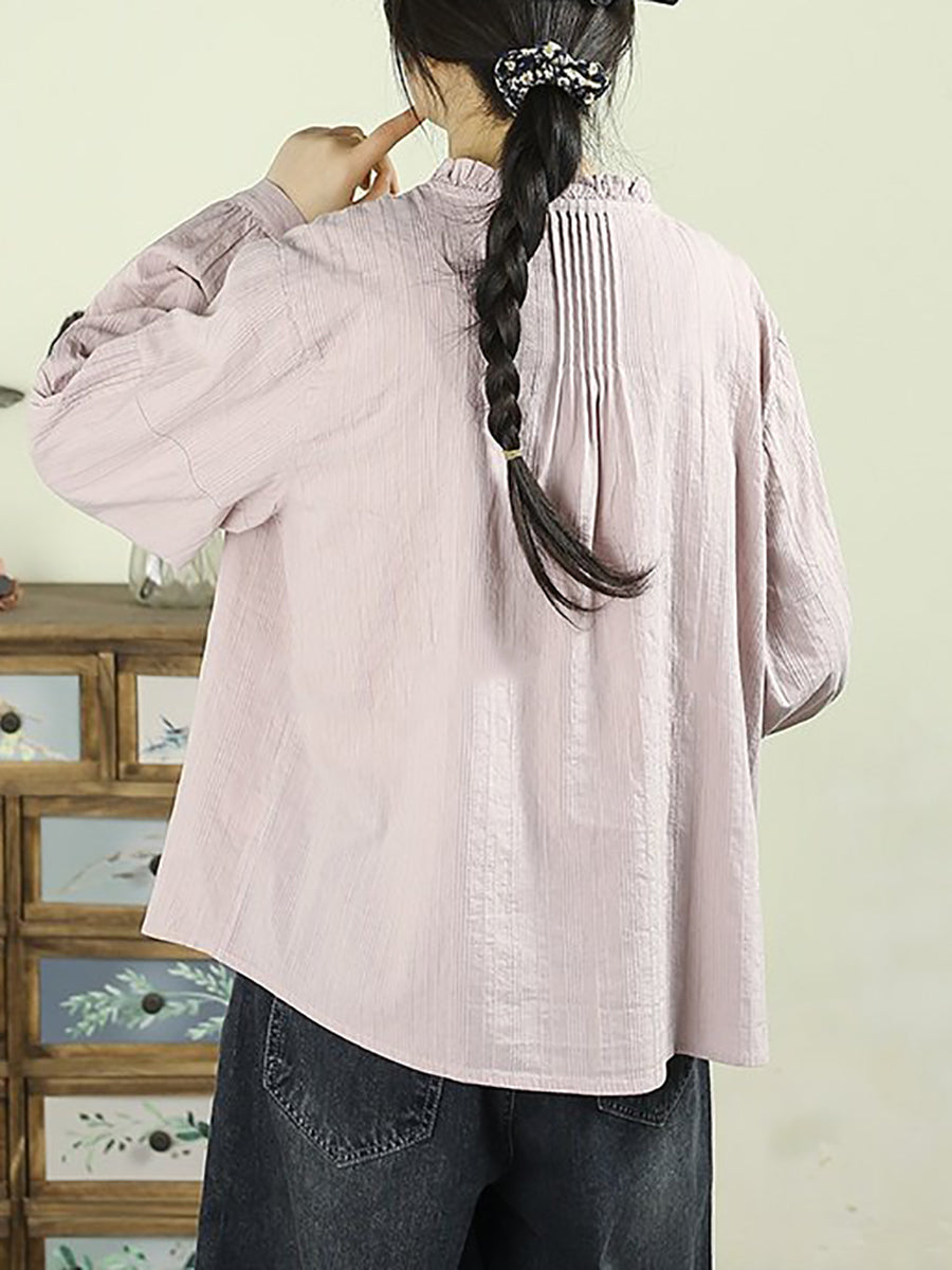 Women Spring Artsy Pure Color Shiired Stand Colalr Shirt