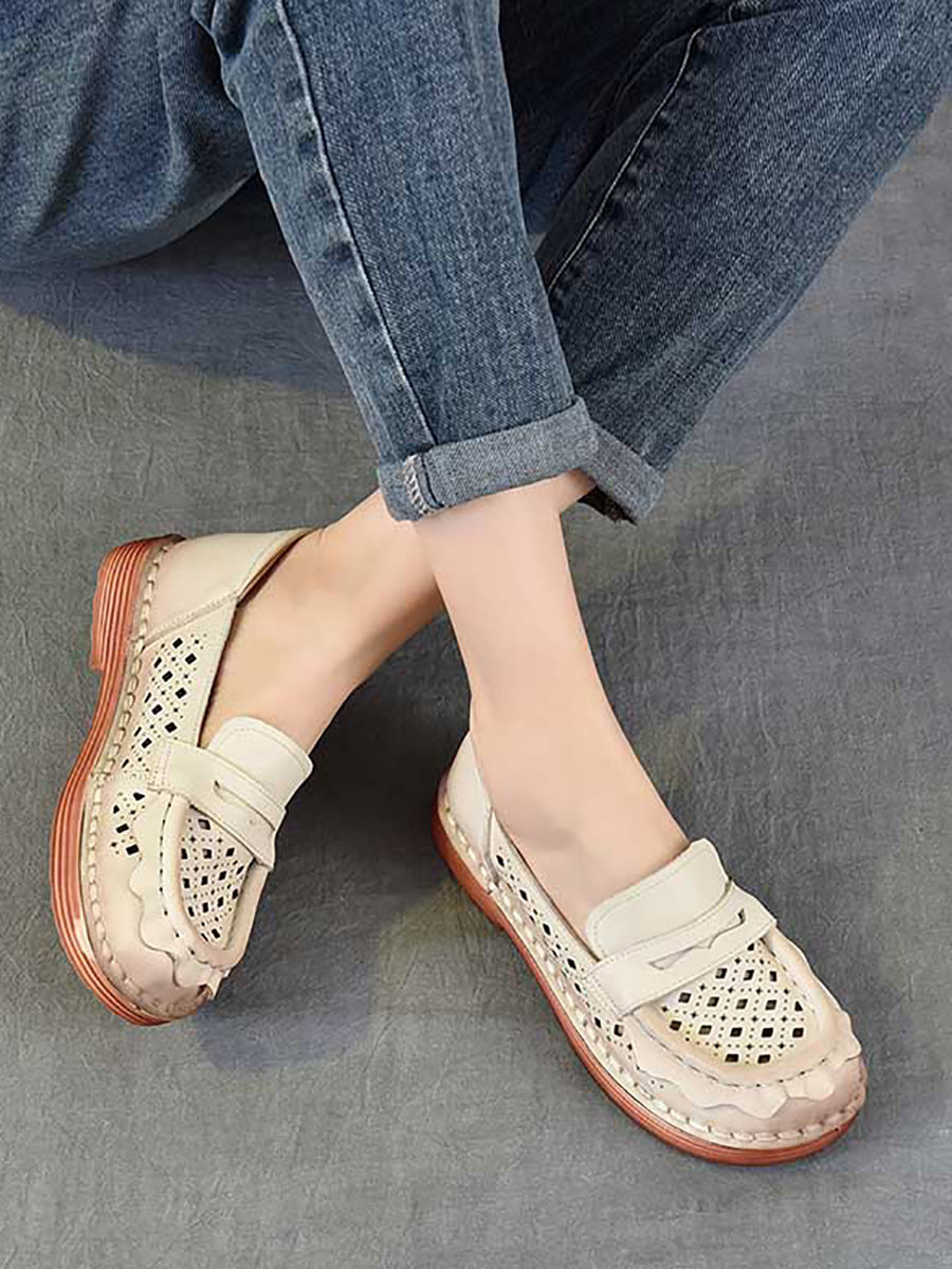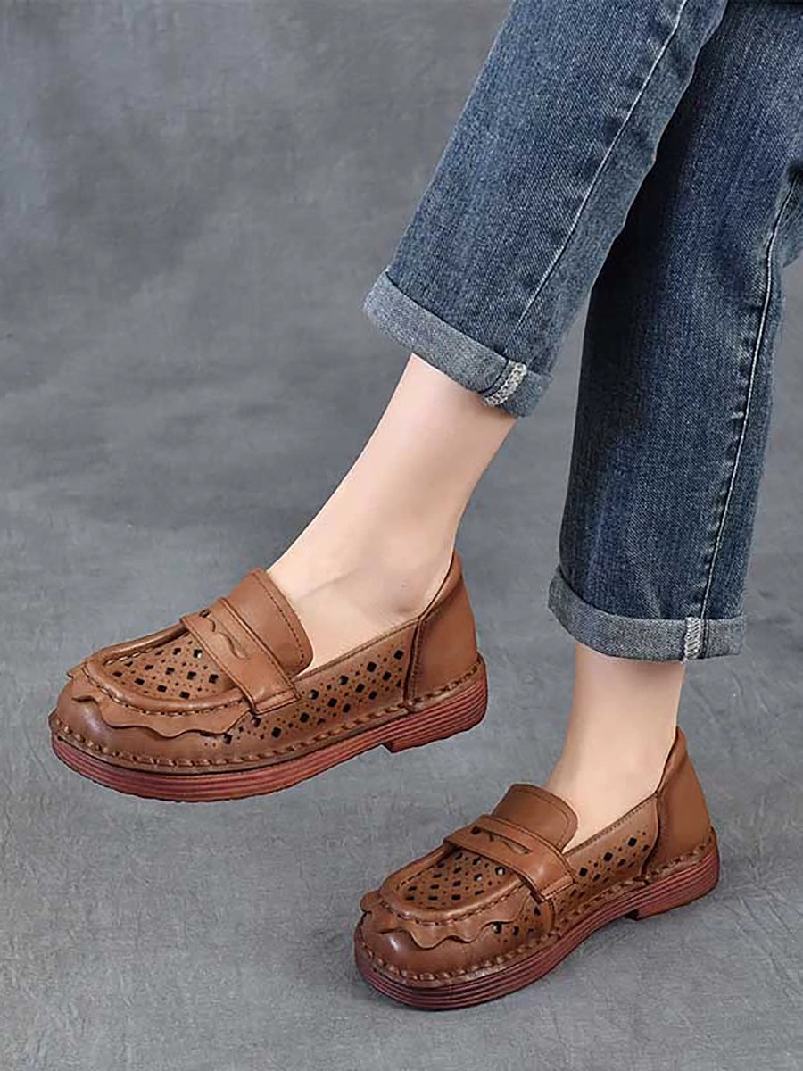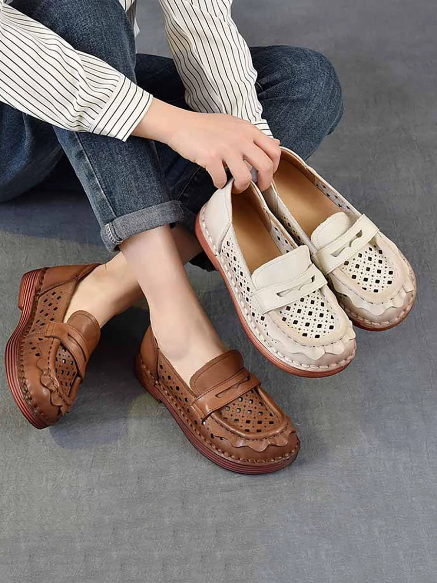 Women Spring Genuine Leather Hollow Out Shoes