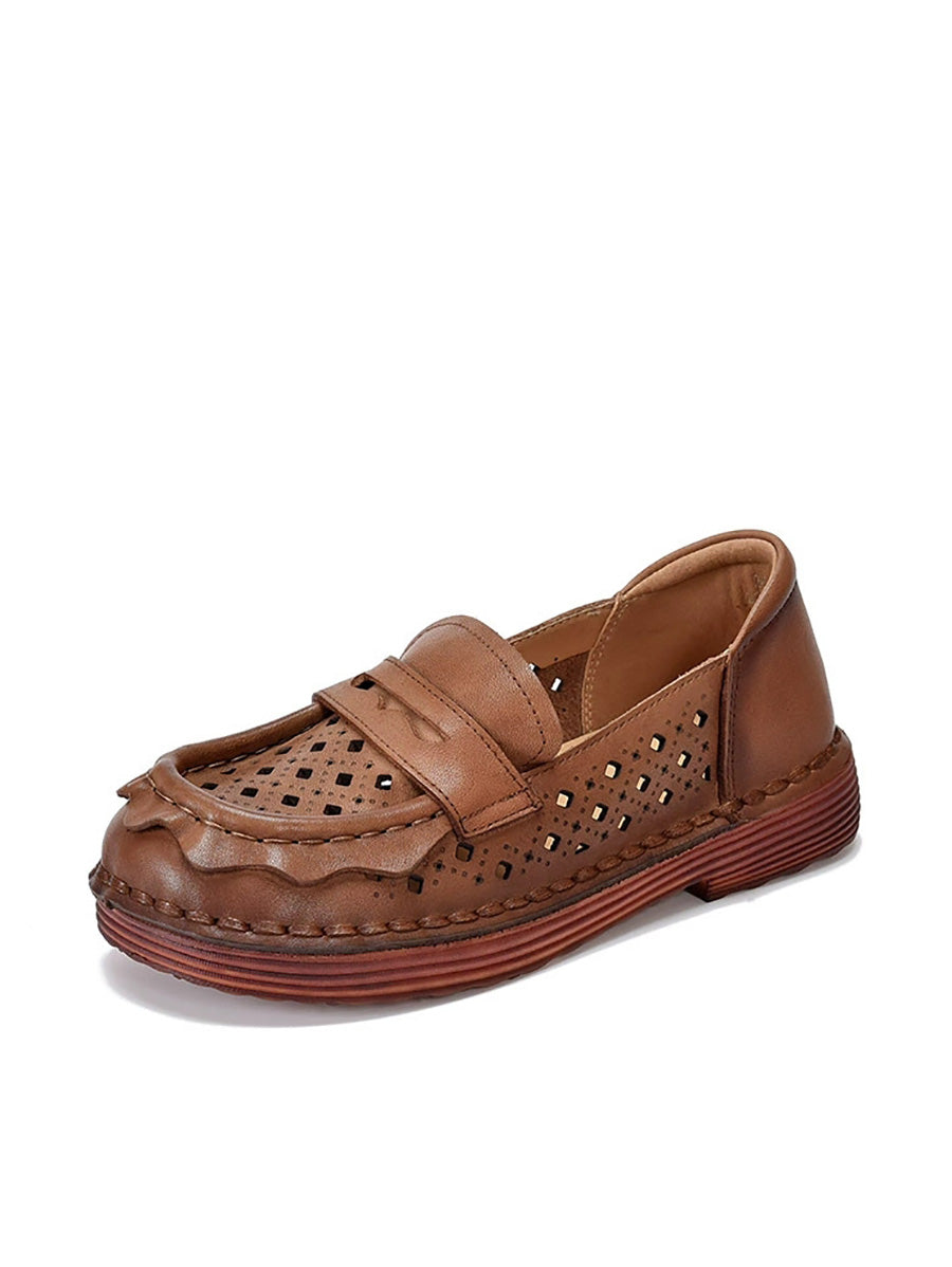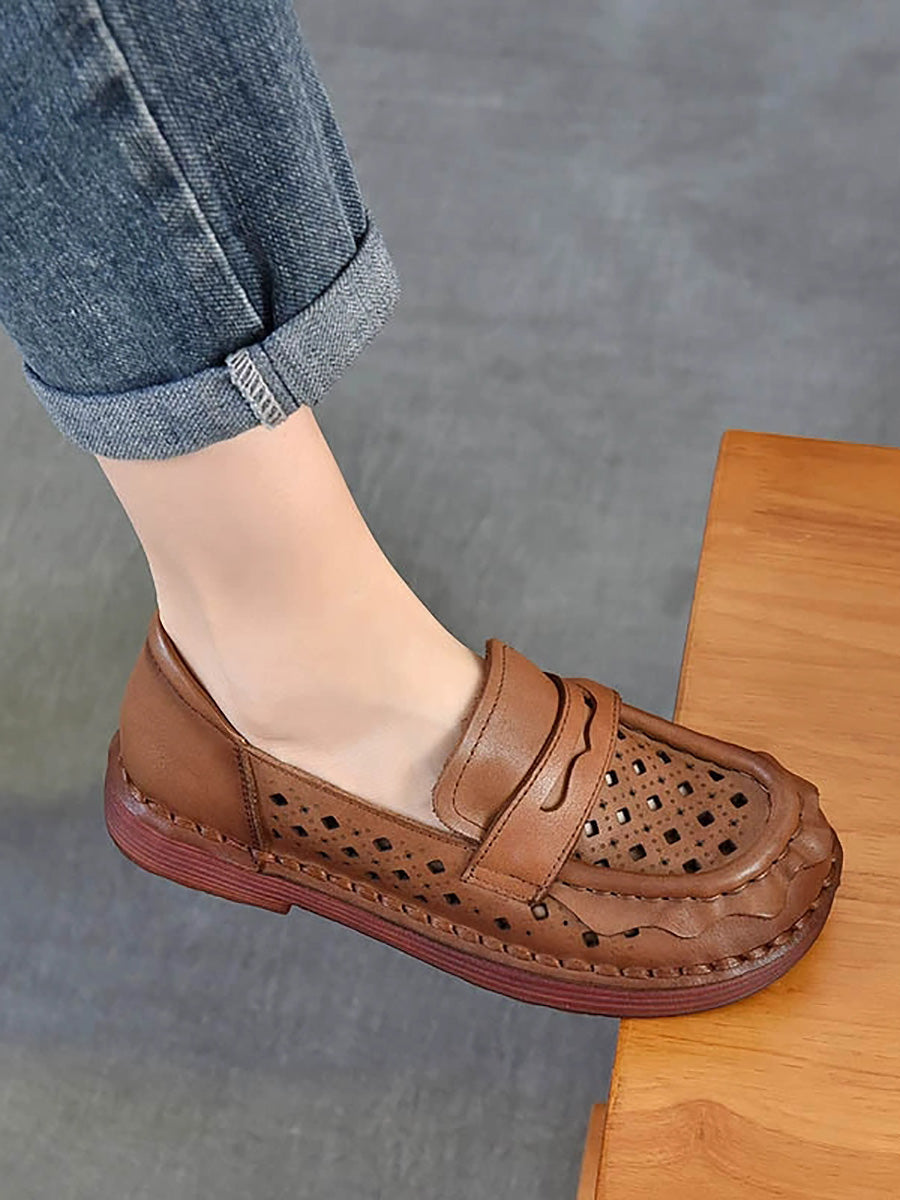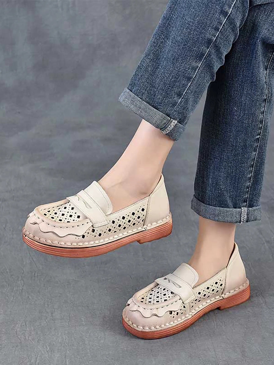 Women Spring Genuine Leather Hollow Out Shoes