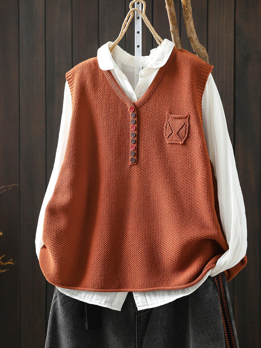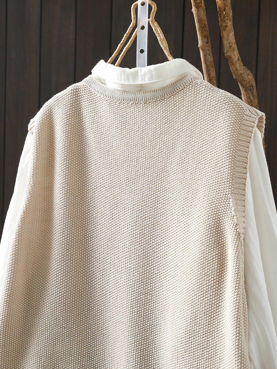 Women Spring Artsy Knitted V-Neck Vest