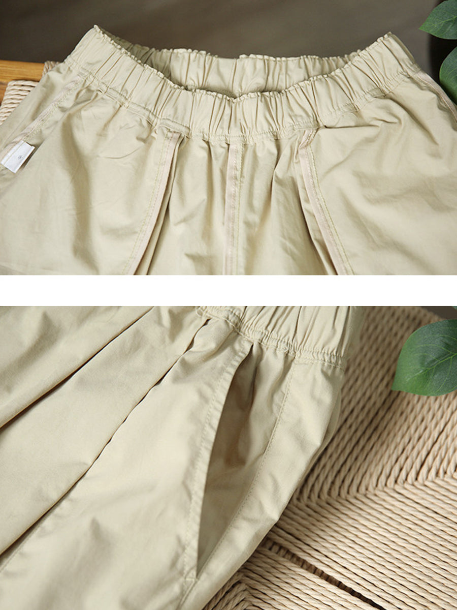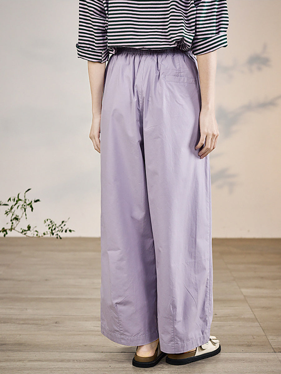 Women Spring Casual Pure Color 100%Cotton Wide-leg Pants