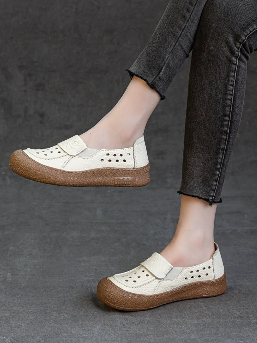 Women Summer Genuine Leather Hollow Out Flat Shoes