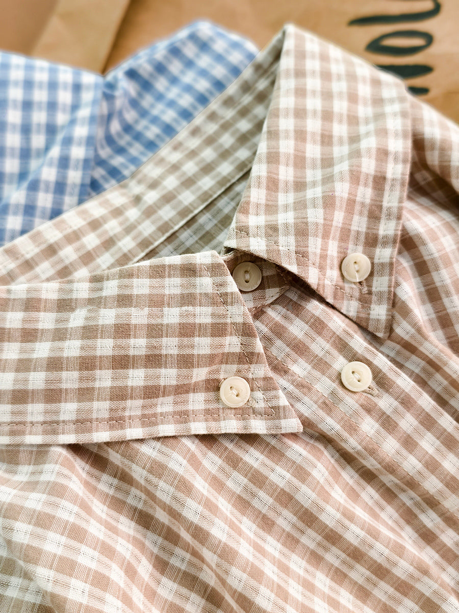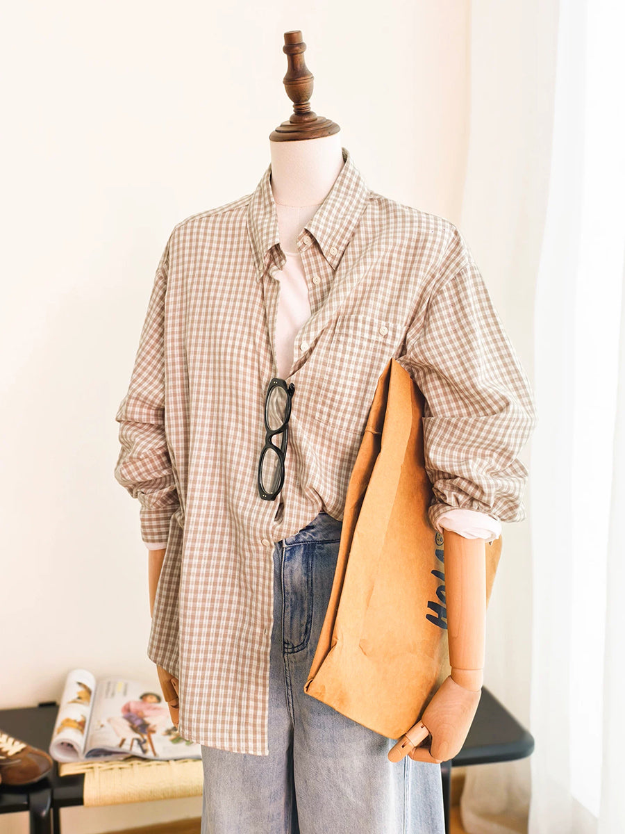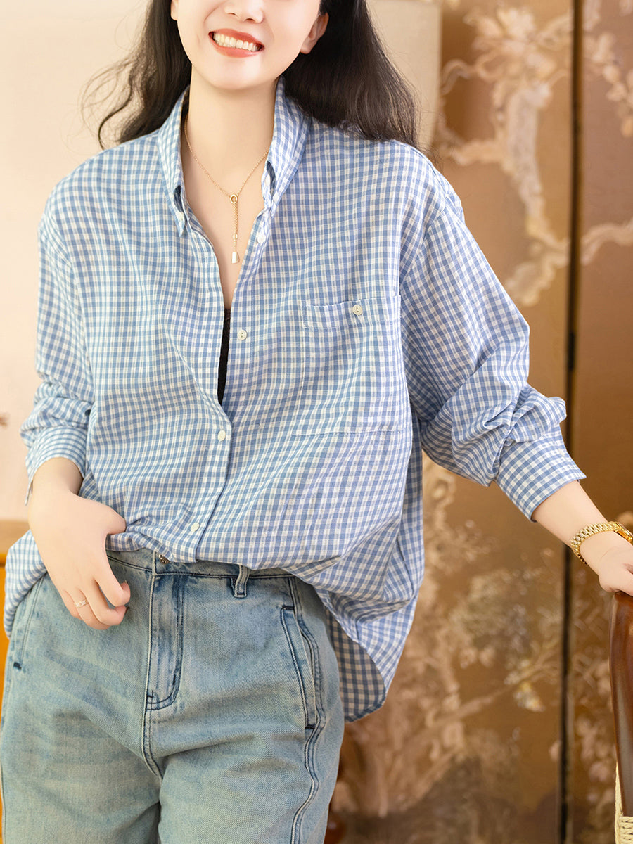 Women Spring Plaid Turn-down Collar Cotton Shirt