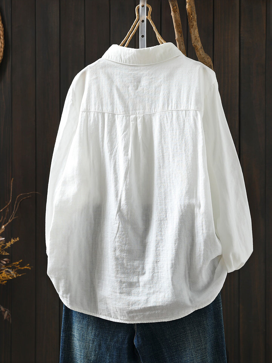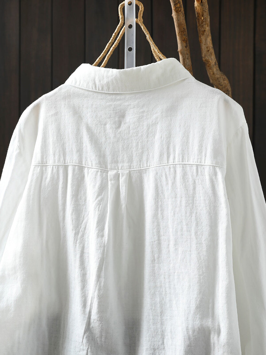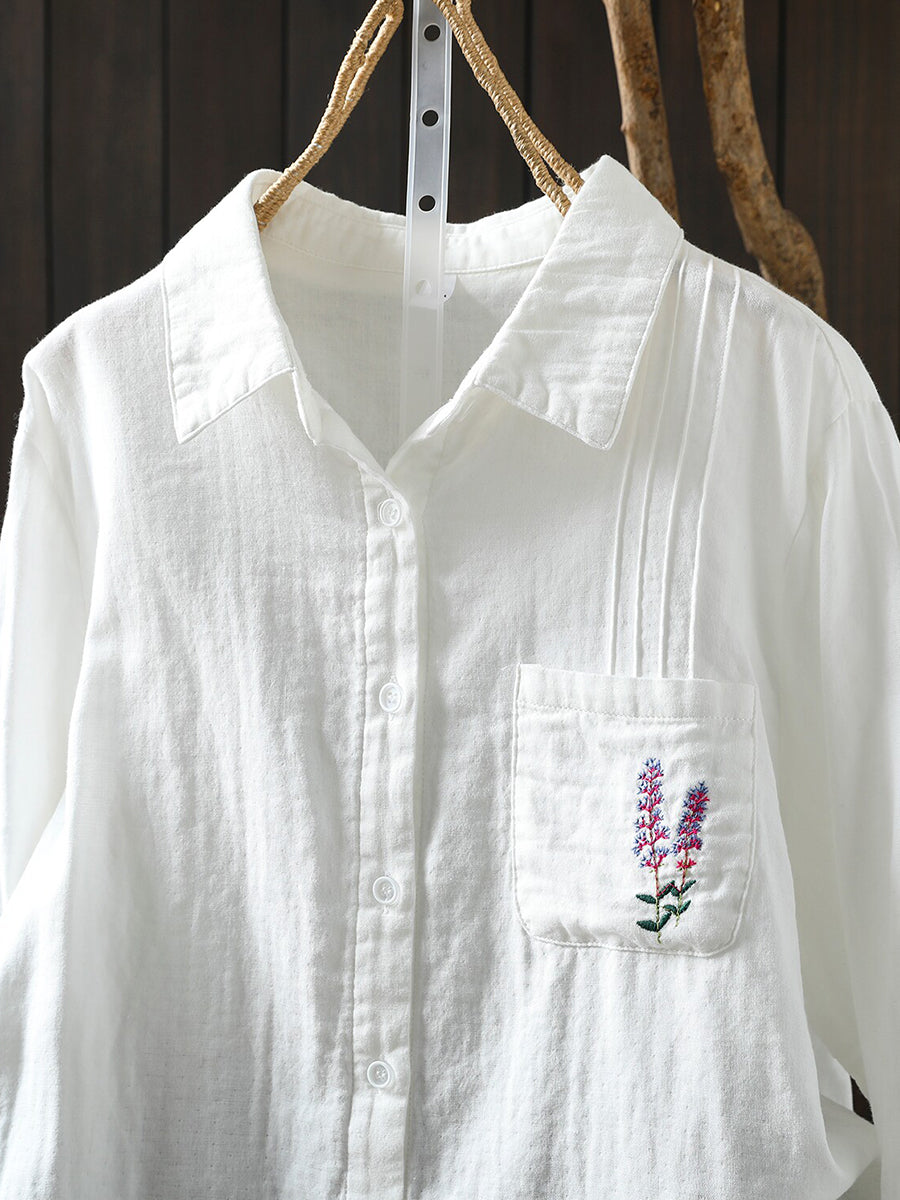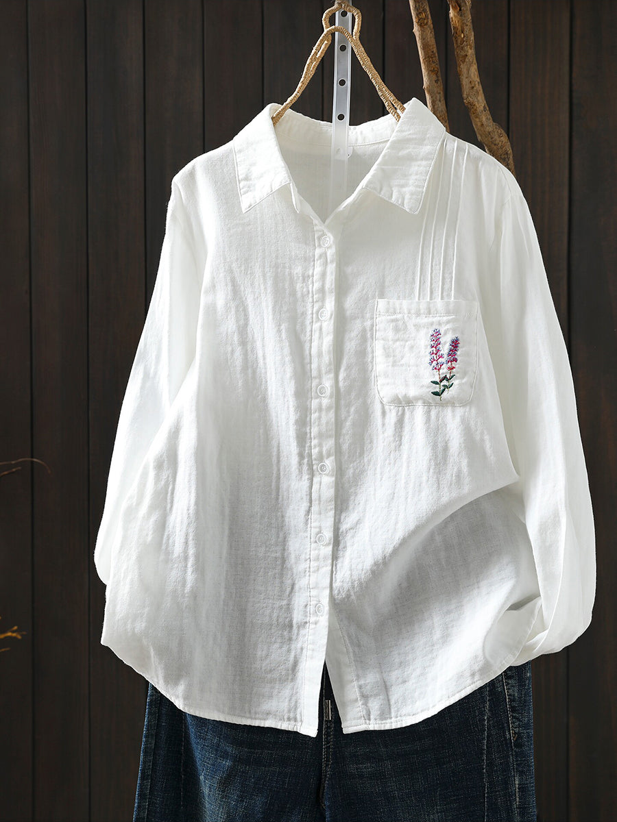 Women Spring Artsy Embroidery 100%Cotton Shirt