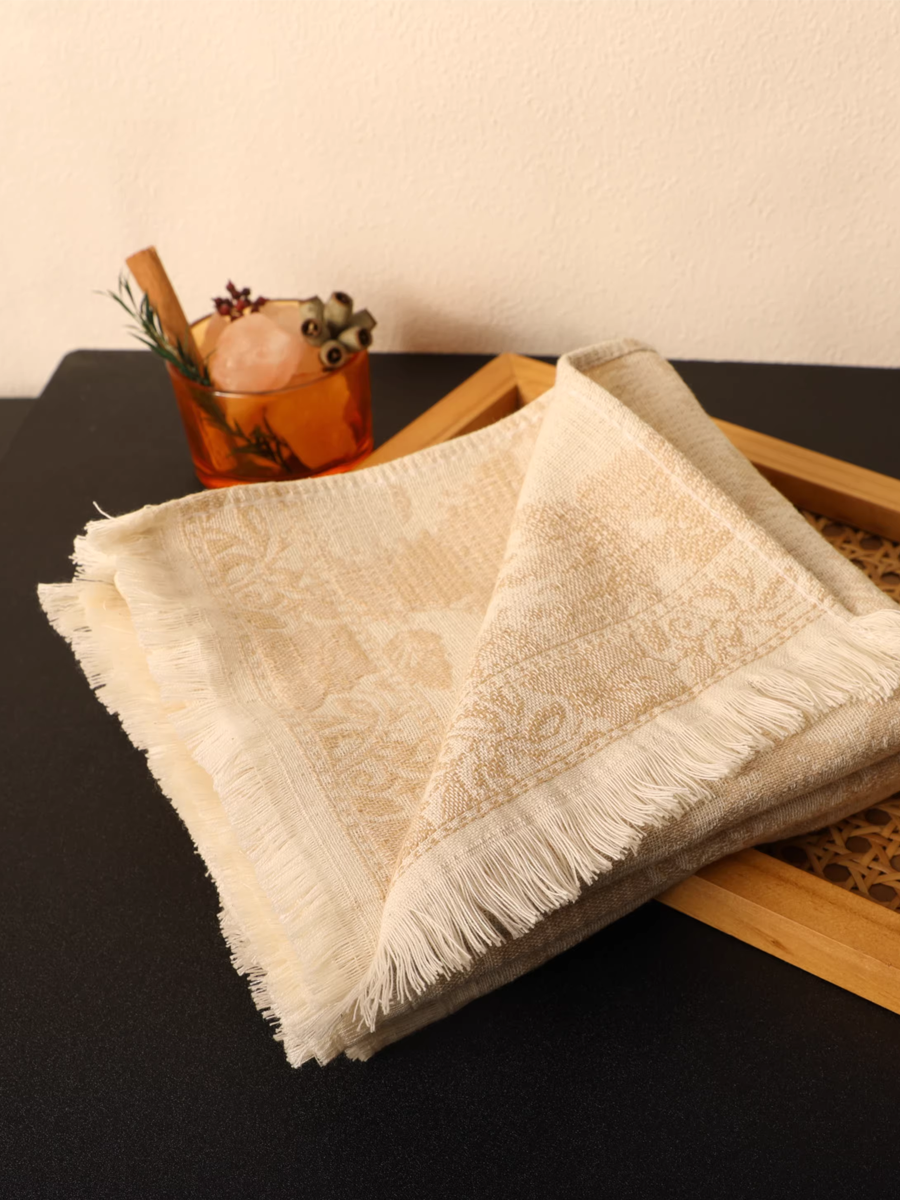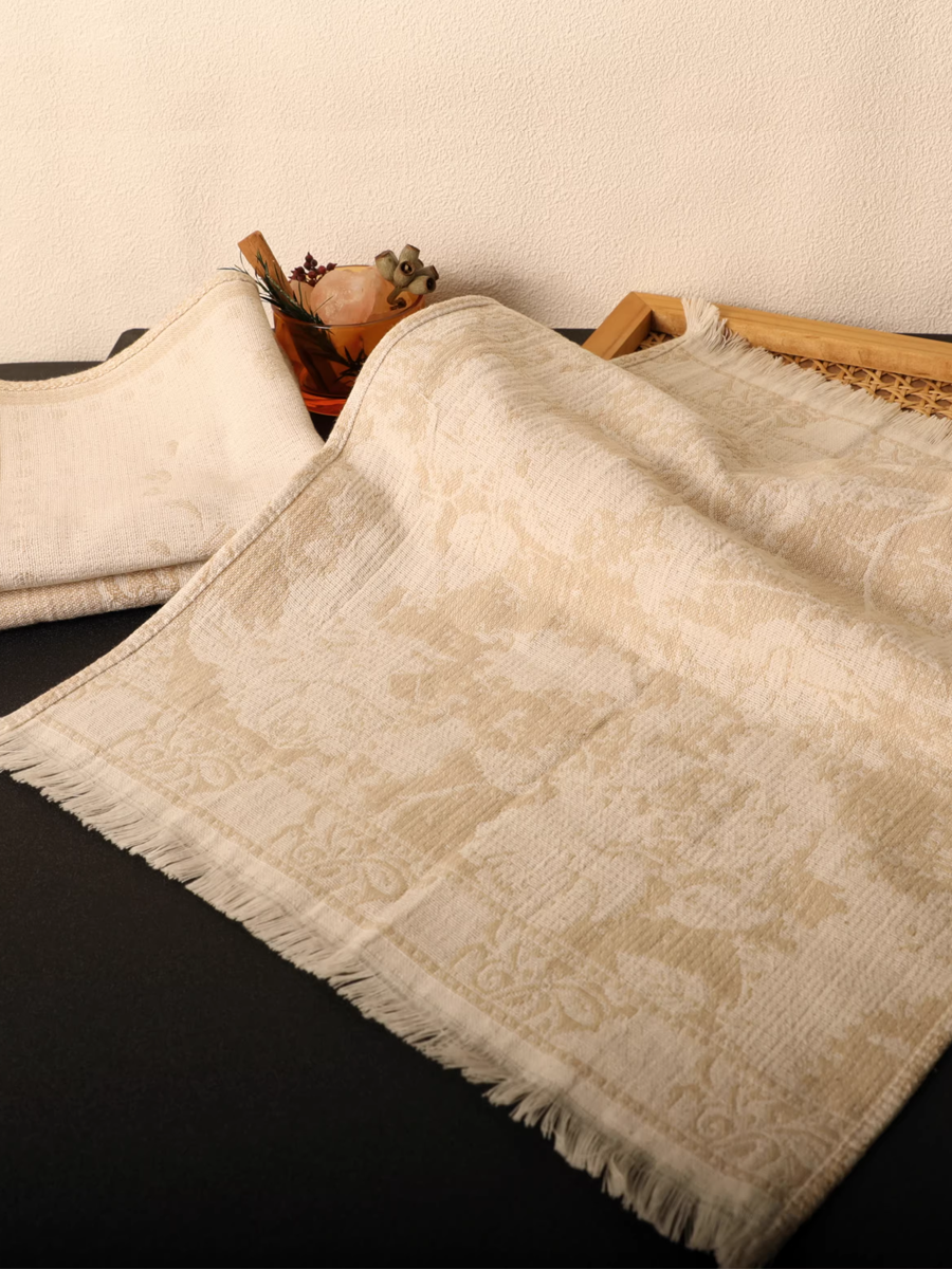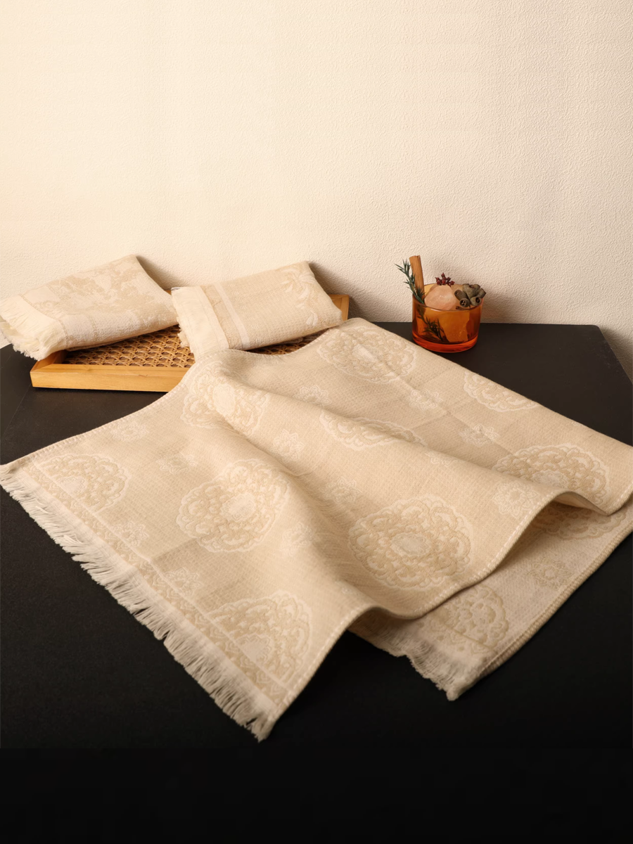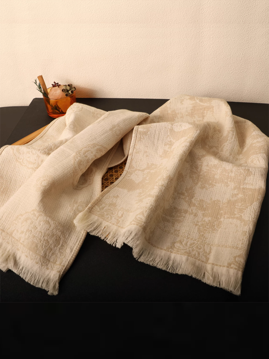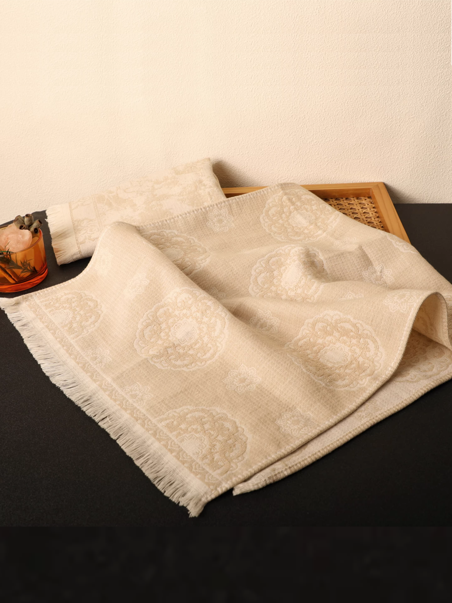 Retro Floral Tassel Hemp Cotton Towel 3-Pcs Set