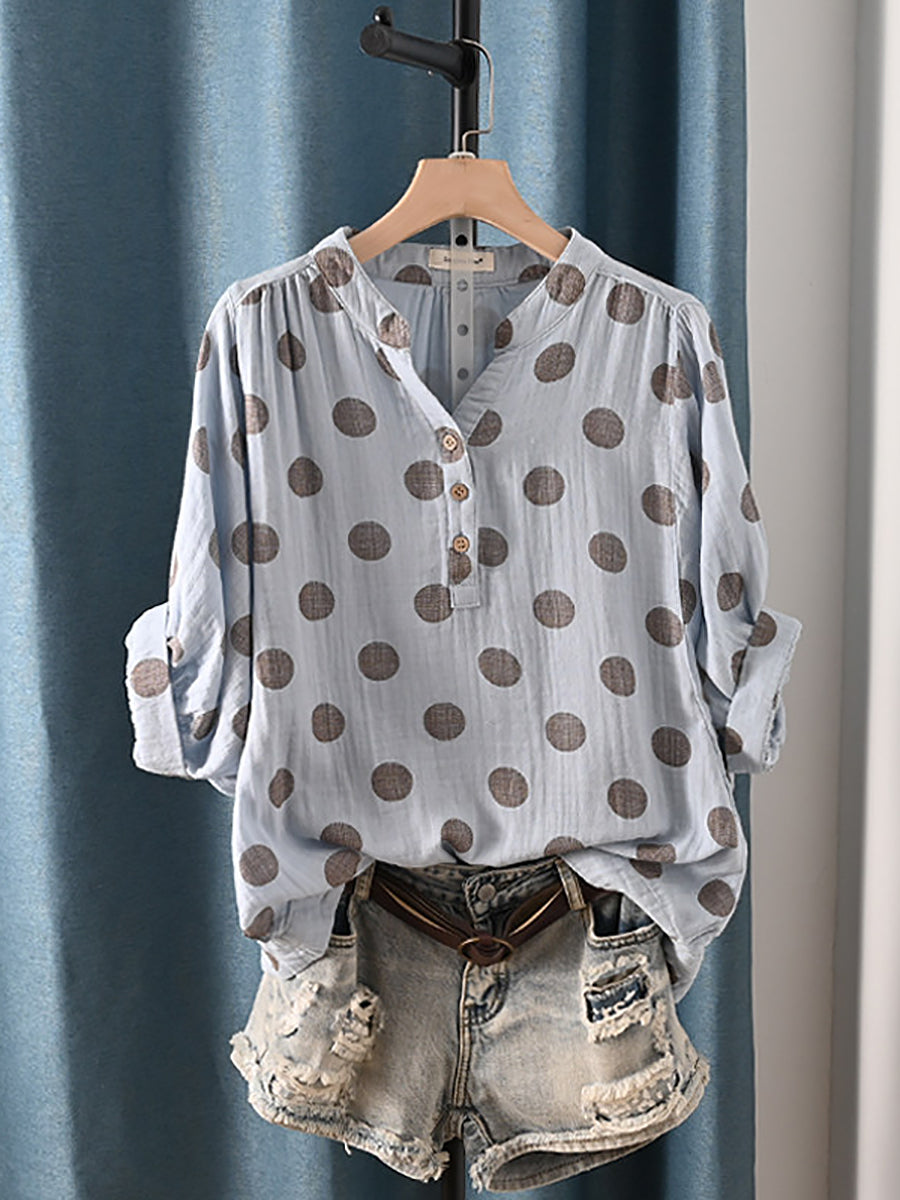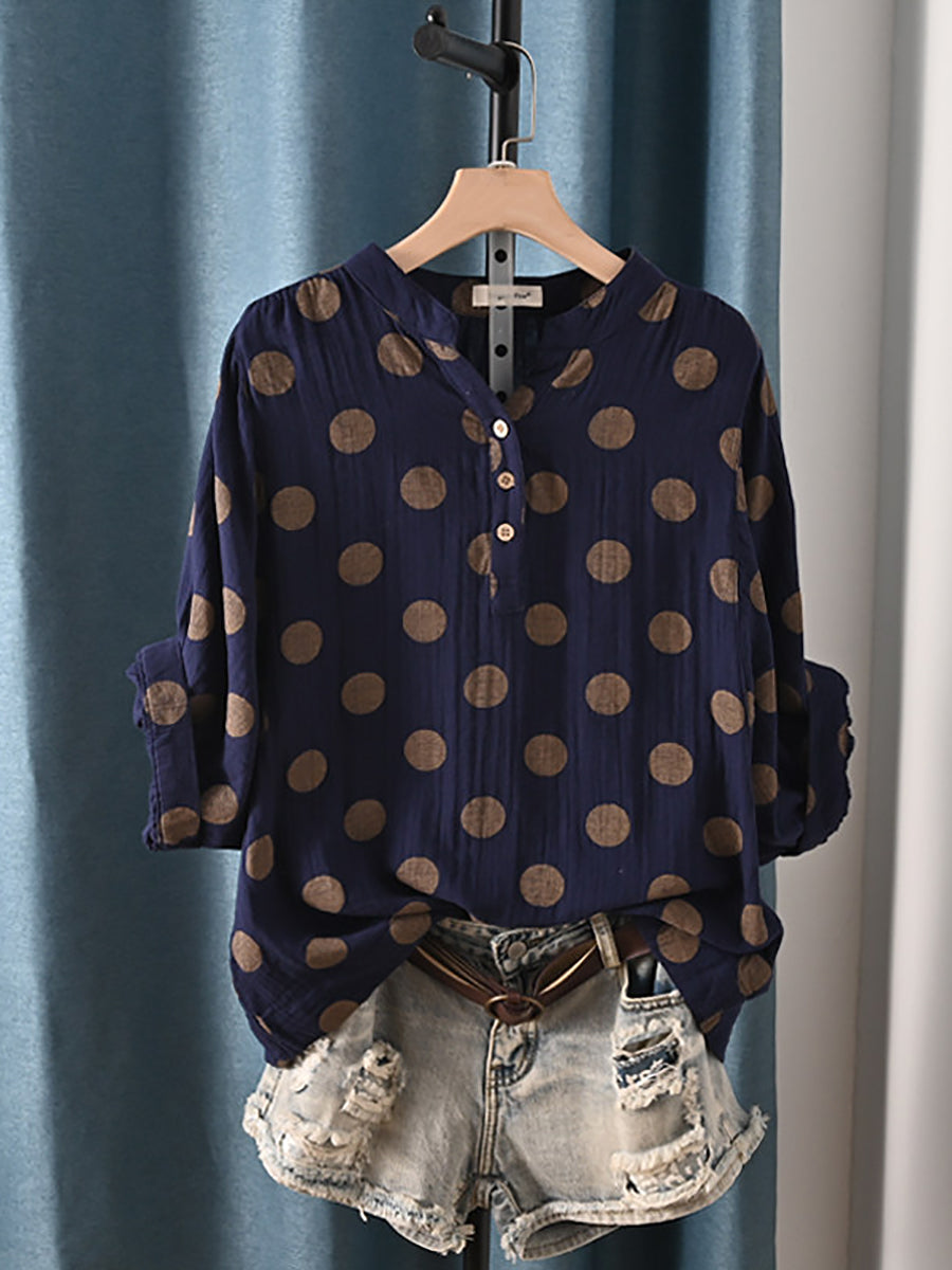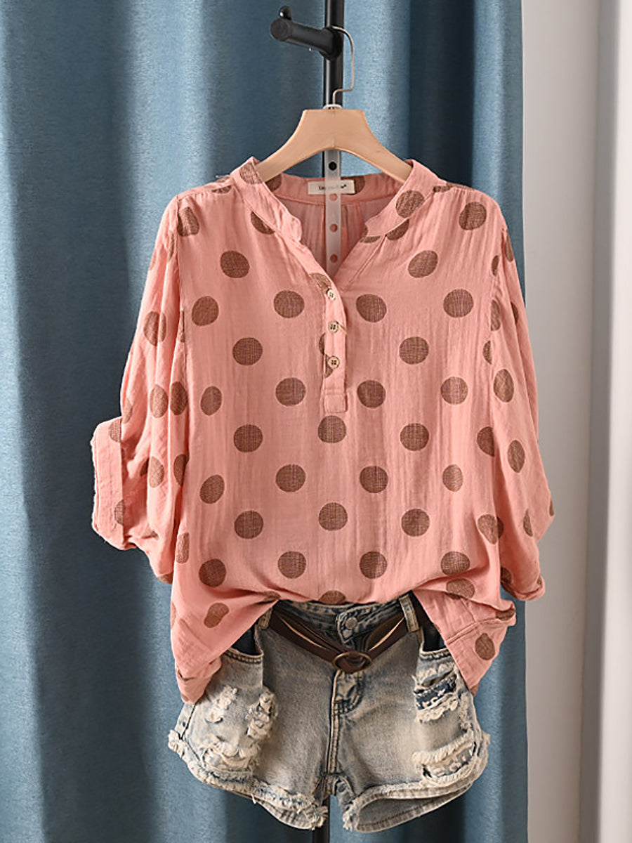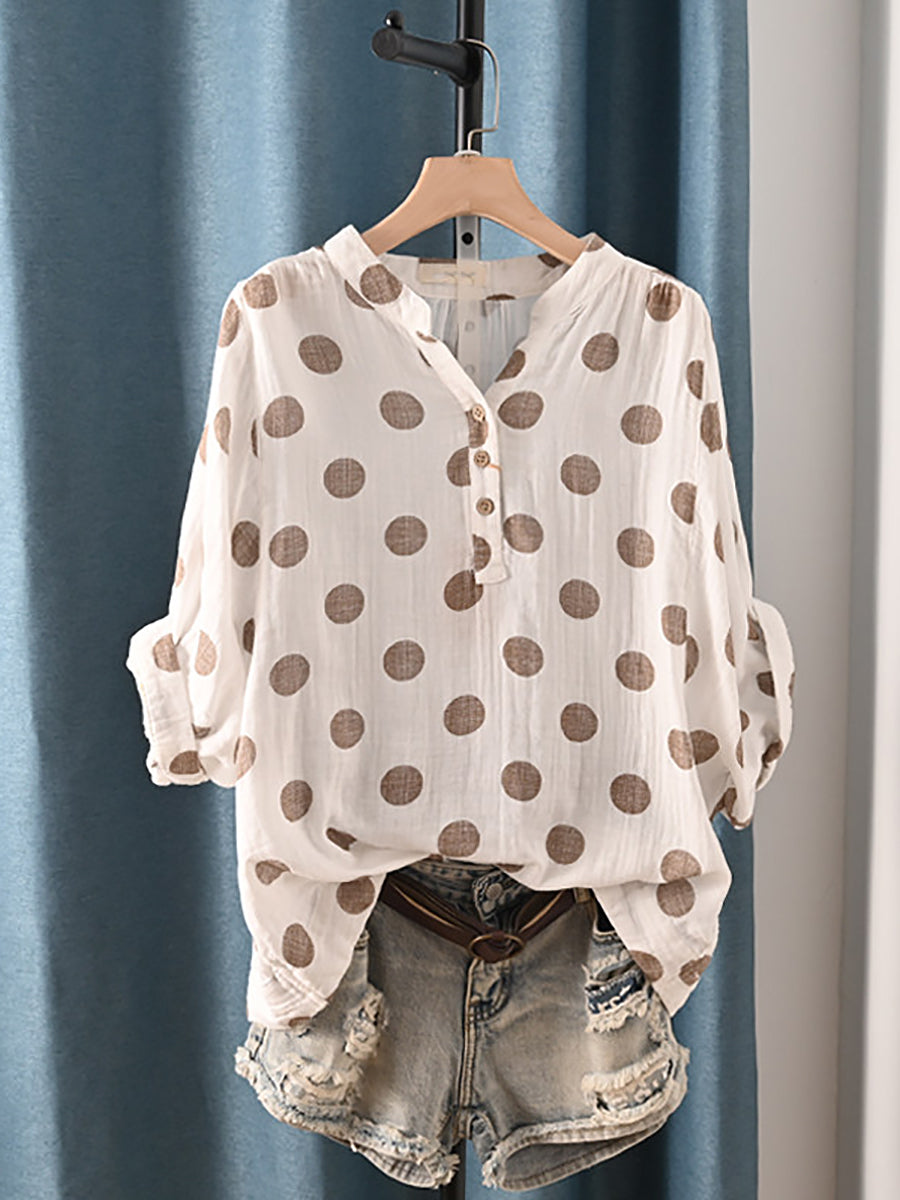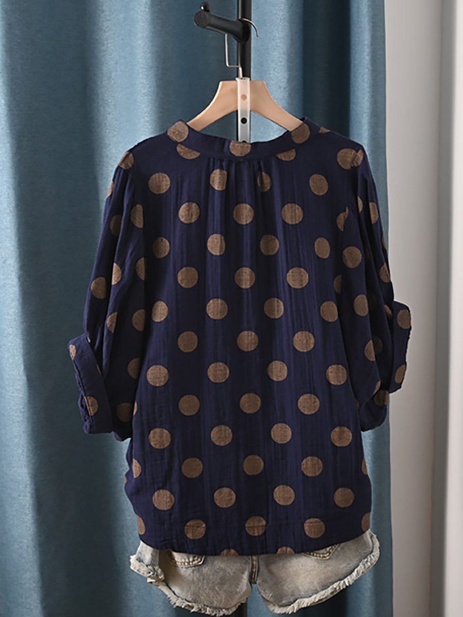 Women Summer Casual Dot 100%Cotton Blouse